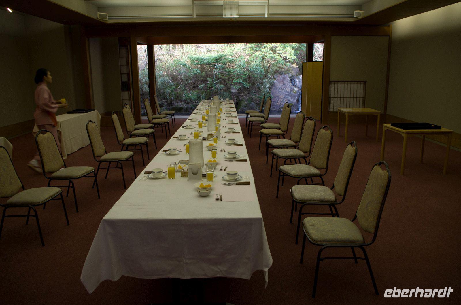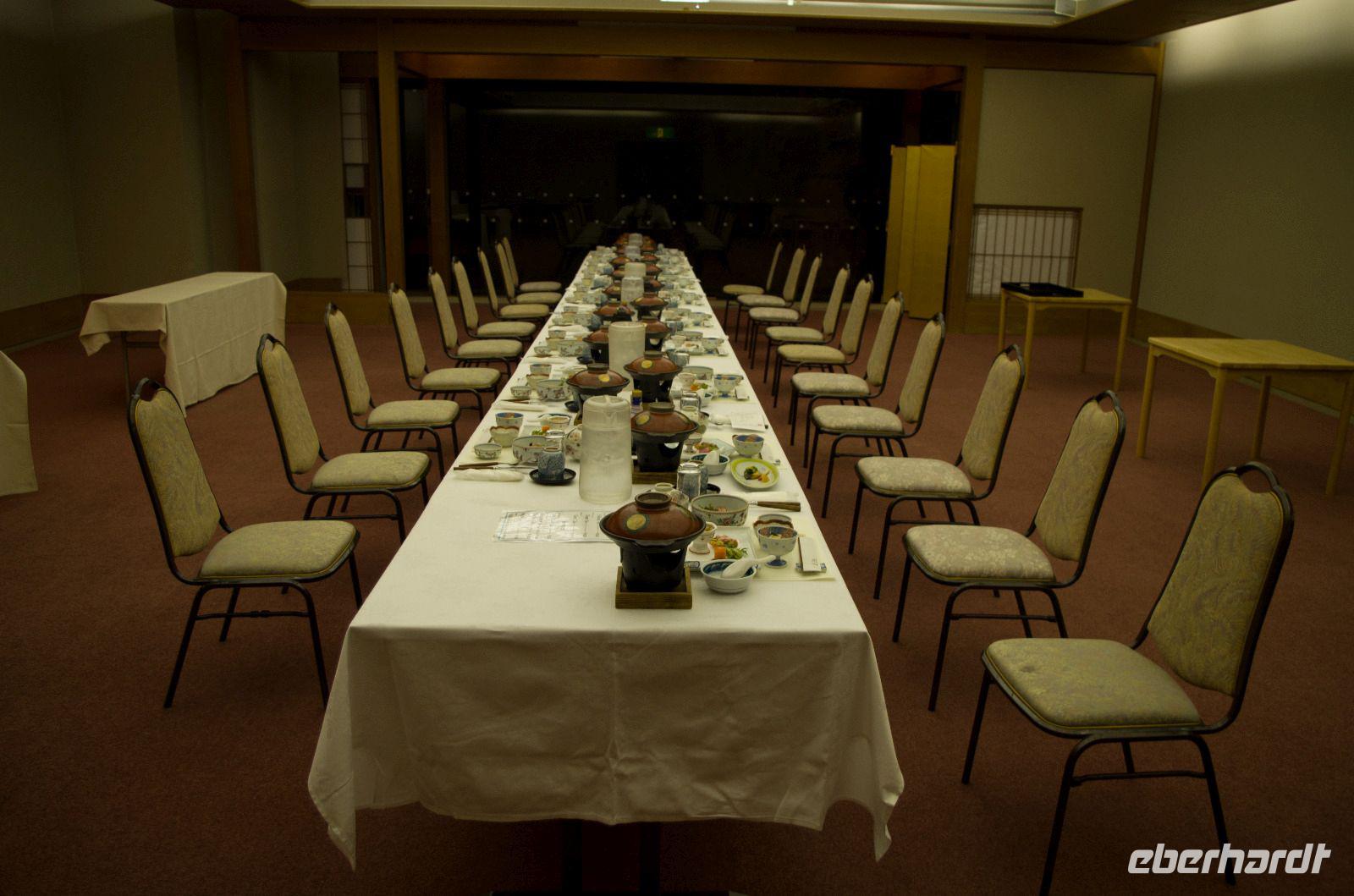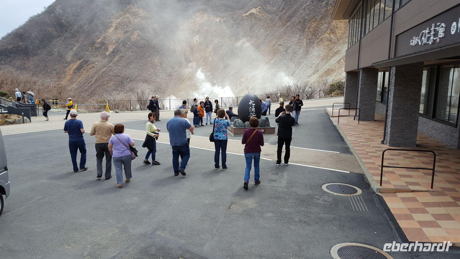 Das schöne Wetter begleitet uns weiter auf unserer Wunschreise. Die Sonne lacht und unsere Nacht auf dem japanischen Futon haben wir besser überstanden als womöglich gedacht. Ausgeschlafen und munter treffen wir uns um 07.00 Uhr wieder im für die Gruppe von Eberhardt TRAVEL organisierten Privatraum. Normalerweise werden in einem Ryokan auch zum Frühstück ausschließlich japanische Speisen gereicht. Jedoch ist es nicht unbedingt jedermanns Geschmack, früh bereits Miso-Suppe oder rohen Fisch zu essen. Um den Gästen die Auswahl selbst zu überlassen und auch um ihnen einen Gefallen zu erweisen, haben wir zusammen mit der Reiseleiterin ein japanisch-europäisches Frühstücksmenü zubereiten lassen. Die Reisegruppe probiert gern ihnen unbekannte Speisen, aber Brötchen mit Marmelade und Ei zum Frühstück sind auch nicht zu verachten. Typisch japanisch werden wir wieder am Abend essen! Unser japanischer Wortschatz wird um "oishii" erweitert, was mit "lecker" übersetzt werden kann. Um 08.00 Uhr checken wir aus und der Bus wird mit unseren Koffern beladen. Mit einer kleinen Verzögerung starten wir in Richtung Ashi-See und wir können einen tollen Blick auf den Fuji-san erhaschen. Zusammen mit Chisako wandern wir eine alte Zedernallee entlang. Nächster Programmpunkt ist die Fährfahrt auf dem Ashi-See. Hier haben wir eine sehr gute Sicht auf den 3.776 Meter hohen Fuji, zugleich Heiligtum und weltweites Symbol des Landes sowie der höchste Berg Japans. Nach der Fahrt besichtigen wir einen neuen Vulkankrater mit aus der Erde hervorquellenden Schwefeldämpfen. Es entstehen schwarz marmorierte Eier, wenn sie aus diesem schwefel- und eisenhaltigen Wasser Eier gekocht werden. Heute zum Ostermontag würde das Thema passen. Unsere Busfahrt von mehr als fünf Stunden führt uns auf dem Weg nach Takayama durch die japanische Bergwelt, vorbei an wasserreichen blau-grünen Flüssen und schneebedeckten Gipfeln. Unterwegs legen wir eine längere "Harmonie- und Mittagspause" ein. Das Wetter ist aber etwas bescheiden, zum Nachmittag heißt es Regenschirme auspacken. Da auf Regen immer die Sonne folgt, sind wir für den morgigen Erkundungstag ganz zuversichtlich. Gegen 16.00 Uhr erreichen wir unser heutiges Tagesziel, die "Kleinstadt" Takayama mit rund 88.000 Einwohnern. Wir checken im 3-Sterne-Hotel "BEST WESTERN Hotel Takayama" ein, entspannen im SPA-Bereich des Hotels oder erkunden individuell die Stadt. Um 18.45 Uhr treffen wir uns in der Hotellobby, um gemeinsam zum 15 Gehminuten entfernten Restaurant zu laufen. Hier heißt es abermals Schuhe ausziehen und sich am im Boden eingelassenen Tisch mit eingebauten Holzgrill-Tischstationen setzen. Zum heutigen Bergfest stoßen wir gemeinsam bei einem Freigetränk an und freuen uns auf die noch vor uns liegenden spannenden Tage im "Land der aufgehenden Sonne". Wir genießen an diesem Abend ein "Hida-Beef-Menü", auch "Hida-gyu-Menü" genannt. Der Menüname ist vom Rindfleisch "kuroge wagyu" des Gifu-Gebietes abzuleiten. Neben dünnen feingeschnittenen Scheiben dieses besonderen Rindfleisches werden uns Kohlblätter und weitere Gemüsesorten zum selbstständigen Braten serviert. Natürlich dürfen Miso-Suppe und Reis abermals nicht fehlen. Den Reis erhalten wir dieses Mal in einer heißen Steinschüssel. Zusammen mit kleingeschnittenem Gemüse und Ei wird er direkt in der Schüssel vermischt und zugleich "gebraten". Eine neue Reis-Variation, welche uns sehr gut schmeckt. Nach dem Essen spazieren wir zum Hotel zurück, besorgen uns unterwegs im FamilyMart noch Getränke und Proviant für den nächsten Tag. Aufgrund unserer längeren Busfahrt von circa 299 Kilometer sind wir heute rund 4,5 Kilometer und 6.515 Schritte gelaufen, der ein oder andere Reisegast sicherlich noch mehr Kilometer!