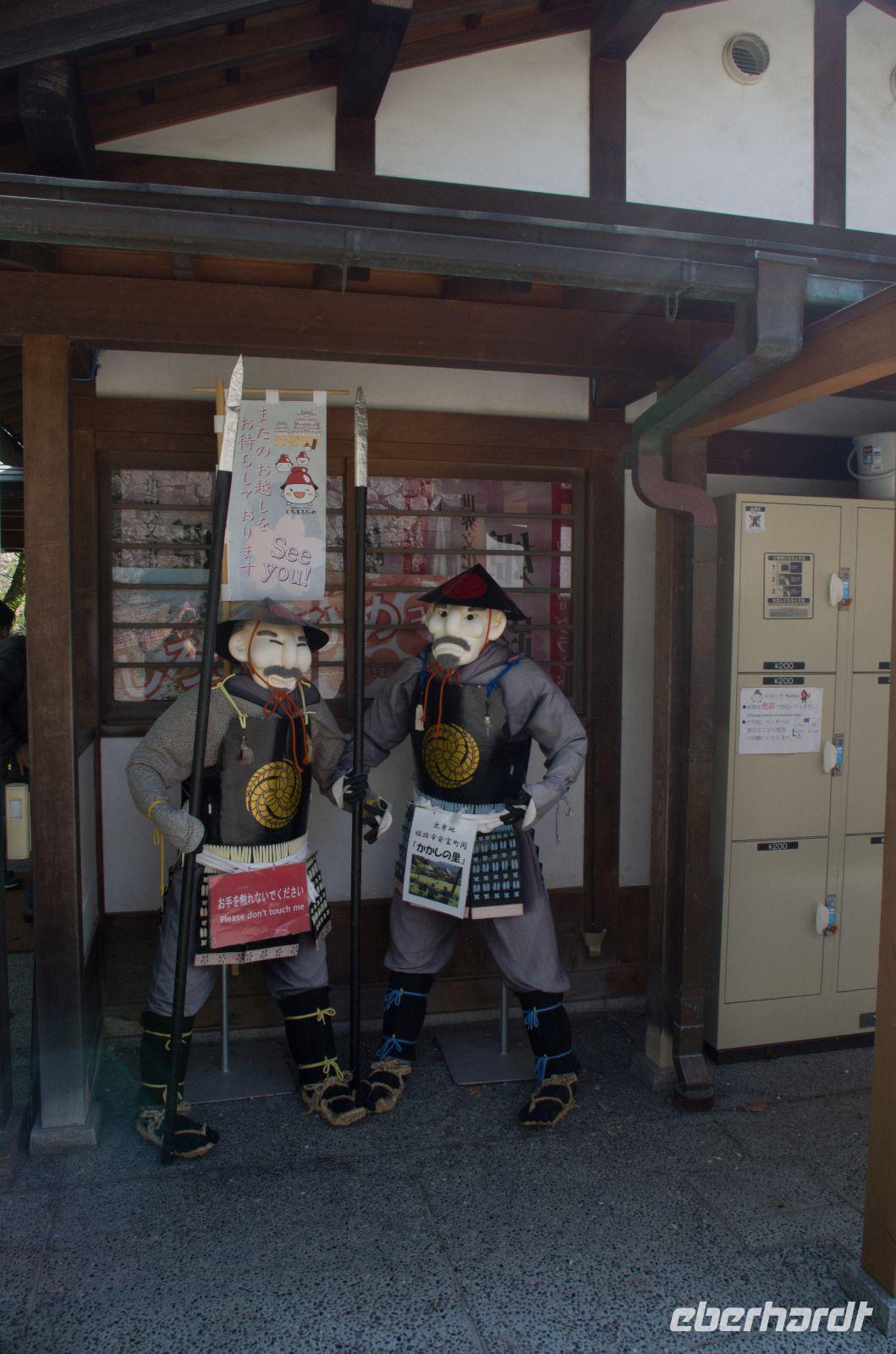 Der Wettergott meint es wieder gut mit uns! An einem sonnigen Morgen gönnen wir uns gegen 07.00 Uhr ein leckeres Frühstücksbuffet mit japanischen und europäischen Elementen im Restaurant Bijoux neben der Rezeption des Hotels. Zeitiges Aufstehen wird heute belohnt! Unter Umständen ist sonst mit einer kleinen Wartezeit in der Frühstücksschlange zu rechnen. Unser japanischer Wortschatz wird um "Daijoh-bu!" erweitert, was "Alles klar!" bedeutet. Zur gewohnten Uhrzeit um 08.00 Uhr spazieren wir gemeinsam mit Zwischenstopp am buddhistischen Tempel Kokubunji zum am Fluss Miyagawa gelegenen Takayama Morgenmarkt. Dieser Tempel besitzt eine dreistöckige Pagode. Viel interessanter sind aber wohl die vielen Glücksbringer ohne Gesicht in der dominierenden Farbe Rot im Eingangsbereich des Tempels. Der Name des gesichtslosen roten Püppchen lautet Saru Bobo. Chisako erzählt uns die dazugehörige Geschichte eines Mädchens, welches sich von der Großmutter eine Puppe ohne Gesicht gewünscht habe, damit die Puppe mitfühlen kann, sowohl wenn das Mädchen weint als auch wenn es lacht. Auf dem Morgenmarkt werden unter anderem typische Holzschnitzereien, Früchte, Gemüse und Souvenirs angeboten. Zurück am Hotel fahren wir mit dem Bus um 09.15 Uhr nach Shirakawa-go. Wie bereits in Tokyo steht uns der Reisebus nur am Vormittag zur Verfügung, den Stadtrundgang am Nachmittag legen wir zu Fuß zurück. Während der Fahrt erfahren wir von Chisago, dass die japanische Bevölkerung mit weniger als zwei Prozent Ausländern sehr homogen ist. Zuwanderer müssen eine dreijährige Trainingsphase absolvieren, um die Sprache zu lernen und die berufliche Qualifizierung aufzuweisen. Des Weiteren erfahren wir bezugnehmend auf die Energieversorgung Japans, dass es circa 3.000 Staudämme im Land gibt und die Energieerzeugung durch Wasserkraft bei rund sieben bis acht Prozent liegt. Rund eine Stunde später besuchen wir Shirakawa-go. Dies ist ein zum UNESCO-Weltkulturerbe gehörendes, malerisches Dorf mit Stroh gedeckten Bauernhäusern, welche auch als "Gassho-Zukuri-Haus" bezeichnet werden. Um 10.45 besichtigen wir das Kanda House individuell und erfahren dann von einer Familienangehörigen, wie die Menschen früher hier gewohnt haben. Natürlich sind die Schuhe auszuziehen und unsere geliebten Tempelsocken kommen wieder zum Einsatz! Beim Blick aus dem Fenster sehen wir abermals vier Ballons in Form eines Fisches. Genauer gesagt haben sie die Form eines Karpfens. Sie stellen ein Symbol für das gesunde Aufwachsen der Kinder dar. Am 3. März jeden Jahres ist der Kindertag der Mädchen, am 5. Mai jeden Jahres der Kindertag der Jungen. Wir schlendern danach einzeln oder gemeinsam durch das Dorf. Unterwegs sehen wir ein typisch japanisches Musikinstrument. Chisako zeigt, wie das Holzinstrument "Kokiriko" gespielt wird. Um 12.00 Uhr treffen wir uns am Parkplatz. Rund eine Stunde später kommen wir wieder an unserem Hotel in Takayama an. Heute heißt es Abschied nehmen von unserem Busfahrer Herrn Okada. Wir bedanken uns bei ihm für seine tolle Fahrweise und wünschen ihm alles Gute! Um 13.15 Uhr beginnt unser Stadtrundgang durch Takayama zu Fuß. Zuerst besuchen wir die moderne Halle Matsuri Yatai Kaikan mit den kunstvollen Prunkwagen zum bereits vor 350 Jahren begonnenen Festival "Takayama Matsuri". Wir bestaunen die interessanten unterschiedlichen Umzugswagen wie zum Beispiel Kagura-Tai, Jinma-Tai, Houou-Tai, Mikoshi und viele mehr. Vier von Ihnen sind mit Marionetten ausgestattet, welche verschiedene Götter oder japanische Adlige darstellen. Die Stimmung während eines Festivals wird uns in einem kurzen zehnminütigen Film dargelegt. Nach dem Besuch laufen wir gemeinsam den Weg bis zum anderen Ende der Stadt. Unterwegs essen wir eine typisch japanische Kleinigkeit wie zum Beispiel ein aus Hida-Beef bestehendes Fleischbrötchen "Kihachiro Beef Bun". Um 15.30 Uhr besichtigen wir das ehemalige Regierungsgebäude Jin'ya aus der Edo-Bakufu-Regierung 1692 bis 1868. Hier kommen wieder unsere Tempelsocken zum Einsatz. Bei unserem Rundgang schauen wir uns die verschiedenen Räume an. Dazu gehören unter anderem der Gastraum "Zashiki", die Dienstleistungsstelle "Onyakusho und Goyouba", das Gericht für Zivilklage "Oshirasu", die Versammlungshalle "Ohiroma", das Gericht und den Prüfungsraum "Oshirasu und Ginmisho", das Reislager "Onkura" und auch die schöne Gartenanlage im japanischen Stil. Nach der gemeinsamen Besichtigung mit Chisako nutzen wir die Zeit bis zum Abendessen für einen Bummel durch die kleinen Geschäfte oder entspannen im hoteleigenen SPA-Bereich. Wir laufen gegen 18.45 Uhr abermals rund 15 Gehminuten zu einem anderen lokalen Restaurant, wo wir ein leckeres Izakaya-Dinner serviert bekommen. Der Name "Izakaya" kann mit "Sake-Laden zum Sitzen" übersetzt werden, wobei "i" für "sitzen" und "sakaya" für "Sake-Geschäft" steht. Die Verfahrensweise des "Schuhe ausziehen" und "am im Boden eingelassenen Tisch setzen" ist uns mittlerweile bestens bekannt und schon fast zur Gewohnheit geworden! Unser Abendessen besteht aus mehreren japanischen Vorspeisen oder Snacks, das sogenannte "otsumami". Die Speisen sind vielseitig und sehr lecker! Nur die Anzahl der Gänge und der Hunger der Gäste sind an diesem Abend nicht ganz im Einklang, ein Gang weniger wäre durchaus in Ordnung gewesen! Mit vollgefülltem Magen verlassen wir das Restaurant und spazieren zum Hotel zurück. Heute haben wir eine Busfahrt von rund 98 Kilometern zurückgelegt, zu Fuß sind wir großartige 13,8 Kilometer und 20.068 Schritte gelaufen. Unsere Japan-Reise ist schon recht fußläufig, aber keine Sorge, unterwegs legen wir immer wieder ausreichende Pausen ein. Sitzmöglichkeiten zum kurzen Verweilen sind unterwegs vielmals vorhanden. Morgen werden wir weiter nach Hiroshima reisen, aber nicht im Reisebus, sondern mit dem Regionalexpress und dem Hochgeschwindigkeitszug "Shinkansen". Wir reisen demnach nur mit unserem Handgepäck weiter, in welches