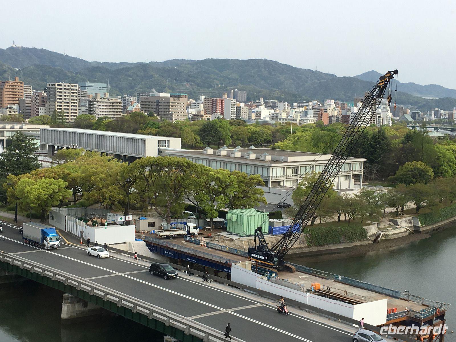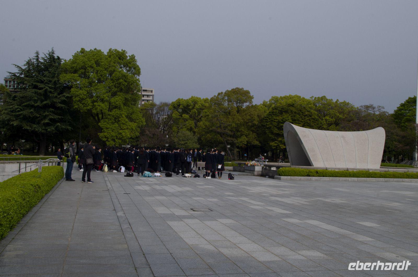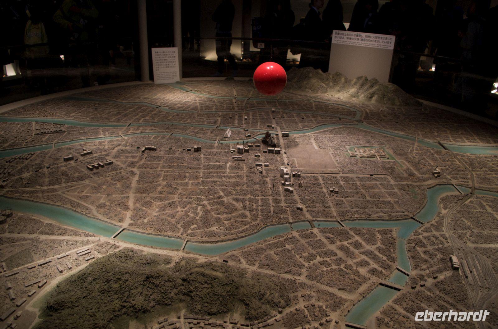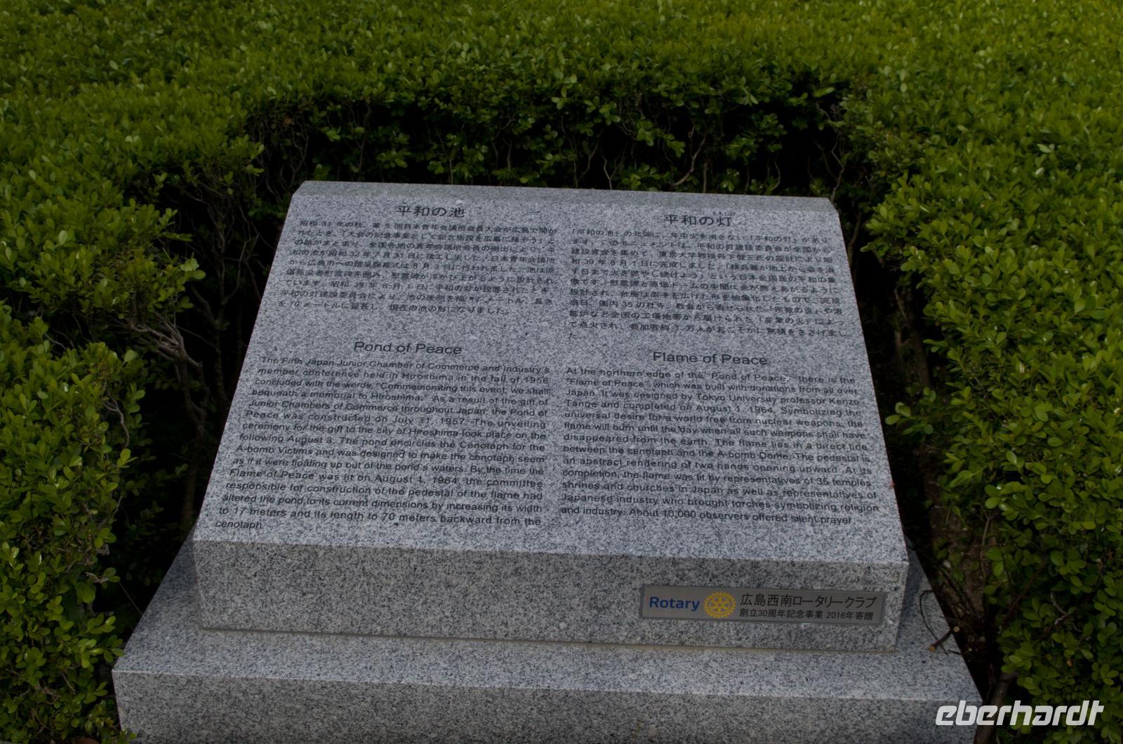 Die Wetteraussichten des heutigen Tages sehen am Morgen noch nicht so gut aus, nachts hat es stark geregnet. Aber wir sind ja eine Glücksgruppe, das Wetter wird sicherlich noch besser werden im Laufe des Tages! Gegen 06.45 Uhr geben wir unsere Koffer an der Rezeption ab und genießen anschließend ein leckeres Frühstücksbuffet im Restaurant Bijoux. Wenig später checken wir aus und laufen gemeinsam nur mit unserem Handgepäck beladen zum rund fünf Gehminuten entfernten Bahnhof von Takayama. Um 08.00 Uhr fahren wir mit dem Regionalexpress HIDA 4 von Takayama nach Nagoya. Wir haben reservierte Sitzplätze im Car 2. Im Regionalexpress gibt es zwar keinen Servicewagen, aber Toiletten sind vorhanden. Pünktlich um 10.33 Uhr erreichen wir Nagoya, von wo wir um 11.11 Uhr mit dem Shinkansen HIKARI 465 nach Himeji weiterfahren. Unsere Sitzplätze sind im Car 16 reserviert. Shinkansen sind Hochgeschwindigkeitszüge mit einer Höchstgeschwindigkeit bis zu 300 Kilometern pro Stunde. Im Zug kommt aller 30 bis 60 Minuten ein Servierwagen zum Erwerb unter anderem von Kleinigkeiten wie Kaffee, Snacks oder Getränken vorbei. Es sind mehrere Toiletten an Bord vorhanden. Pünktlich um 12.42 Uhr erreichen wir Himeji. Unser nicht benötigtes Handgepäck schließen wir in die im Bahnhof vorhandenen Schließfächer ein. Die Preise liegen für ein kleines Schließfach für maximal einen Rucksack und eine kleine Tasche bei 300 YEN, für ein mittleres Schließfach für maximal zwei Rucksäcke und eine kleine Tasche bei 500 YEN. Mehrere Gäste teilen sich daher die Schließfächer. Die Schließfächer nehmen nur 100-YEN-Münzen an, die 500-YEN-Münzen können aber direkt an einem Automaten bei den Schließfächern getauscht werden. Dann spazieren wir rund 20 bis 30 Minuten gemeinsam zur im 16./17. Jahrhundert errichteten Burg Himeji-jo. Sie ist auch als "Burg der Weißen Reiher" bekannt, da ihre weiße Gestalt eine Anspielung auf die Landung eines weißen Silberreihers darstellen soll. Wir besichtigen die Burg zusammen mit Chisako, den Rückweg zum Bahnhof treten wir entweder individuell oder in der Gruppe an. Mit der Burg ist besonders die Geschichte um die Prinzessin Senhime, die Enkelin des Shoguns Ieyasu, verbunden. Eine von vielen unterschiedlichen Legenden besagt, dass Senhime im Alter von sieben Jahren mit dem feindlichen elfjährigen Monarchen Toyotomi Hideyori verheiratet wurde. Dieser Monarch wurde wenig später vernichtet, aber Senhime konnte gerettet werden. Sie verliebte sich dann angeblich auf den ersten Blick in Honda Tadatoki, welcher später Burgherr von Himeji-jo wurde. Eine im Sengoku Zeitalter der "Streitenden Reichen" sehr selten vorkommende Liebesheirat erfolgte und sie lebten der Legende nach glücklich auf der Burg Himeji. Eine schöne Geschichte ist es zwar, aber wie wahr diese ist, bleibt dem Erzähler überlassen! Wir laufen gemeinsam durch "Hishi no Mon", das größte Tor der Burg, und wir kommen am Sangoku Graben "Sangoku Bori" gleich nach dem Eingang vorbei. Besonders interessant sind wohl die runden und flachen Dachziegel "Jujimon Gawara" mit verschiedenen Mustern, welche jeweils die sechs unterschiedlichen Familienwappen der Burgherren zeigen. Wer möchte, erklimmt gemeinsam mit Chisako und der Reisebegleitung das fünfstöckige Bauwerk, den großen weißen Turm "Daitenshu". Im Inneren besitzt der Turm aber insgesamt sieben Stockwerke, bestehend aus einem Kellergeschoss und sechs oberirdischen Etagen. Im Kellergeschoss sehen wir beispielsweise eine Miniaturausgabe der Burg zur damaligen Zeit. Weitere interessante Sehenswürdigkeiten sind zum Beispiel die verschiedenen Säulen "Nishi Obashira" oder "Higashi Obashira" über alle Etagen sowie der Schrein "Osakabe" in der sechsten Etage. Auf dem Rückweg zum Bahnhof kaufen wir unter anderem einen Mittagssnack im 7 Eleven oder auch ein leckeres Eis. Um 15.30 Uhr finden wir uns bei den Schließfächern ein, entnehmen unser Handgepäck und fahren pünktlich um 16.22 Uhr mit Shinkansen SAKURA 563 auf vorreservierten Sitzplätzen im Car 8 von Himeji nach Hiroshima. Toiletten und Servicewagen sind abermals vorhanden. Pünktlich eine Stunde später erreichen wir die rund 1,1 Millionen große Metropole Hiroshima und fahren im Taxi zum 3-Sterne-Plus-Hotel "Sunroute Hiroshima". Wir benötigen fünf Taxis mit je einem "Gruppenführer", welcher das Geld verwaltet. Unsere örtliche Reiseleiterin nennt den Taxifahrern das Ziel und steigt selbst in das letzte Taxi ein. Es klappt alles wunderbar und nur wenige Minuten später erreichen wir das zentral gelegene Hotel. Der Check-In verläuft reibungslos. Chisako schlägt uns vor, noch einen Spaziergang durch den Friedenspark "Peace Memorial Park" zu unternehmen, sofern dies von uns gewünscht ist. Die Gruppe begrüßt den Vorschlag, so dass wir in unserem Zimmer nur kurz zum Auffrischen verweilen. Gegen 18.20 Uhr treffen wir uns in der Hotellobby und laufen durch den Friedenspark zum Friedensdenkmal. Der Gedenk-Kenotaph stammt vom Architekten Tage Kenzo. Auf dem Kenotaph lesen wir die deutsche Übersetzung der Inschrift "Yasuraka ni nemutte kudasai, ayamachi wa kurikaeshimasenu kara", welche "Bitte ruhet in Frieden, denn die Fehler werden nicht wiederholt werden" lautet. Wir laufen weiter und sehen die "ewige Flamme des Friedens". Das ebenfalls von Kenzo Tange entworfene Denkmal zeigt zwei sich wie ein Kelch nach oben hin öffnende zusammengelegte Hände mit dem "ewigen Feuer" in der Mitte. Seit dem 1. August 1964 ist das Feuer nicht mehr erloschen. Ein weiteres Denkmal wurde zur Erinnerung an das leukämiekranke Mädchen Sadako Sasaki gebaut, die weltweit bekannteste Überlebende "Hibakusha" der Atombombenabwürfe. Einer alten japanischen Legende nach faltete sie über 1.000 Origami-Papierkraniche, damit die Götter ihr den Wunsch erfüllten, von der Krankheit geheilt zu werden. Dieser Wunsch wurde dem zwölfjährigen Mädchen bedauerlicherweise verwehrt und sie starb 1955. Es folgt die Ruine der eh