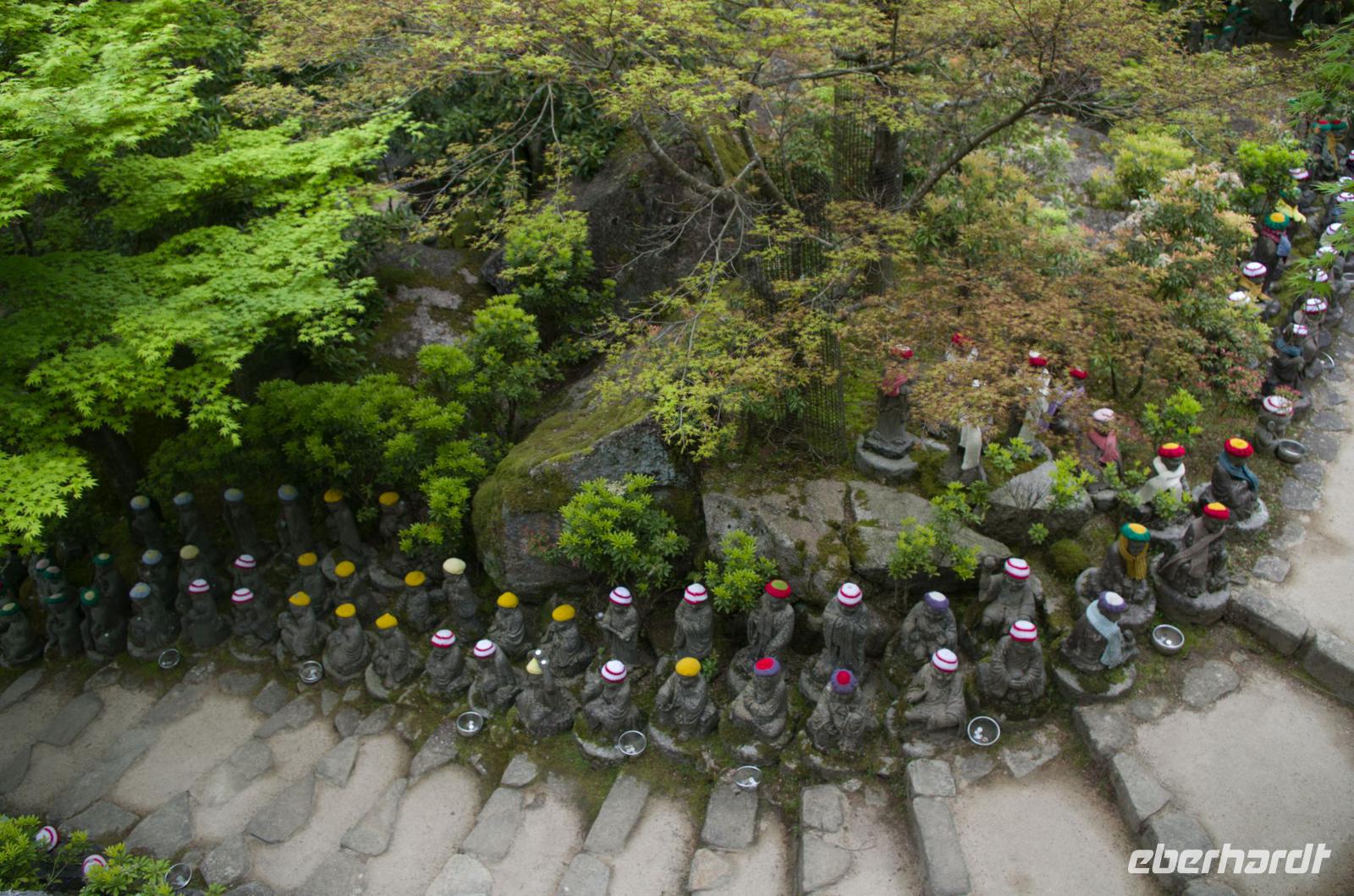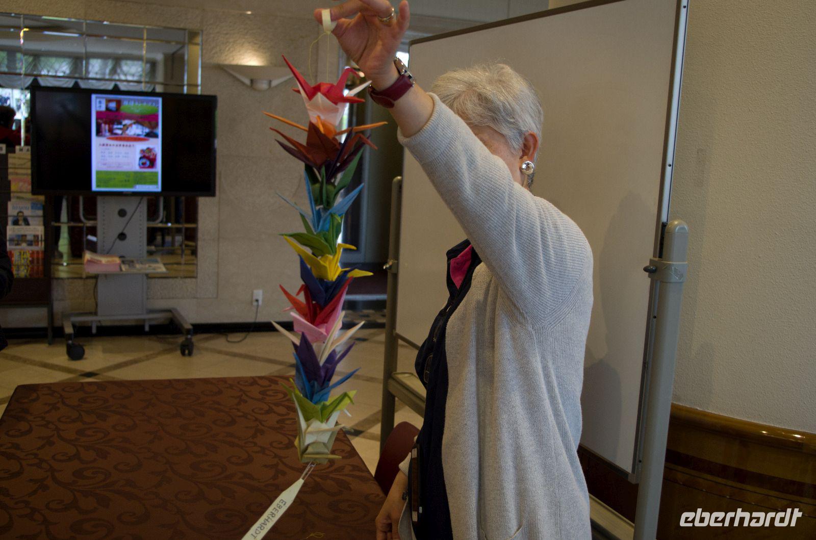 Bei strahlendem Sonnenschein und mit Panoramablick auf Hiroshima genießen wir ab 06.30 Uhr ein leckeres Frühstücksbuffet mit japanischen und europäischen Elementen im Restaurant Viale in der 15. Etage. Bereits während und auch nach dem Frühstück erhalten wir von Chisako eine kurze Einführung in die Papierfaltkunst Origami. Dies ist gar nicht so einfach, ein Versuch lohnt sich aber! Unsere gefalteten Origami-Kraniche hat Chisako auf eine Kette aufgefädelt und ein kleines Schild mit "Eberhardt No. 2" am Fadenende angebracht. Diese Kette werden wir später am Friedensdenkmal zu Ehren von Sadako Sasaki anbringen. Um 08.00 Uhr spazieren wir erneut durch den Friedenspark in Richtung des Friedensdenkmals, welches zur Erinnerung an den Abwurf der ersten Atombombe vom 6. August 1945 errichtet wurde und zum UNESCO-Weltkulturerbe gehört. Anschließend besuchen wir das Gedenkmuseum. Hier sind keine Führungen durch Reiseleiter erlaubt, so dass wir uns individuell dieses denkwürdige Museum anschauen. Wer möchte, kann sich für 300 YEN Audioführung in Deutsch ausleihen. Danach gehen wir zum Hotel zurück, checken aus und fahren mit dem Taxi zum Bahnhof in Hiroshima. Unser nicht benötigtes Handgepäck verstauen wir wieder in den Schließfächern am Bahnhof. Um 10.31 Uhr fahren wir rund 28 Minuten mit der Bahn San-yo Line von Hiroshima zur Miyajimaguchi Station. Dann spazieren wir gemeinsam zur Fährstation. An der Anlegestelle warten wir rund 15 Minuten und fahren gegen 11.25 Uhr rund zehn Minuten mit der Fähre zur Insel Miyajima im Seto-Binnenmeer. Überall auf der Insel finden sich gefräßige und manchmal auch leicht aggressive Rehe. Es ist besser, diese nicht zu füttern. Wir spazieren gemeinsam auf dieser heiligen Insel mit ihren ebenso heiligen Rehen, wo die beiden größten japanischen Religionen Shintoismus und Buddhismus aufeinander treffen. Um 12.00 Uhr besichtigen wir den berühmten Itsukushima-Schrein. Sowohl der Schrein selbst als auch das rund 431,2 Hektar umfassende Gebiet rund um den Schrein zählen seit 1996 zum Weltkulturerbe. Der Itsukushima-Schrein wurde zwar bereits im sechsten Jahrhundert gebaut, aber 1168 so umgebaut wie wir diesen heute sehen. Mitten im Meer und rund 200 Meter vor dem Hauptschrein befindet sich das zinnrote "Große Tor", das "O-Torii-Tor" mit einer Höhe von 16,6 Metern und einem Gewicht von rund 60 Tonnen sowie einem mit der Rinde einer japanischen Zypresse gedeckten circa 24,2 Meter langen Dach. Nur mit seinem Eigengewicht steht das Tor im Wasser. Es besitzt aus Campferholz errichtete Hauptsäulen und aus Zedernholz gebaute tragende Säulen. Seit der Heian-Zeit ist es heute mittlerweile das achte und seit 1875 das letzte errichtete Tor. Der Hohlraum des oberen Rahmens ist mit Steinen gefüllt, welches ein Gesamtgewicht von rund sieben Tonnen umfasst. Wir laufen nicht nur am Hautschrein entlang, sondern auch an den kleineren Schreinen wie Marodo, Deikoku und Tenjin vorbei. Zusammen mit Chisako üben wir erneut den richtigen Ablauf des Gebetsrituals. Zuerst sind eine oder mehrere Münzen einzuwerfen, dann zweimal zu verbeugen, zweimal zu klatschen, zu beten und zuletzt noch einmal zu verbeugen. Wir laufen weiter und sehen eine erhöhte Bühne. Chisako erklärt uns, dass auf dieser Bühne die sogenannten traditionellen japanischen Bugaku-Tänze vorgeführt werden, welche uralte Tänze der Umwerbung sind. Dazu gehört zum Beispiel "Nasori", der "Tanz der zwei Drachen", welcher das Zusammenspiel eines männlichen und eines weiblichen Drachens darstellen soll. Anschließend haben wir Zeit für einen individuellen Rückweg zur Fährstation oder für den Besuch der Tempelanlage Daisho-in zusammen mit unserer örtlichen Reiseleiterin Chisako. Wir finden uns alle um 13.30 Uhr an der Fährstation der Insel Miyajima ein und fahren 13.39 Uhr rund zehn Minuten zum Festland zurück. Um 14.19 Uhr startet die Fahrt von 28 Minuten mit der Bahn San-yo Line von Miyajimaguchi zur Hiroshima Station. Am Bahnhof Hiroshima entnehmen wir unser Handgepäck aus den Schließfächern. Um 15.22 Uhr fahren wir mit dem Shinkansen SAKURA 556 im Car 4 von Hiroshima nach Shin-Osaka. Wir haben abermals reservierte Sitzplätze und beim Servicewagen können wir bei Bedarf Kleinigkeiten erwerben. Des Weiteren gibt es für jeden Gast eine kleine Überraschung. Die berühmteste Süßigkeit der Insel Miyajima ist "Momiji Manju". Dies sind gefüllte Waffeln in Form eines Ahornblattes. Zur Auswahl stehen Waffeln mit den Füllungen Bohnenpaste, Vanille, Schoko oder Grüner Tee. Jeder Gast probiert eine der Süßigkeiten mit der gewünschten Füllung. In Shin-Osaka kommen wir um 16.48 Uhr an, wechseln das Gate und fahren um 17.16 Uhr mit dem Shinkansen HIKARI 530 von Shin-Osaka nach Kyoto. Dieses Mal haben wir zwar keine reservierten Sitzplätze, aber dennoch hat jeder einen Sitzplatz! Bereits um 17.33 Uhr erreichen wir den Kyoto Bahnhof. Wir besichtigen diesen beeindruckenden architektonischen Bau von Hiroshi Hara und laufen den sich 45 Meter über der Zentralhalle befindenden Skyway entlang. Dann spazieren wir zum Restaurant. Um 18.15 Uhr gönnen wir uns ein leckeres "Tempura"-Abendessen mit in der Teighülle frittierten Speisen wie Meeresfrüchten, Fisch und Gemüse. Um 19.00 Uhr spazieren wir wieder zur Kyoto Station und fahren um 19.15 Uhr mit der Metro Karasuma Line 27 Minuten zur Kokusaikaikan Station. Von hier aus sind es nur wenige Gehminuten zum 4-Sterne-Plus-Hotel "Grand Prince Hotel Kyoto" in Kyoto. Nach einem problemlosen Check-In verabschieden wir uns nach einem tollen, aber auch langen Tag voneinander. Neben mehreren Zug- und Metrofahrten sind wir rund drei Kilometer mit dem Taxi gefahren sowie circa 12,0 Kilometer und 17.327 Schritte zu Fuß gelaufen.