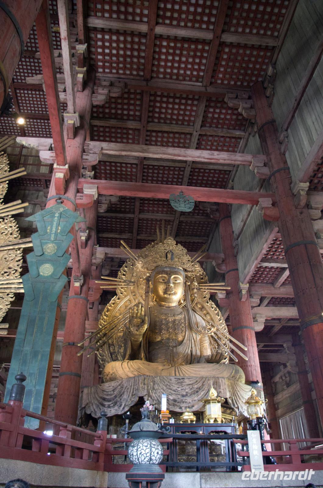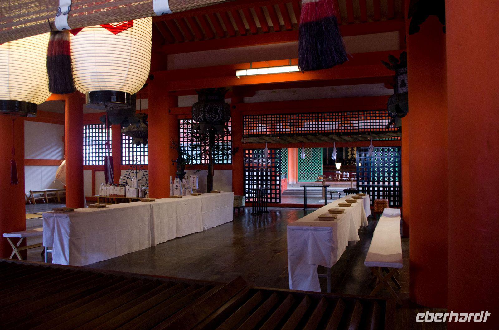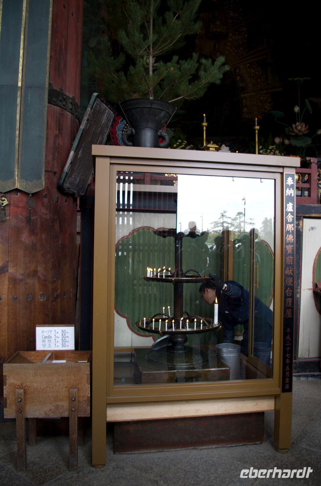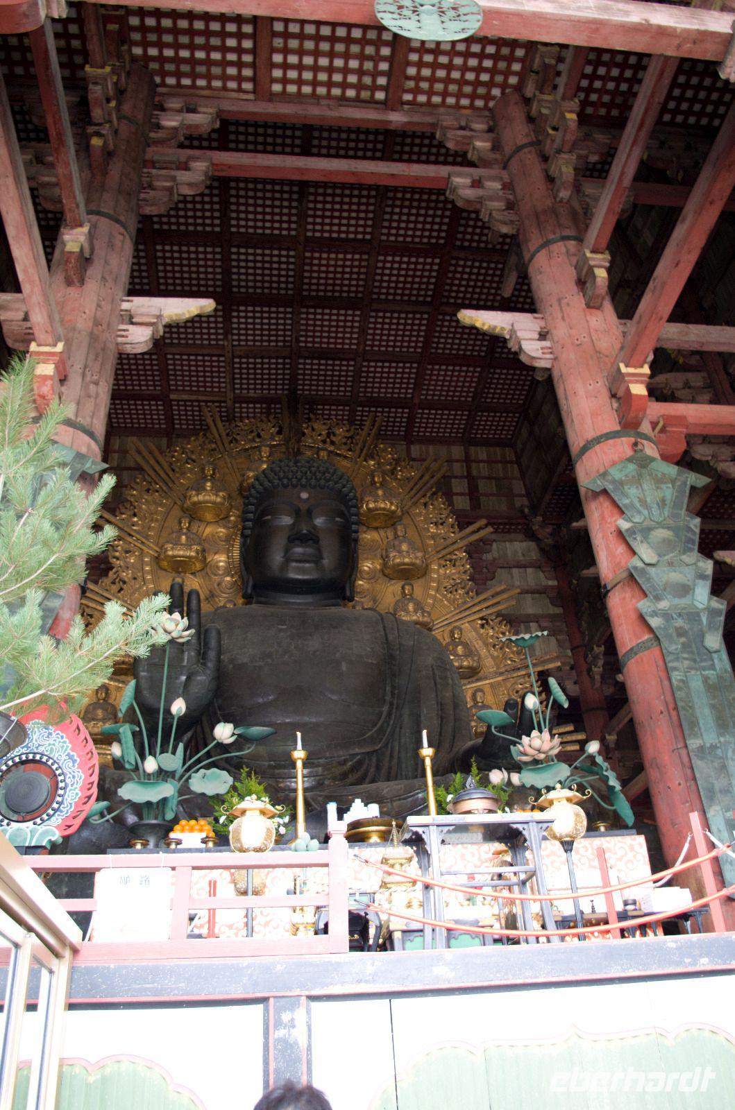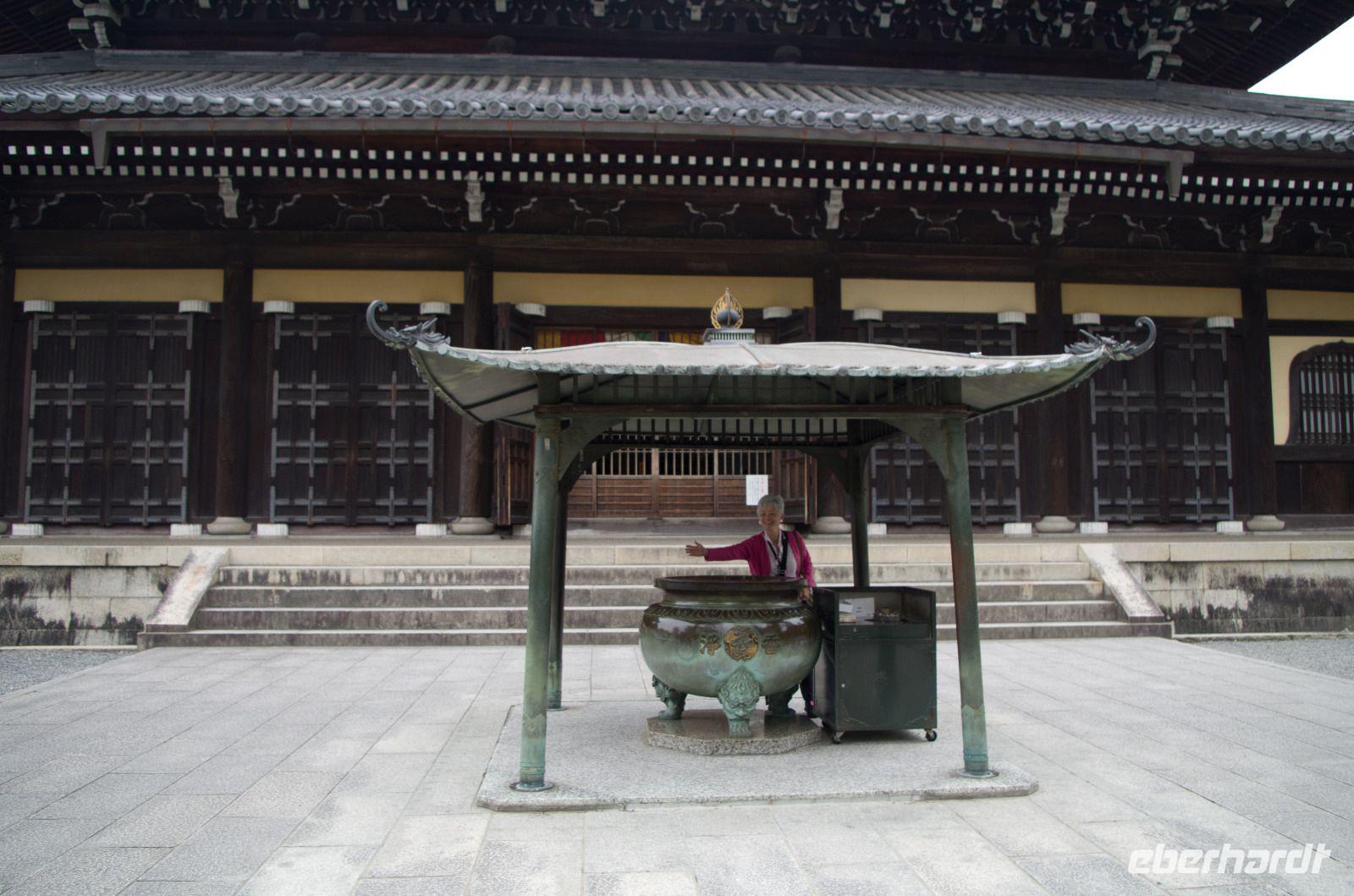 An unserem letzten Programmtag in Japan werden wir wieder von der Sonne verwöhnt, das haben wir uns aber auch verdient! Wir genießen ab 06.45 Uhr abermals ein köstliches Frühstücksbuffet. Unser japanisches Wort des Tages ist "Itchiban", was übersetzt "Nr. 1" oder "Klasse" bedeutet. Um 08.19 fahren wir 20 Minuten mit der Metro Karasuma Line von Kokusaikaikan Station nach Kyoto Station. Wir laufen zur Abfahrtsstelle der Nara Line, mit welcher wir um 09.02 Uhr zur Nara Station fahren. Um 09.48 Uhr erreichen wir Nara, die Wiege der japanischen Kultur und erstes Weltkulturerbe Japans. Weiter geht es mit dem öffentlichen Bus von der Nara Station zur Bushaltestelle Todai-ji Daibutsuden. Wir spazieren gemeinsam durch den Nara-Park mit dem Kasuga-Taisha-Schrein. Das Gebiet um Nara hat im achten Jahrhundert "Heijo-kyo" geheißen, übersetzt bedeutet es "Kaiserliche Residenzstadt Friedensburg". Die Errichtung des Schreins wurde zum göttlichen Schutz der ehemaligen Kaiserstadt vorgenommen. Bekanntheit hat er auch für seine großartig blühende "Wisteria", den sogenannten Blauregen, erhalten. Unterwegs werden wir abermals von heiligen aber auch sehr gefräßigen Rehen begleitet. Mehrere Gäste äußern den Wunsch, ihre Namen oder die Namen von geliebten Daheimgebliebenen in die japanische Sprache übersetzen und in Schriftzeichen aufschreiben zu lassen. Unsere tolle Reiseleiterin führt uns in ein Kalligraphie-Geschäft, wo uns der Inhaber genau diesen Wunsch erfüllt. Wir sind ganz begeistert. Danke Chisako für die Erfüllung unseres Wunsches! Zur Mittagszeit besichtigen wir dann den bekannten Tempel Todai-ji, welcher die größte bronzene Buddha-Statue der Welt beherbergt. Sie stellt den meditierende kosmischen Buddha "Vairocana" dar. Die Statue ist 15 Meter hoch, mit Sockel 18 Meter und 452 Tonnen schwer. Die riesige Halle hat dadurch Berühmtheit erfahren, da sie das größte nur aus Holz errichtete Bauwerk der Welt ist. Danach treten wir wieder den Rückweg an, fahren mit dem öffentlichen Bus vom Todai-ji Daibutsuden zur Nara Station. Am Bahnhof gönnen wir uns leckere Köstlichkeiten im Café "Vie de France". Um 13.50 Uhr fahren wir mit der Nara Line zurück zur Kyoto Station. Bereits bei der Fahrt mit der Metro haben wir festgestellt, dass Japaner wohl überall schlafen können. Auf unserer Rückfahrt ist dies ebenfalls sehr auffallend. Dieser sogenannte Abwesenheitsschlaf "Inemuri" gönnen sich die Japaner bereits zu Schulzeiten, schlafende Fahrgäste im Zug oder der Bahn sind demnach vollkommen normal in Japan. Viel interessanter ist wohl eher die Tatsache, dass die meisten Japaner zum Beispiel rechtzeitig kurz vor der gewünschten Ausstiegsstation wieder aufwachen! Rund eine Stunde später spazieren wir zum Fukujuen zur Tee-Zeremonie "Chado". Bei der Zeremonie um 15.30 Uhr wird uns die Vorgehensweise zuerst auf Japanisch erklärt und vorgeführt. Unsere Reiseleiterin übersetzt für uns. Da der Tee sehr bitter ist, wird zuvor eine Süßigkeit, "Kashi" auf Japanisch, gereicht. Der grüne Tee "Matcha" in Pulverform wird in heißem Wasser mit einem kleinen Besen schaumig geschlagen. Des Weiteren wird uns gezeigt, wie die Schale richtig zu halten und zu drehen sowie unsere Anerkennung gegenüber dem Gastgeber oder der Gastgeberin auszudrücken ist. Im Anschluss können die Gäste Fragen stellen. Nach der Teestunde haben wir Zeit für einen individuellen Stadtbummel oder spazieren "sportlich" zusammen mit Chisako zur Yasaka Pagode und zurück zum Treffpunkt. Um 18.00 Uhr findet sich die Gruppe wieder zusammen und wir fahren im Taxi rund vier Kilometer zum Restaurant. Zum Abschied wird uns um 18.30 Uhr ein leckeres mehrgängiges Kaiseki-Abendessen in Kyoto geboten. Unsere Schuhe werden dieses Mal im Schließfach eingeschlossen, den kleinen Schlüssel nehmen wir mit zum Abendessen. Zuvor können wir noch den sehr schön hergerichteten Garten des Restaurants bestaunen, eine ausreichende Anzahl an "Gartenschuhen" ist vorhanden. Wir erhalten ein ähnliches Menü wie im Ryokan in Hakone. Als Erinnerung gibt es für jeden Gast einen kleinen gefalteten Papierkranich. Als Vorspeisen erhalten wir verschiedene liebevoll angerichtete Kleinigkeiten wie beispielsweise Sushi, Reiskuchen, Ei, eine kleine Tofu-Rolle mit Gemüse und eine Garnele. Die Speisen können wir mit der uns bestens bekannten Soja-Sauce verfeinern. Der zweite Gang umfasst unterschiedliche Fischhappen wie Lachs oder Thunfisch. Es folgt die Möglichkeit, selbständig Tofu zuzubereiten. Tofu wird aus Sojabohnen und einem Gerinnungsmittel hergestellt. Der nächste Gang umfasst im Teigmantel frittierte Speisen wie Fisch oder Gemüse, auch Tempura genannt. Es folgen Reis und Miso-Suppe sowie eine Süßspeise als Nachtisch. In den vergangenen elf Tagen haben wir eine kulinarische Entdeckungsreise japanischer Speisen bei sehr vielfältigen Abendessen unternommen. Sicherlich sind die landestypischen Speisen für den einen oder anderen Reisegast eher mehr als weniger gewöhnungsbedürftig, aber Neugier liegt in unserer Natur und schon aus reiner Höflichkeit probieren wir diese interessanten Köstlichkeiten. Es lohnt sich auf alle Fälle, diese einmaligen kulinarischen Speisen Japans kennenzulernen. Rund zwei Stunden später fahren wir im Taxi circa acht Kilometer zum Hotel zurück. Im Hotel trifft sich die Gruppe zur gemeinsamen entspannten Verabschiedung im Zimmer der Reisebegleitung. Es ist vielleicht ein wenig eng, aber dennoch gemütlich! Wie bereits erwähnt haben uns die Schnapsbecher die gesamte Reise über begleitet, heute kommen sie wieder zum Einsatz! Wir stoßen ein letztes Mal mit Sake auf unsere tolle Reise an und bedanken uns bei Chisako für ihre großartige Reiseleitung. Gegen 22.00 Uhr ziehen wir uns auf die Zimmer zurück und packen die restlichen Sachen in unseren Koffer. Wir haben heute rund 12,5 Kilometer und 18.144 Schritte zu Fuß sowie circa zwölf Kilometer mit dem Taxi zurückgelegt. Gute Nacht und schöne Träu