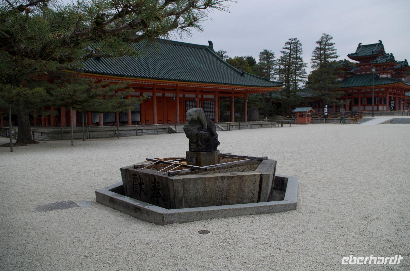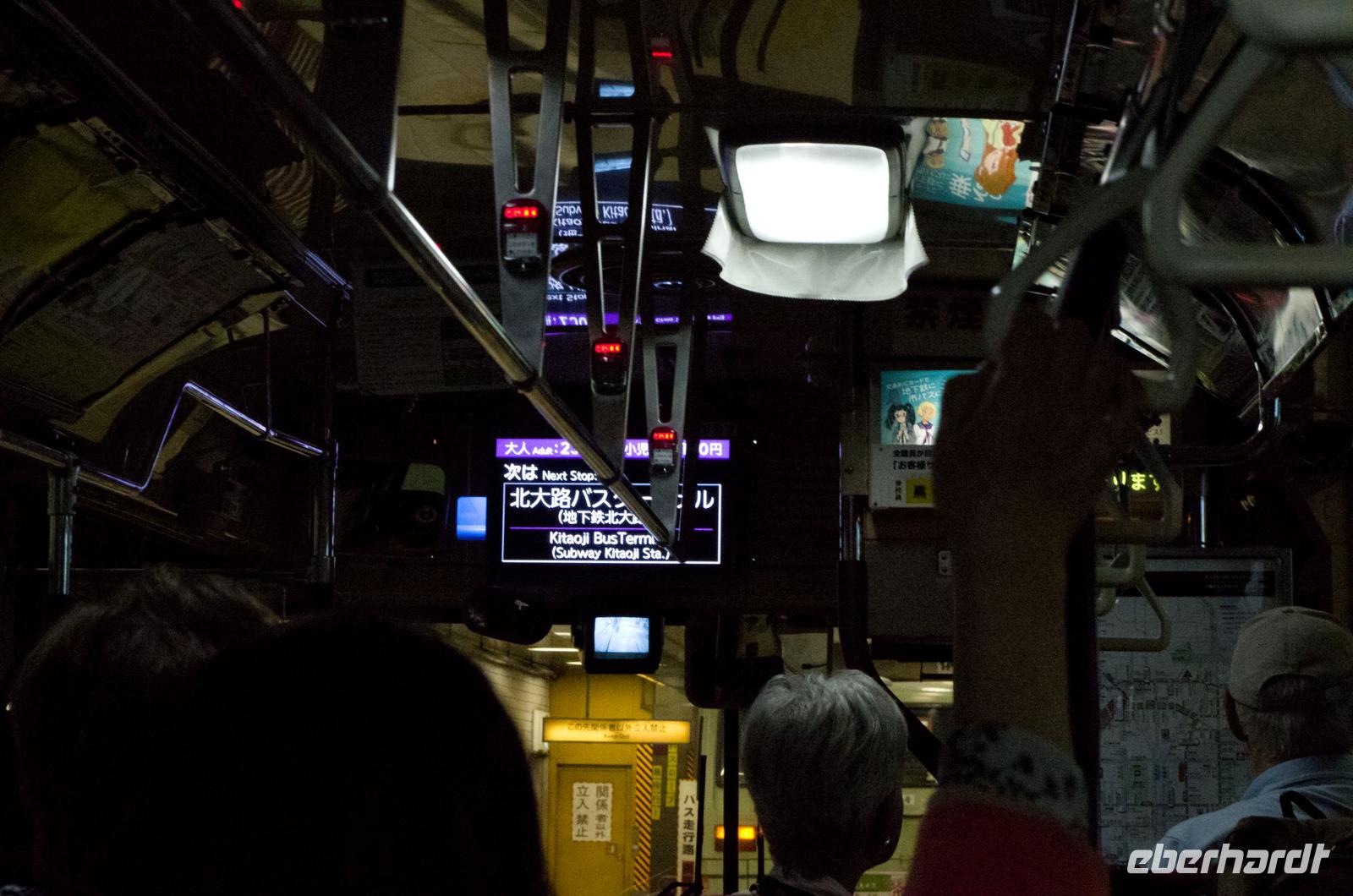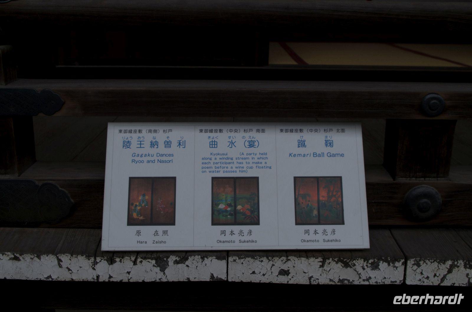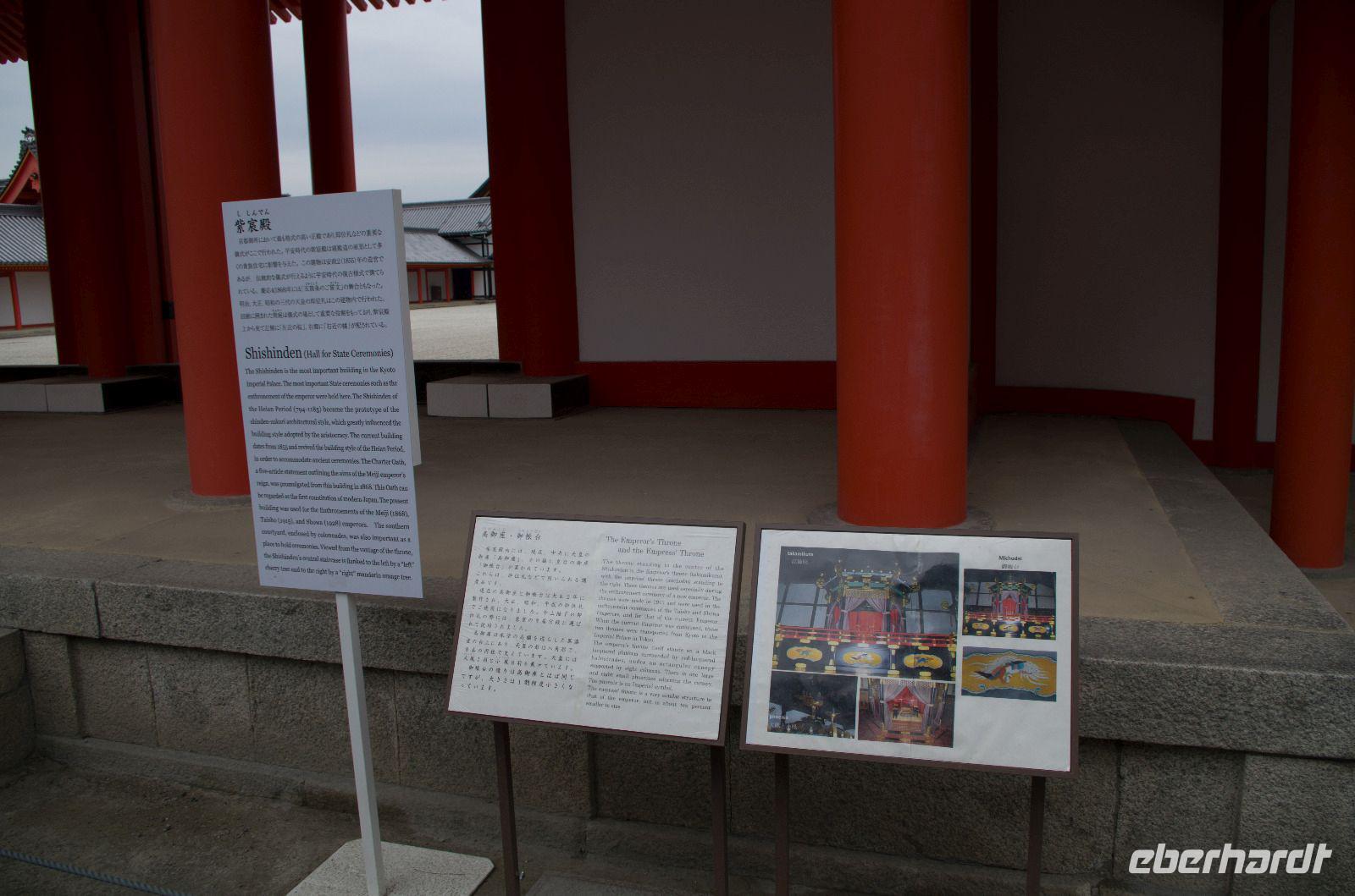Ein sonniger Tag beginnt und ab 06.45 Uhr treffen sich die Gäste zum leckeren Frühstücksbuffet. Wir lernen heute wieder Japanisch. "Kirei" bedeutet übersetzt "schön" oder "hübsch". Zur gewohnten Uhrzeit um 08.00 Uhr beginnt unsere halbtägige Stadtrundfahrt in Kyoto. Bis 13.00 Uhr steht uns der Reisebus zur Verfügung, das Nachmittagsprogramm erfolgt mit öffentlichen Verkehrsmitteln und zu Fuß. Kyoto ist die ehemalige Kaiser- und Hauptstadt Japans von 794 bis 1868, welche seit 1994 zum UNESCO-Weltkulturerbe gehört. Am Vormittag besuchen wir zuerst um 08.30 Uhr den für seinen traditionellen Garten berühmten Tempel Nanzen-ji und spazieren anschließend kurz den Philosophenweg entlang. Der Philosophenweg "Tetsugaku no Michi" ist ein auf den Philosophen Kitaro Nishida zurückzuführender zwei Kilometer langer Weg im Stadtbezirk Sakyo-ku. Der Philosoph soll diesen Weg regelmäßig zum Meditieren genommen haben. Nächster Programmpunkt ist um 09.50 Uhr die Besichtigung des Schreins "Heian-jingu", eine Nachbildung im 2/3-Maßstab des Kaiserpalastes "Heian-kyo". Rund eine halbe Stunde später fahren wir zum ehemaligen Kaiserpalast "Kyoto Imperial Palace". Wir schauen uns die unterschiedlichen Gebäude an und erfahren spannende Hintergrundinformationen von Chisako. Interessant ist sicher, dass ein japanischer Kaiser immer die drei göttliche Dinge Schwert, Juwel und Spiegel besitzen muss. Das Schwert symbolisiert Kraft, der Juwel den göttlichen Geist und der Spiegel die Weisheit des Geistes. Die Besichtigung des Kaiserpalastes steht nicht in unserem Programm, sie ist eine Empfehlung unser Reiseleiterin. Danke Chisako für die wirklich tolle Idee! Um 12.00 Uhr besuchen wir den Tempel Ryona-ji mit dem berühmten Zen-Garten. Nun heißt es wieder Schuhe ausziehen und Tempelsocken anziehen. Danach werden wir zum als Goldenen Pavillon bekannten Tempel Kinkaku-ji gefahren. Hier verabschieden wir uns vom Busfahrer, unser weiteres Tagesprogramm erfolgt zu Fuß und mit öffentlichen Verkehrsmitteln. Gegen 13.15 Uhr bestaunen wir dieses goldene Heiligtum. Während sich hier wirklich viele Touristen versammeln, haben wir bei allen anderen Besichtigungspunkten immer Glück gehabt, die Sehenswürdigkeiten in Ruhe zu betrachten. In der näheren Umgebung befinden sich Souvenirläden und kleine Restaurants. Zum Mittag gönnen wir uns unter anderem eine leckere Nudelsuppe. Uns stehen verschiedene Nudelsorten zur Auswahl. Zum Beispiel sind "Somen" dünne Fadennudeln aus Weizen, "Udon" sehr dicke, weiße Weizennudeln oder "Soba" dünne Buchweizennudeln. Um 14.45 Uhr finden wir uns auf dem Parkplatz zusammen und laufen zur Bushaltestelle. Gegen 15.00 Uhr fahren wir mit dem öffentlichen Bus von Kinkakuji-Michi zum Kamihatecho Kyoto Zoukeigeidai-mae Bus Stopp, welchen wir rund 30 Minuten später erreichen. Um 16.30 Uhr schauen und hören wir uns eine interessante Theaterveranstaltung der Maikos und Geikos "Miyako Odori" im Kyoto Art Theater "Shunjuza" an. Die Vorführung stimmungsvoller traditioneller Kirschblüten-Tänze dauert rund eine Stunde. Fotografieren und Filmen sind nicht erlaubt. Auch wenn die Musik sehr melodramatisch und eher gewöhnungsbedürftig ist, sind die Gäste besonders von Bühnenbild und Kostümen begeistert. Um 17.30 Uhr fahren wir mit dem öffentlichen Bus von Kamihatecho Kyoto Zoukeigeidai-mae zum Shijo-Karawamachi Bus Stopp, welchen wir gegen 18.10 Uhr erreichen. Wir laufen gemeinsam zum Restaurant, wo uns heute ein leckeres Kyoto-Cuisine-Buffet-Abendessen geboten wird. Neben allerhand kalten und warmen Speisen ist besonders der leckere Kuchen zum Nachtisch zu empfehlen. Nach dem Essen spazieren wir zur Kyoto Station und fahren um 20.04 Uhr rund 16 Minuten mit der Metro Karasuma Line von Shijo zur Kokusaikaikan Station. Wieder ein gelungener, aber auch langer Tag neigt sich dem Ende. Wir wünschen eine gute Nacht und ziehen uns auf die Zimmer zurück. Heute sind wir rund 19 Kilometer im Reisebus unterwegs gewesen sowie haben wir am gesamten Tag 13,0 Kilometer und 18.869 Schritte zu Fuß zurückgelegt.