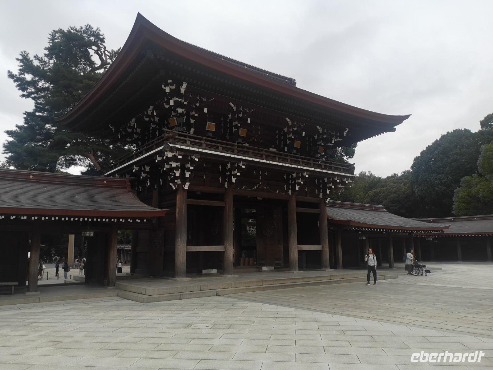 Wir beenden unser Tagesprogramm schließlich am frühen Nachmittag hier am Schrein. Einige nutzen die freie Zeit um durch Tokyos Einkaufstraßen zu bummeln und erste Einkäufe zu tätigen, andere kehren in unser Hotel zurück um sich vom Jetlag zu erholen.