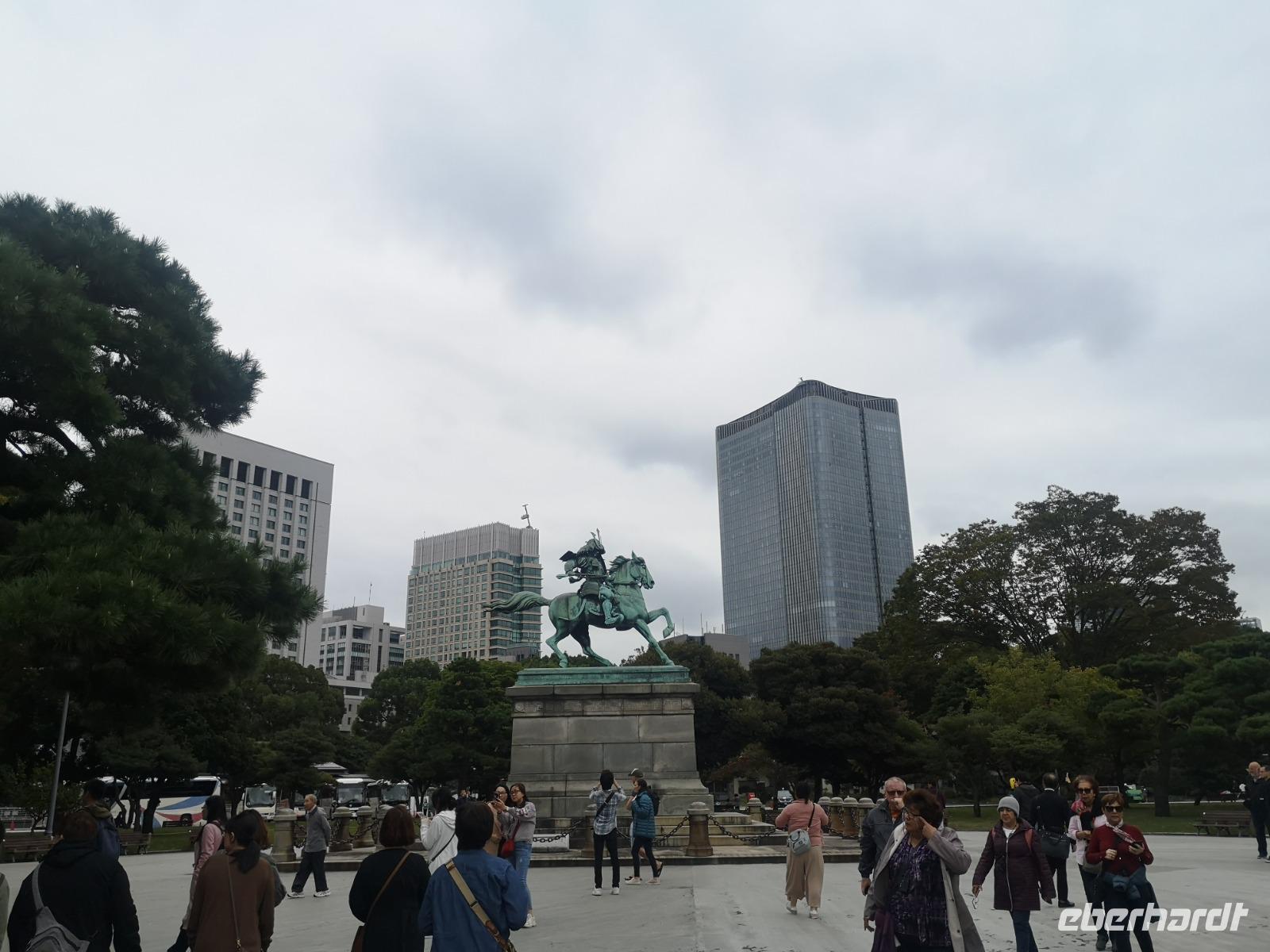 Von hier fahren wir mit dem Bus in Richtung des Kaiserpalastes. Vorbei an der Statue von Kusunoki Masashige, einem Samurai aus dem 14. Jahrhundert, spazieren wir auf den Kaiserpalast zu. Am 22. Oktober, wenn wir bereits in Hiroshima seien werden, wird der neue Kaiser Naruhito hier den Thron besteigen. Den Palast dürfen wir leider nur von außen bewundern, bevor es zu Fuß weiter zur Prachtstraße Ginza geht. Hier reihen sich Luxuskaufhäuser und exklusive Schreibwarenläden, an Kunstgallerien und Nachtclubs. Wir machen eine Pause um durch die Läden zu stöbern: besonders die Lebensmittelabteilung des Mitsukoshi Kaufhauses und die Schreibwarenläden ziehen uns hier in den Bann. Nachdem wir uns mit Postkarten versorgt und die teuresten Melonen Japans bestaunt haben bringt uns unser Bus zurück nach Asakusa.