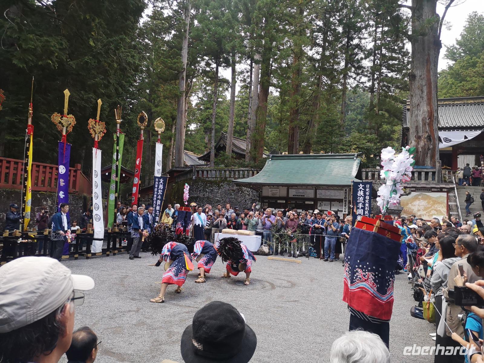 sAm Morgen starten wir mit dem Bus in Richtung Norden zum Nikko-Nationalpark. Auf unserem Weg können wir bereits das ein oder andere bunte Laubblatt entdecken bis wir schließlich unseren ersten Stopp, den See Chuzenji, erreichen. Nach einem kurzen Fotostopp machen wir uns auf den Weg zum nicht weit entfernten Kegon-Wasserfall. Von zwei Aussichtsplatformen bestaunen wir die Wassermassen die hier 97 Meter in die Tiefe stürzen und fahren mit dem Fahrstuhl hinab zum dritten Aussichtpunkt um den Wasserfall auch von unten zu bestaunen. Nach unserer Mittagspause am Wasserfall fahren wir weiter zum Toshogu-Schrein von Nikko. Am Tag unseres Besuches findet auch das jährliche Toshogu-Fest statt - während unserer Besichtigung der großen Schrein-Anlagen können wir deshalb auch den Feierlichkeiten und der Aufführung eines Traditionellen Löwentanzes beiwohnen.