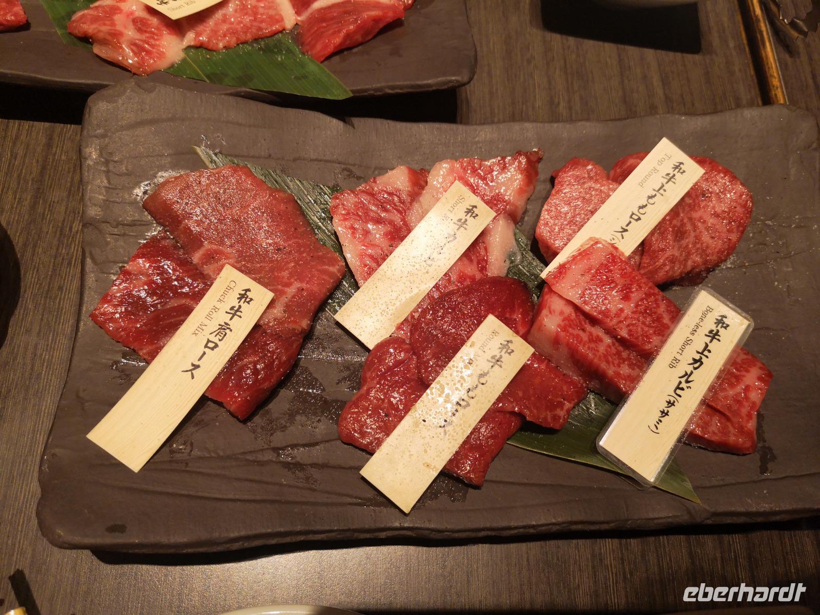 Zum Abendessen kehren wir schließlich nach Tokyo zurück. Es erwartet uns wieder eine besondere Spezialität: Das Wagyu-Rind. In der Mitte unserer Tische sind kleine Grills eingelassen, und so kann jeder selbst seine Portion des edlen japanischen Fleisches nach belieben Grillen. Zum Abschluss gibt es Bibimbap - ein eigentlich Koreanisches Gericht, in dem Reis in Steintopf zubereitet wird.