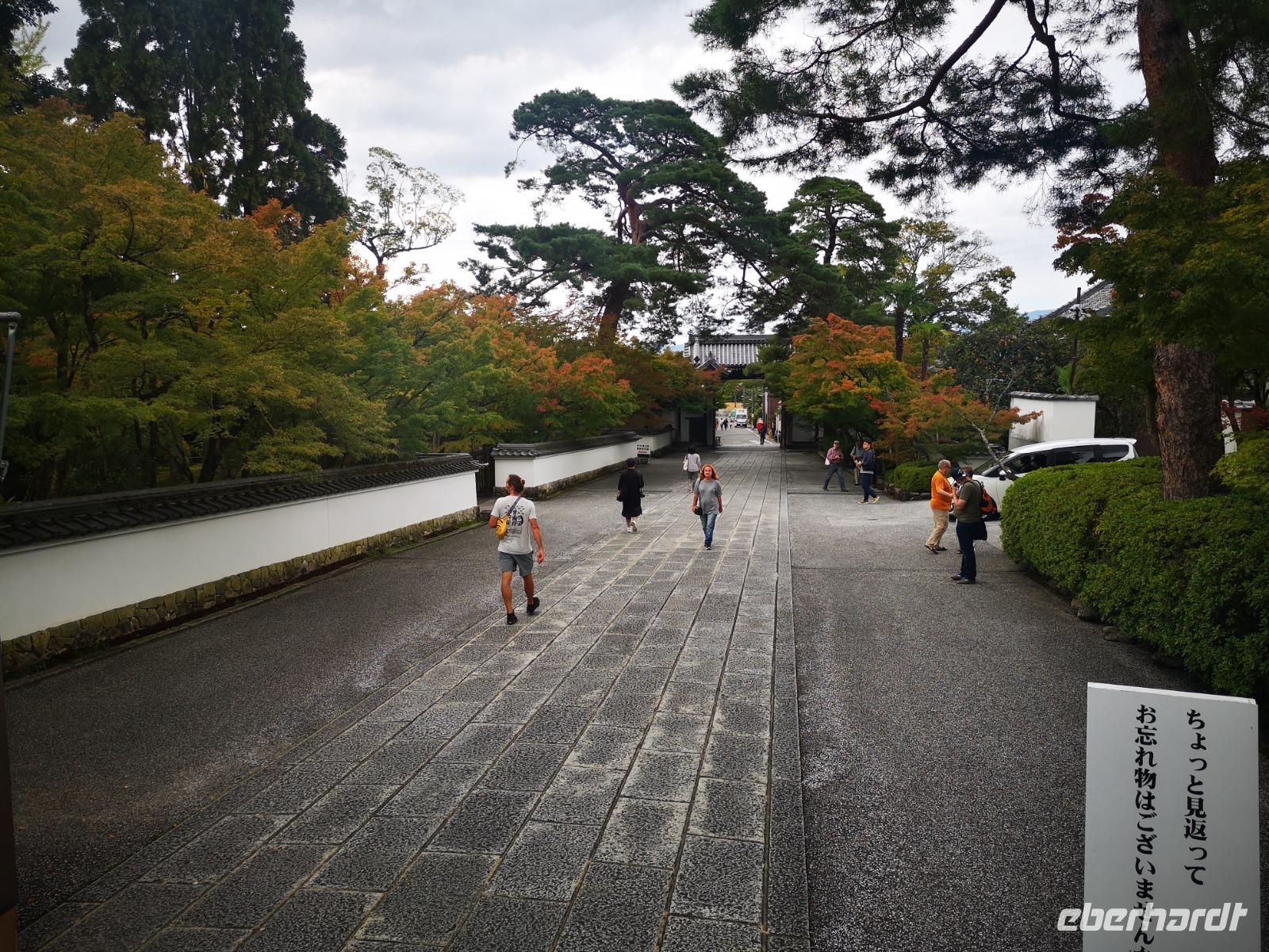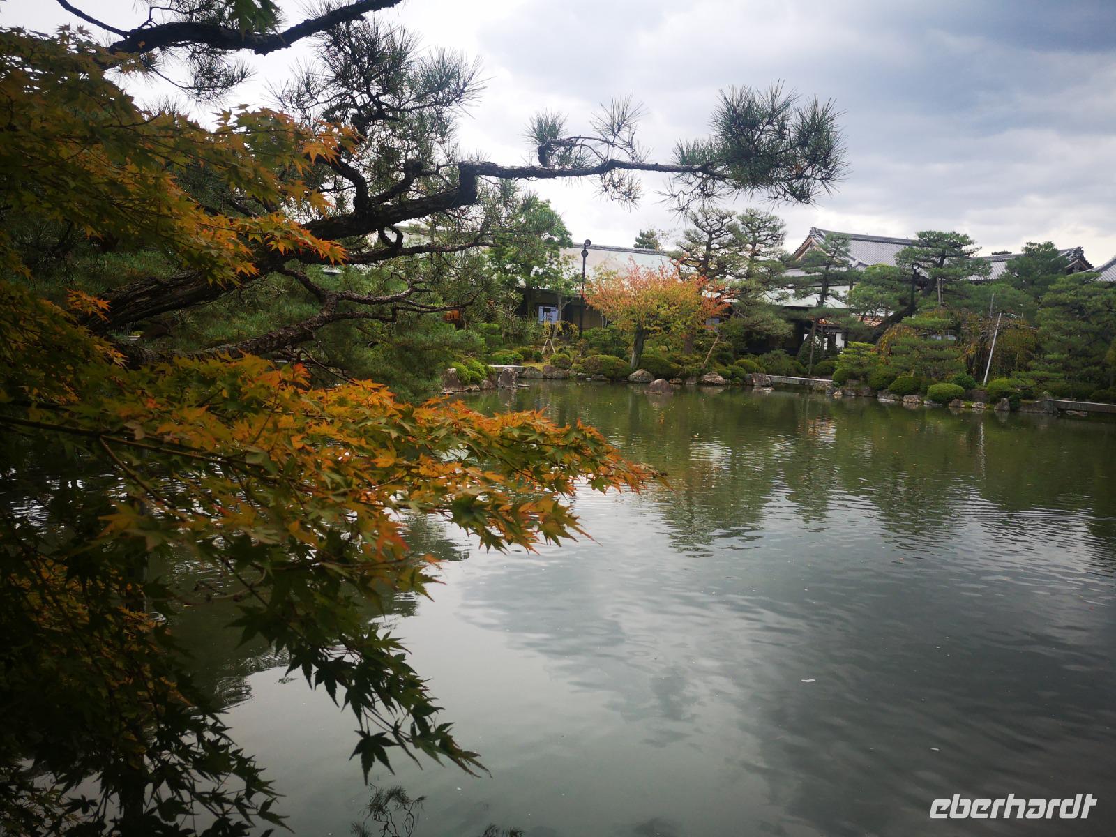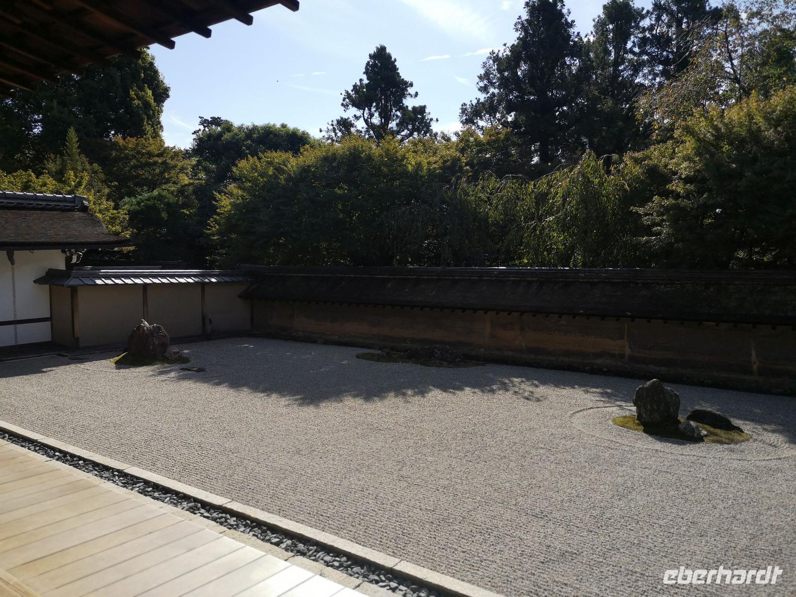 Am Morgen erwartet uns bereits ein Bus am Hotel, der uns direkt zum Ryoanji-Tempel mit seinem berühmten Zen-Garten bringt. Wir haben Glück, es scheint nicht nur die Sonne, sondern wir sind fast allein im Ryoanji-Tempel unterwegs. Nach einer Einführung durch unsere Reiseleiterin Isa haben wir alle Zeit, selbst den Zen-Garten zu bestauenen und durch die weitläufigen Gartenanlagen um den Tempel zurück zum Bus zu spazieren.