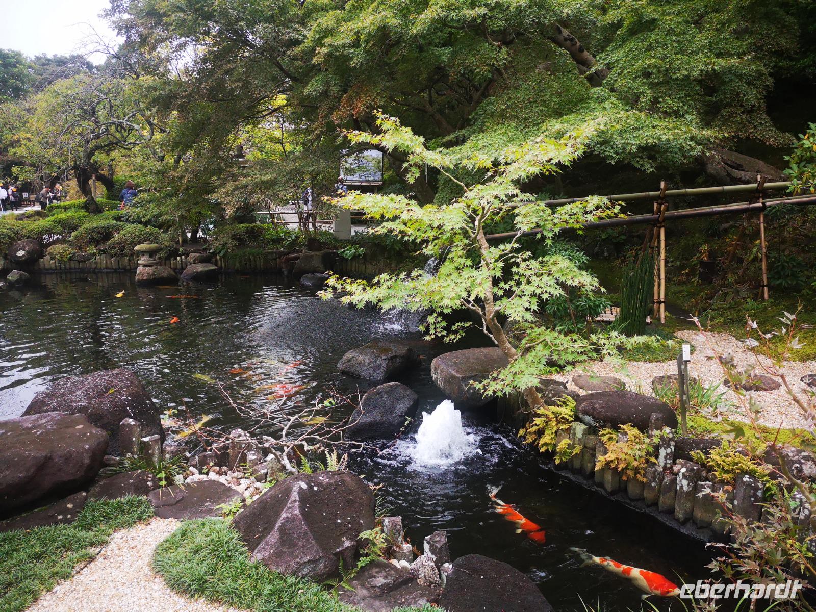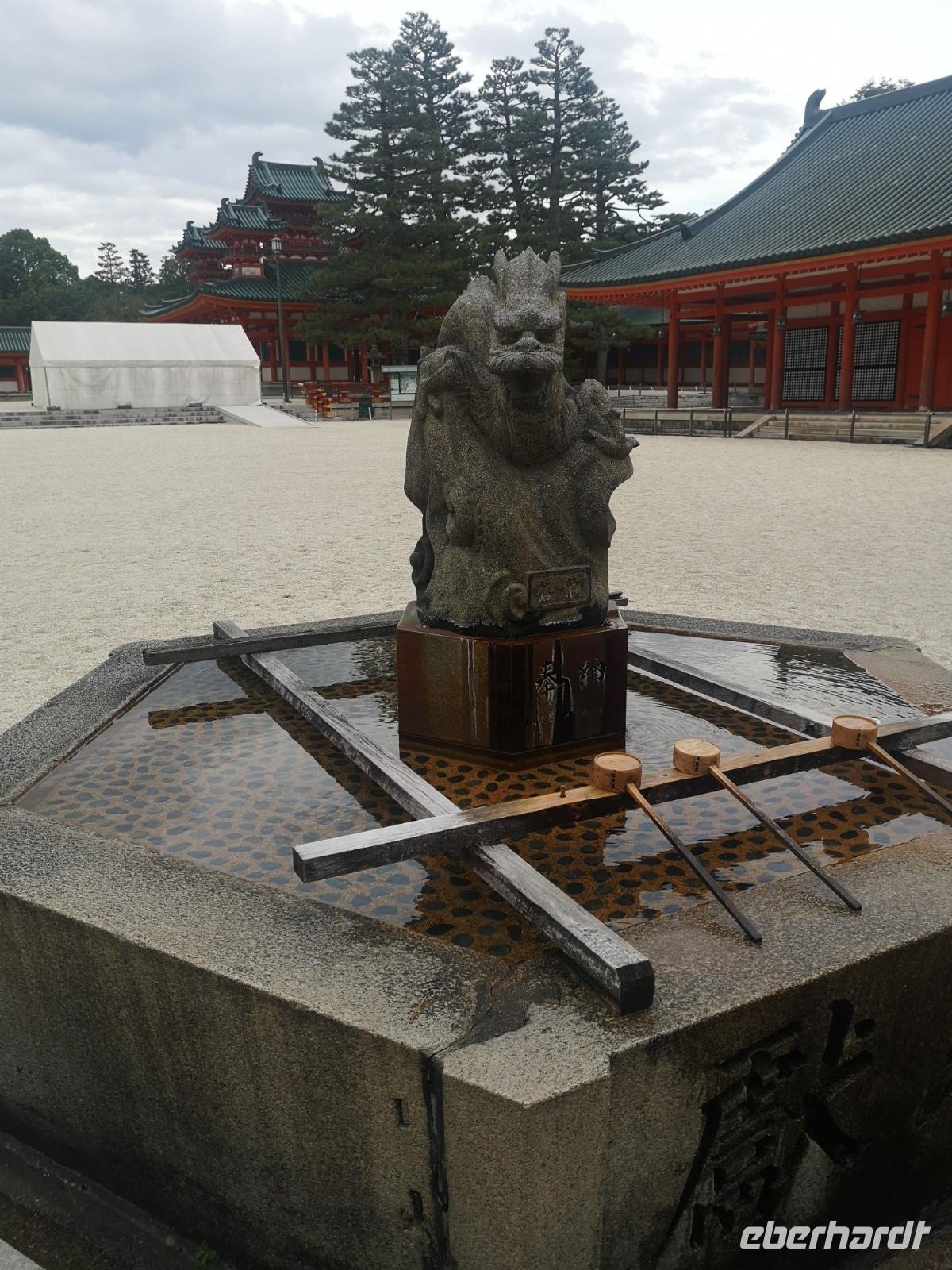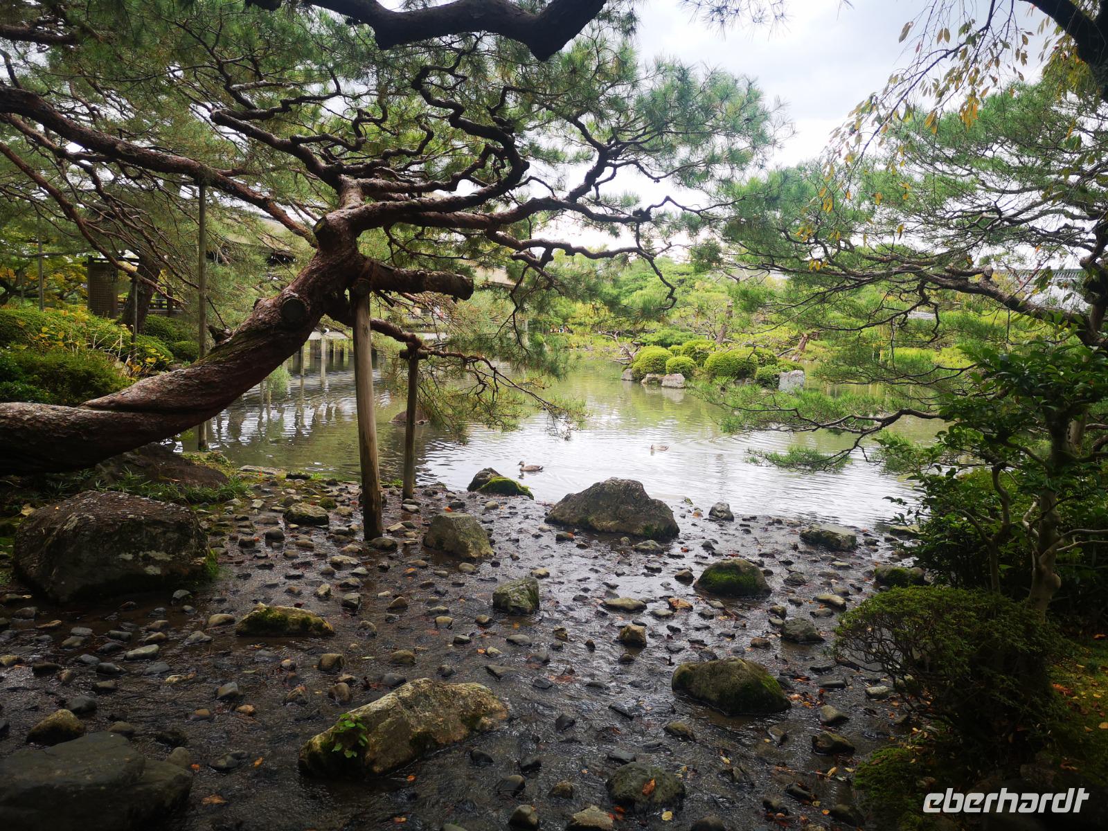 Am Morgen erwartet uns bereits ein Bus am Hotel, der uns direkt zum Ryoanji-Tempel mit seinem berühmten Zen-Garten bringt. Wir haben Glück, es scheint nicht nur die Sonne, sondern wir sind fast allein im Ryoanji-Tempel unterwegs. Nach einer Einführung durch unsere Reiseleiterin Isa haben wir alle Zeit, selbst den Zen-Garten zu bestauenen und durch die weitläufigen Gartenanlagen um den Tempel zurück zum Bus zu spazieren.