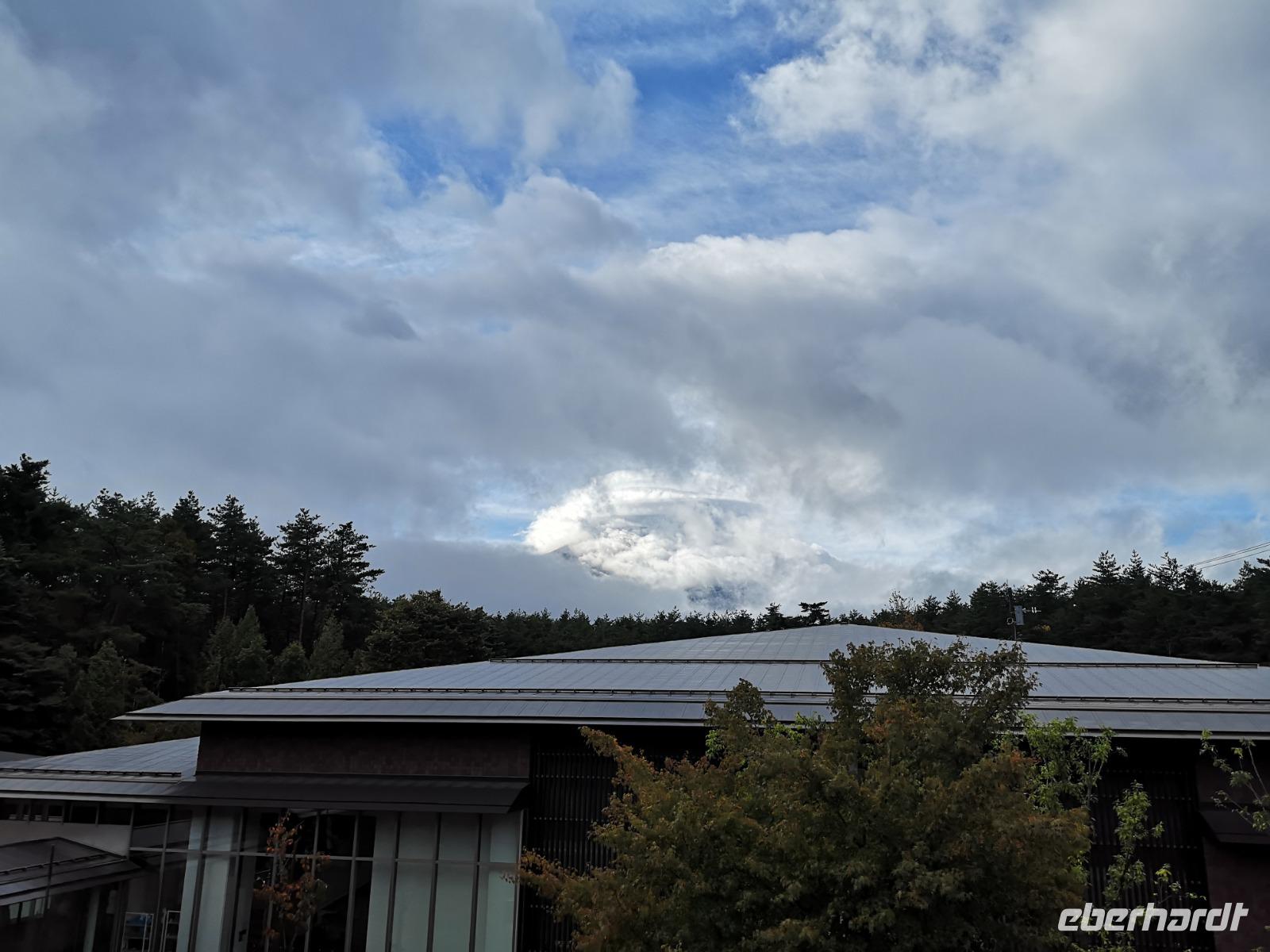 Der Morgen grüßt uns mit dunklen Wolken und leichten Nieselregen. Wir machen uns denoch auf den Weg zum Besucherzentrum unterhalb des Fujis und besichtigen die Ausstellung. Auf dem Aussichtsdeck hoffen wir vergeblich auf eine freie Sicht auf den heiligen Berg, und können zwischen den Wolken leider nur hin- und wieder die seitlichen Hänge des Fuji entdecken.