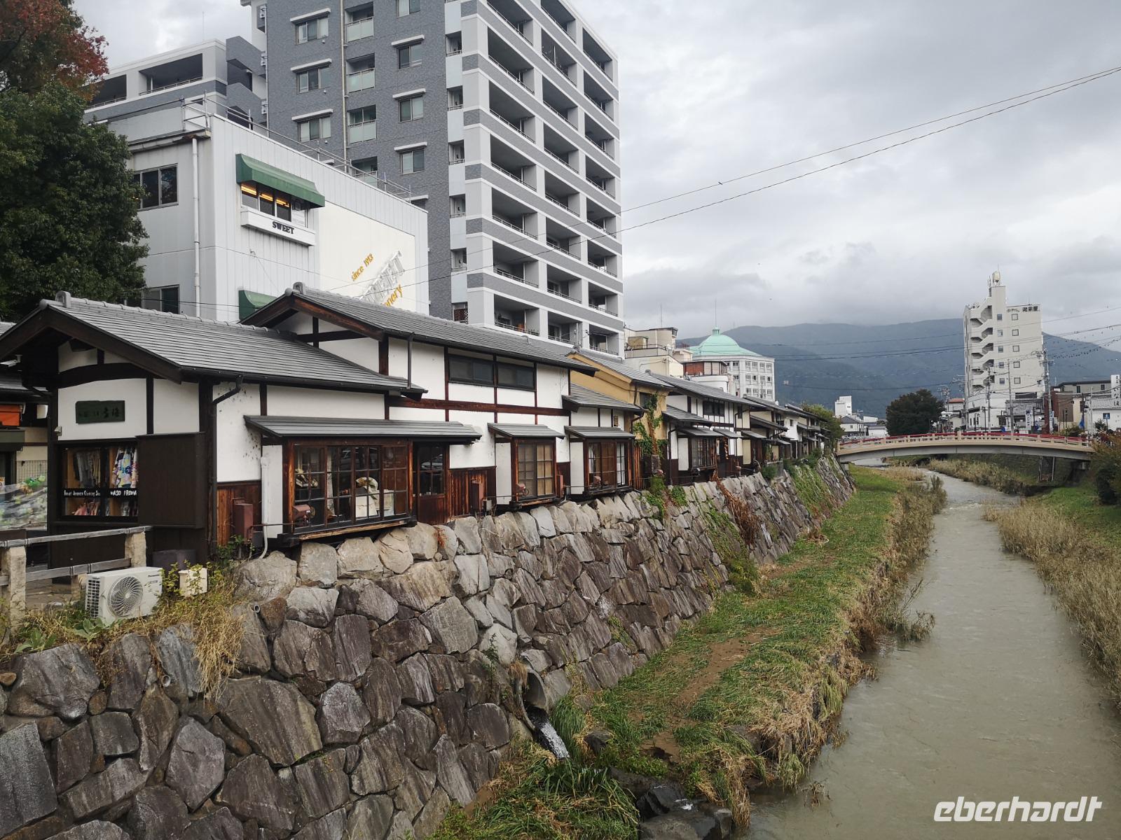 Wir verlassen die Fuji-Region, unser Gepäck um ein paar Flaschen Wein und Süßwaren schwerer, und reisen nach Matsumoto weiter. In dieser alten Stadt legen wir heute unsere Mittagspause ein. Die Zeit reicht, um ein paar schöne Fotos der hiesigen Burg zu machen, und in einem der vielen Restaurants und Cafés ein kleines Mittagsessen einzunehmen bevor es nun schließlich in Richtung Takayama weitergeht. Eigentlich wollten wir heute in unserem Hotel in den Bergen vor Takayama in westlichen Zimmern schlafen - da wir aber am gestrigen Tag unser geplantes Ryokan gegen ein westliches Hotel tauschen mussten konnten wir das Hotel überreden, uns doch in die traditionellen japanischen Zimmer zu buchen. An der Zimmertür gilt es bereits: Schuhe aus. Für den Hotelbereich stehen schlappen bereit, das mit Tatami-Matten ausgelegte Zimmer darf allerdings nur barfuß oder mit Socken betreten werden. Unsere Futons sind bereits auf dem Boden zurechtgemacht und eine Dame des Hotels hilft einigen von uns bei der Auswahl und dem Anlegen des passenden Yukatan.