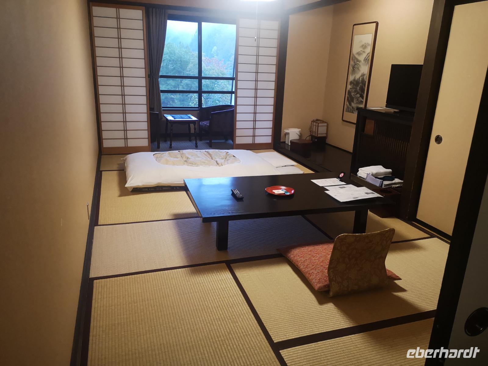 Auch unser neues Hotel fährt zum Abendessen mit einem klassisch-japanischen Essen auf und hat neben allen Annehmlichkeiten eines westlichen Hotels auch ein Onsen zu bieten, dass nach dem Abendessen rege von unserer Gruppe genutzt wird.