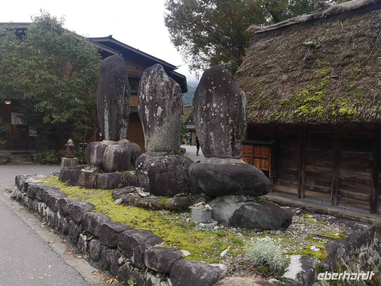Schließlich erreichen wir Shirakawago und unsere Reiseleiterin Isa führt uns durch die kleinen Straßen des Dorfes. Eines der Häuser steht uns auch zur Innenbesichtigung offen, so können wir sehen, wie die Japaner traditonell gelebt haben, bevor wir noch selbst etwas freie Zeit haben, um das malerische Dorf nach Lust und Laune zu erkunden und zu fotografieren. Wir kehren zur Mittagszeit nach Takayama zurück und nehmen uns im Bus die Zeit, zwei Sorten des japanischen Sake zu probieren. Isa erklärt den Herstellungsprozess und woran man die Qualität des japanischen Reisweines unterscheiden kann.