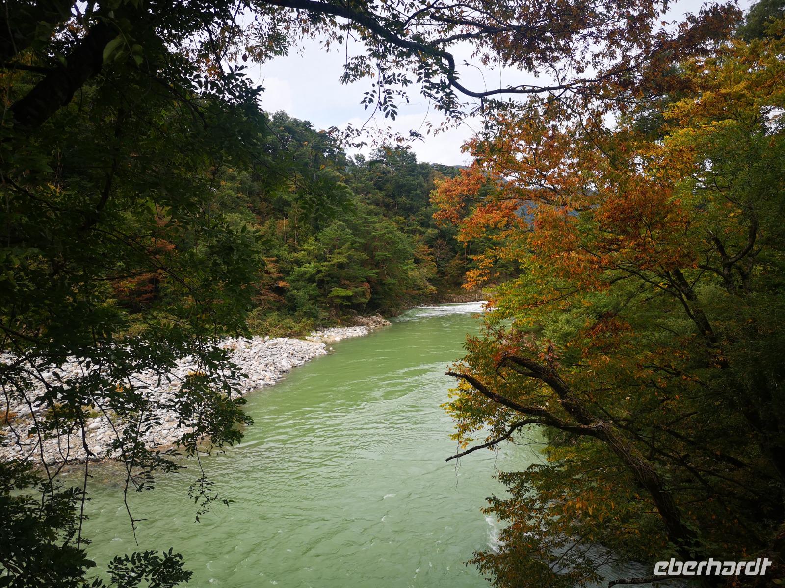 Wir treffen uns, fast alle nun in traditoneller japanischer Kleidung, zum Abendessen im Hotelrestaurant um hier erneut ein typisch-japanisches Menü zu genießen. Nachdem Essen zieht es einige noch in das Onsen - und von dem gibt es mehr als eines in unserem Hotel. Neben den Innenbädern, getrennt für Männer und Frauen, kann man neben dem Hotel auch zu einem hübschen Außenbad am Fluß fahren. Mit dem etwas wackeligen Luft geht es hinunter, ein eigenes Bad für die Damen, und eines, was sich Männer und Frauen in diesem Ryokan auch teilen dürfen. Im heißen Wasser lässt es sich trotz anhaltendem Nieselregen wunderbar entspannen.