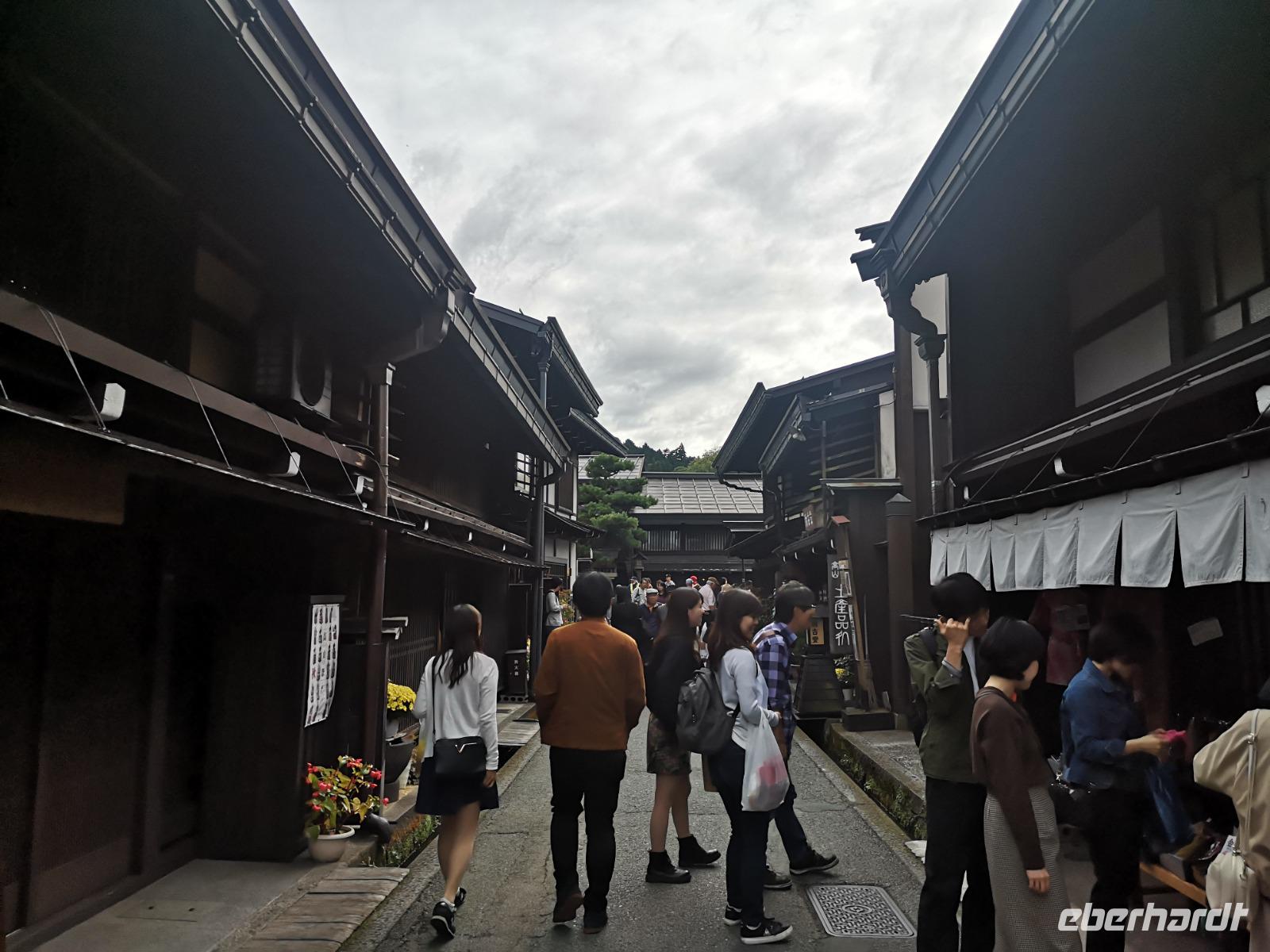 Wir erreichen Takayama und verabschieden uns von unserem Fahrer, der uns die letzten Tage sicher durch Japans Landschaft gefahren hat. Unser Gepäck wird im Hotel verstaut und wir brechen auf um Takayamas Altstadt zu erkunden. Die kleinen Holzhäuser die hier die Gassen säumen zeigen wie Japan zu früheren Zeiten aussah - die zahlreichen Geschäfte die Sake, Töpferwaren und Souveniere vertreiben sind heute in diesen Häusern untergebracht. Nach unserer Mittagspause treffen wir uns erneut, um Takayamas ehemaligen Gouvanörspalast, das Jinya, zu besuchen.