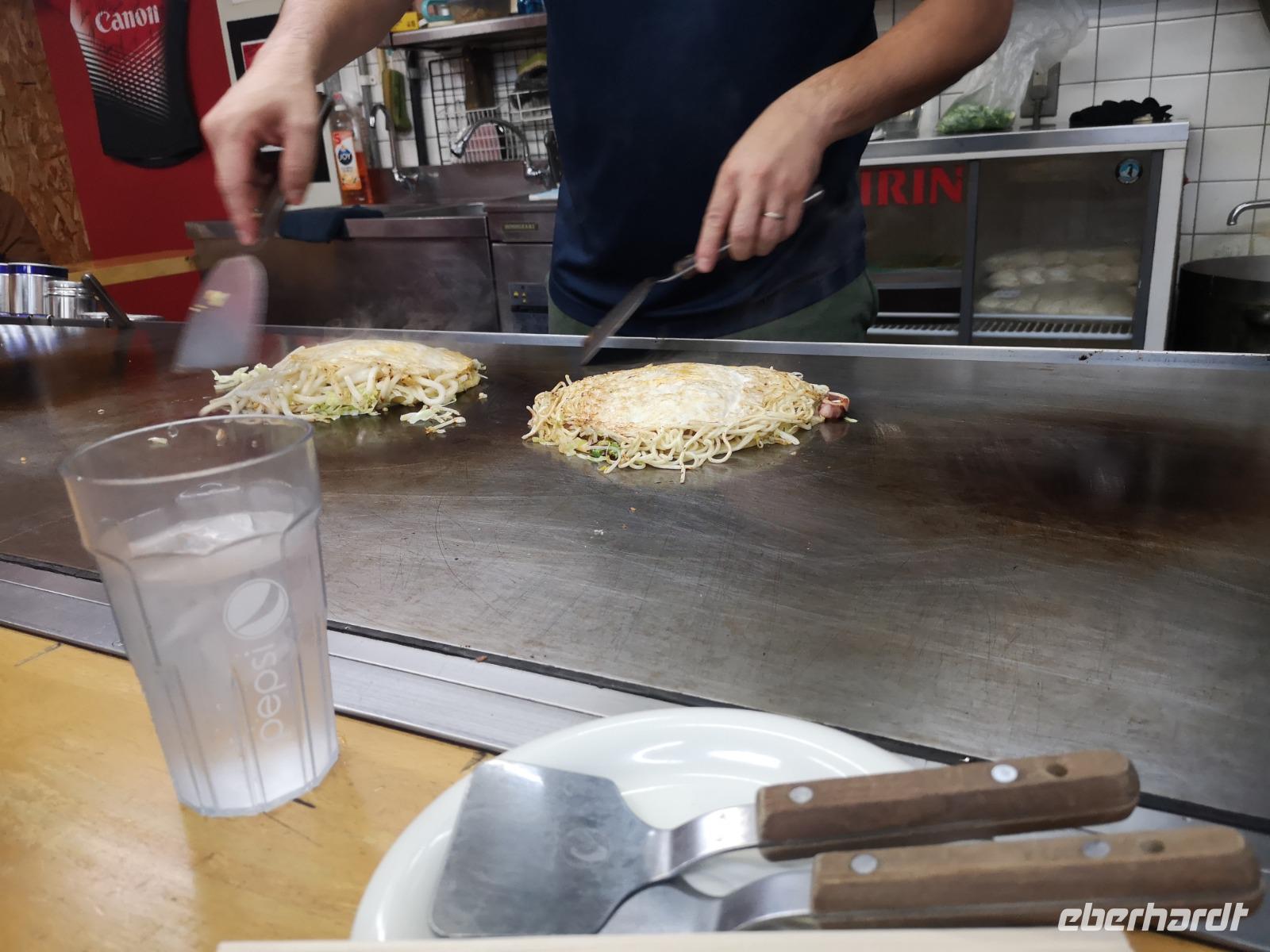Am späten Nachmittag verlassen wir Himeji und reisen weiter nach Hiroshima, erneut im Shinkansen. Zum Abendessen gibt es Okonomiyaki - ein traditionelles japanisches Streetfood, welches auch gern japanische Pizza genannt wird. Wir verteilen uns in verschiedenen kleinen Lokalen, sitzen zwischen Einheimischen und anderen Touristen, und schauen den Köchen bei der Zubereitung dieser Spezialität zu.