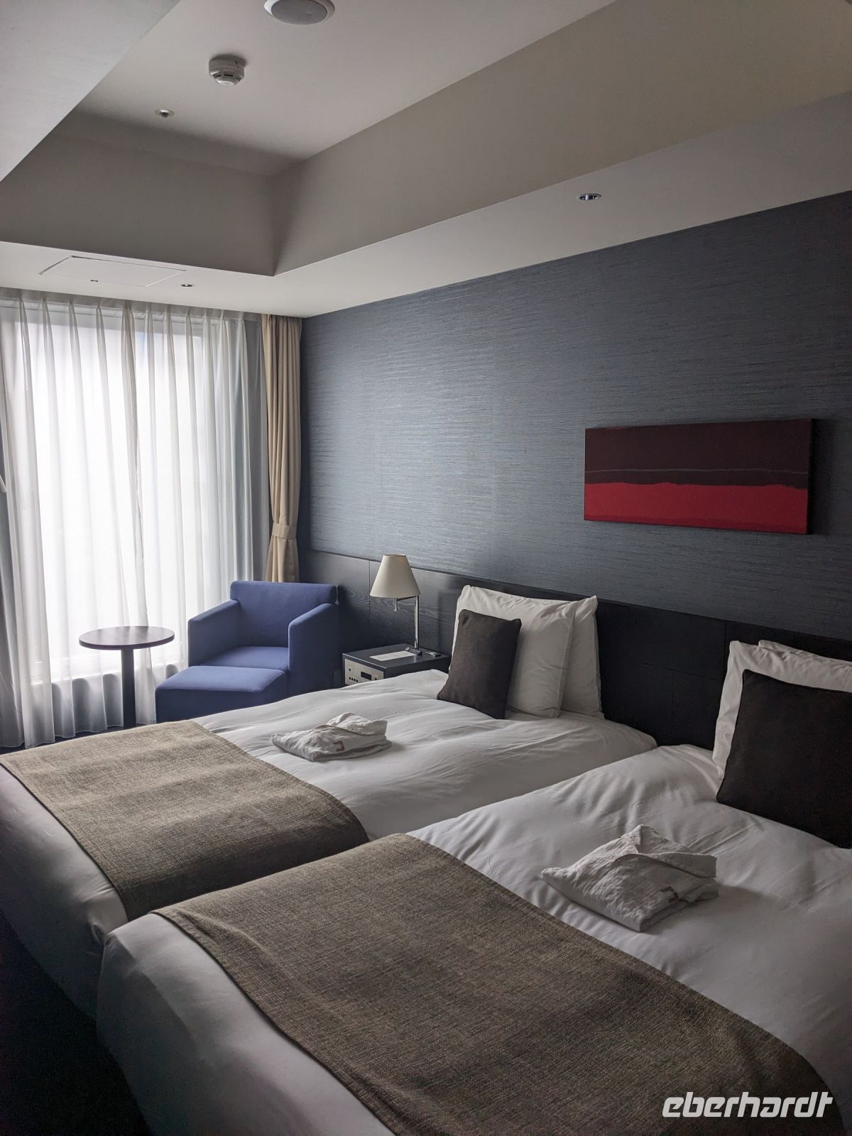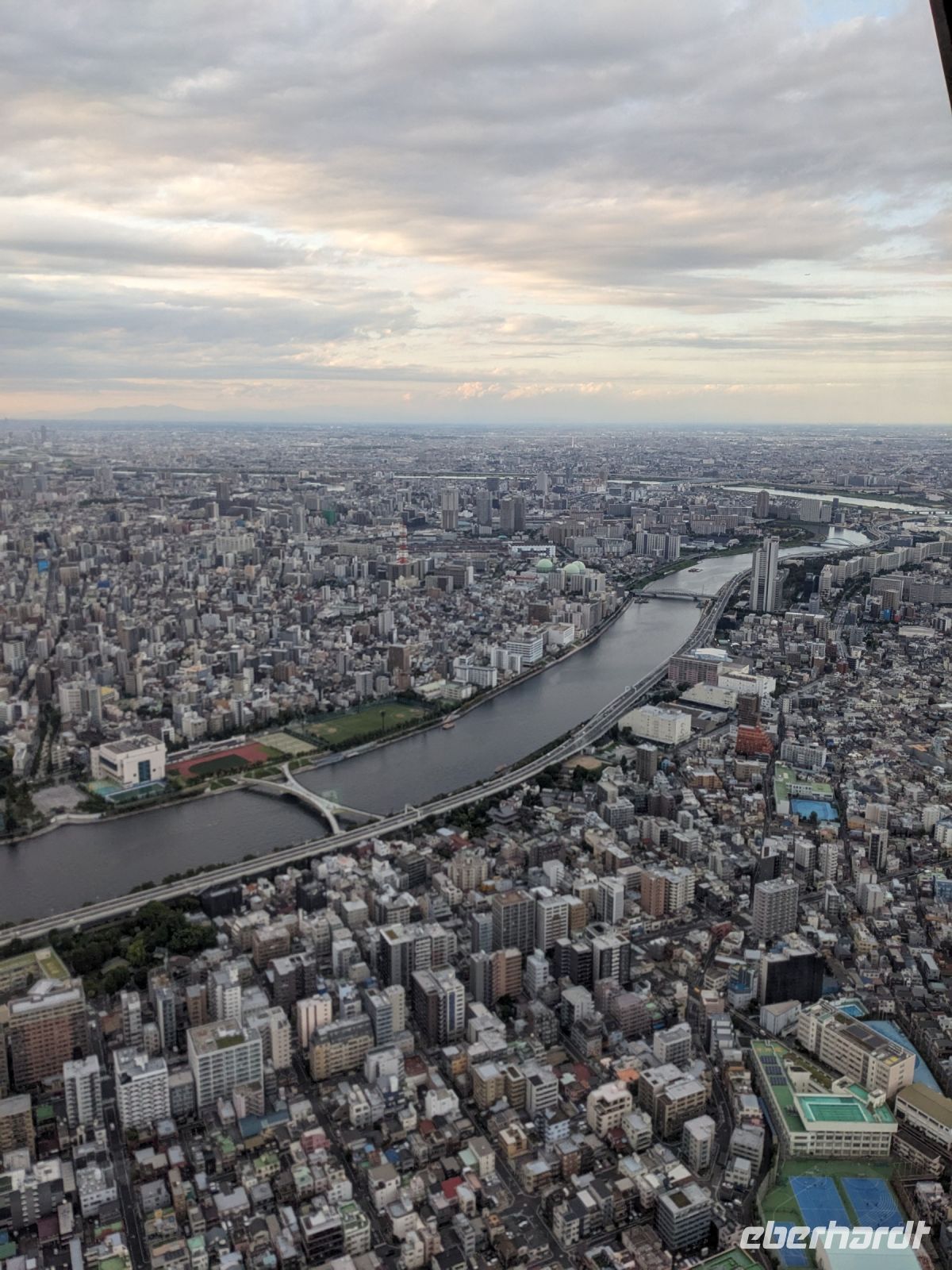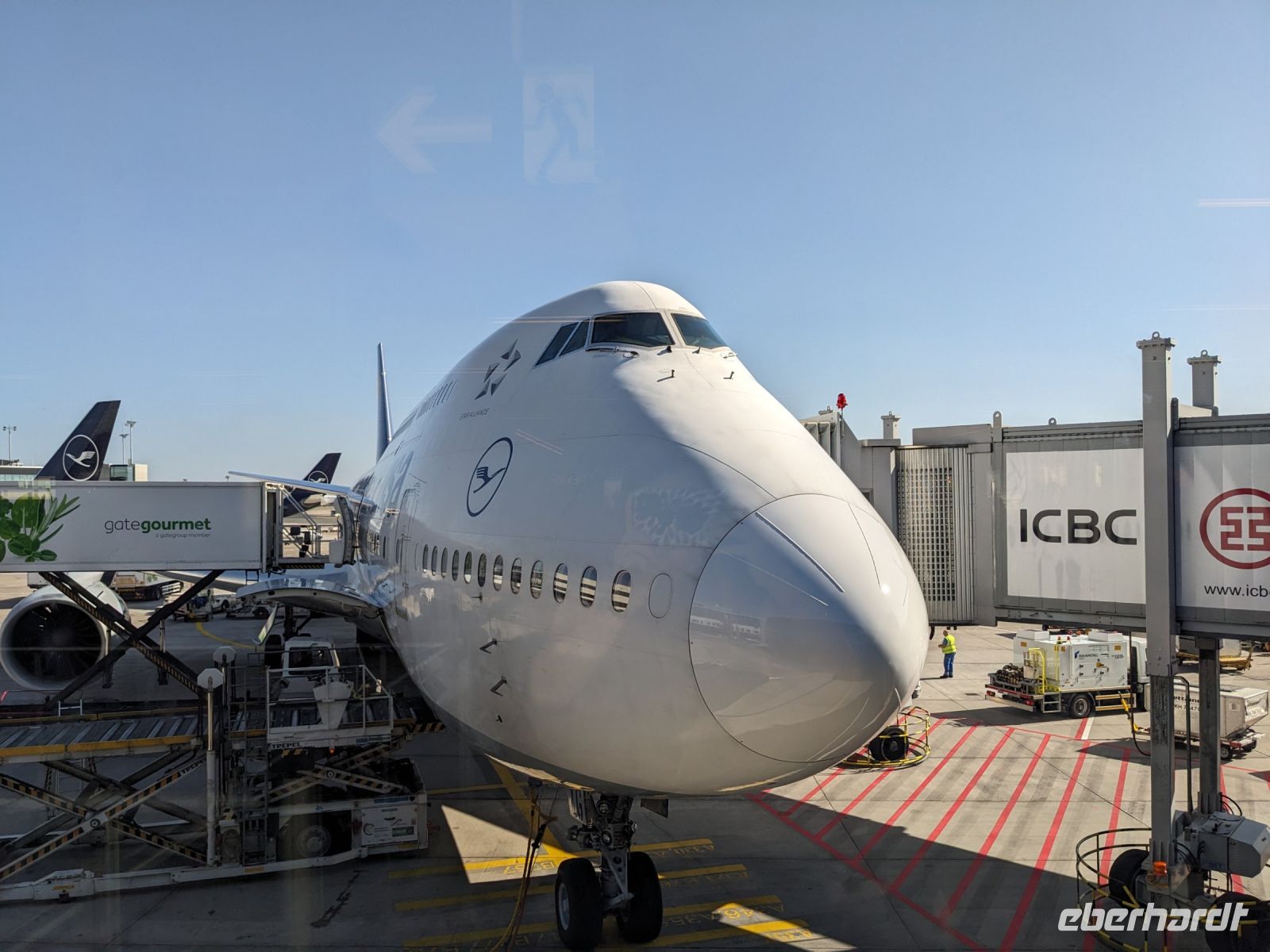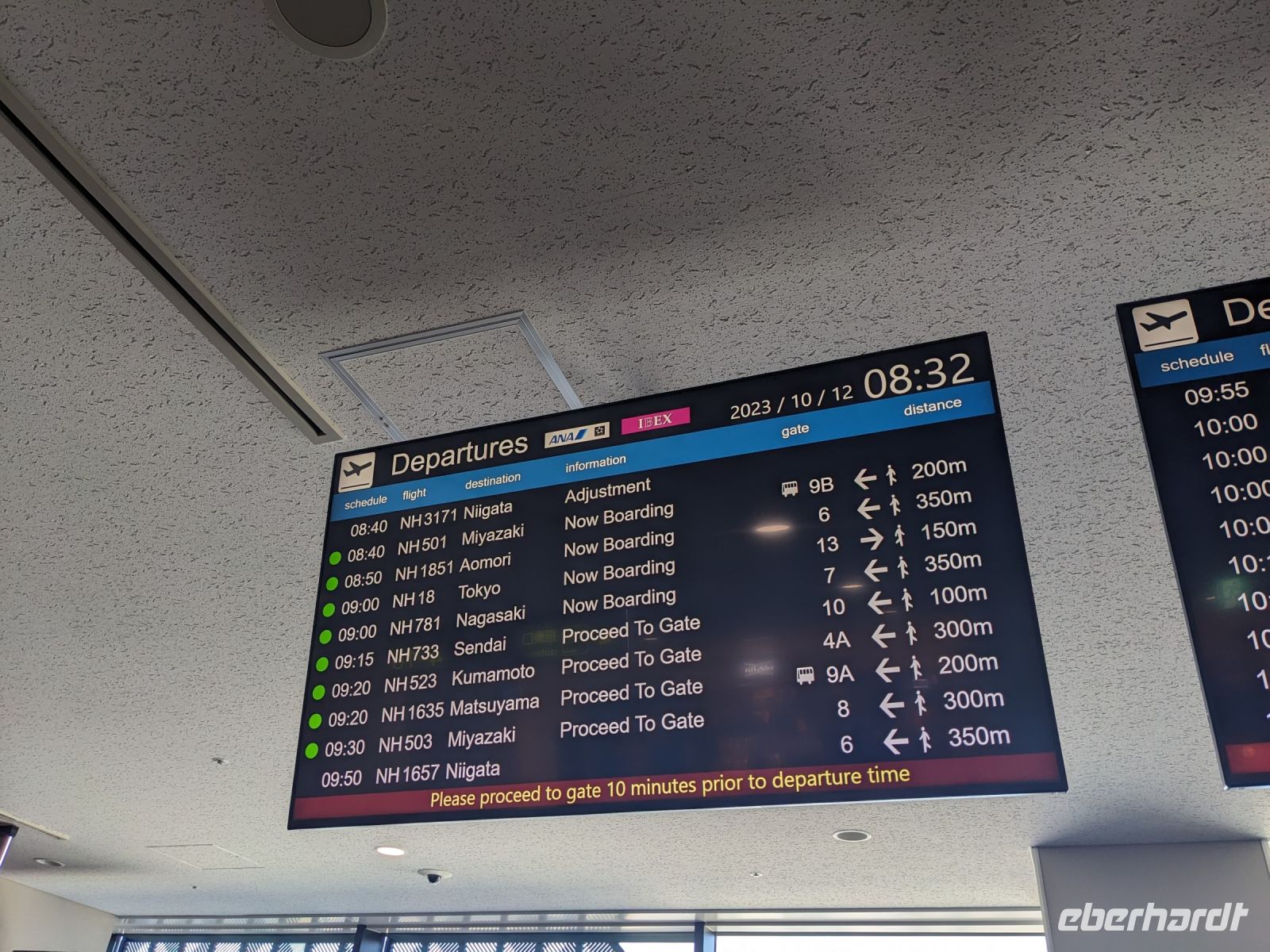 Ob über Berlin, Dresden oder Leipzig - alle Wege führten schließlich nach Frankfurt. Mit meiner blauen Eberhardt-Jacke versuchte ich mich möglichst geschickt am Gate zu platzieren. Das hat auch mehr oder weniger gut funktioniert und letzten Endes haben wir uns auch alle gefunden. Erste Gespräche kamen auf und bei einer kleinen Vorstellungsrunde wurden wir miteinander vertraut. Nach einigen anfänglichen Problemen des Fliegers ging es zwar verspätet los, doch unser Pilot konnte auf dem Flug wieder etwas Zeit herausholen. Über das Bordprogramm gab es diverse Filme, Musik und Spiele, mit denen man sich die Zeit vertreiben konnte. Über Hunger mussten wir nicht klagen - hier hat die Lufthansa uns gut versorgt und so kamen wir, aufgrund der Zeitverschiebung, am Folgetag schließlich in Tokio an. Unsere Rundreise konnte beginnen!