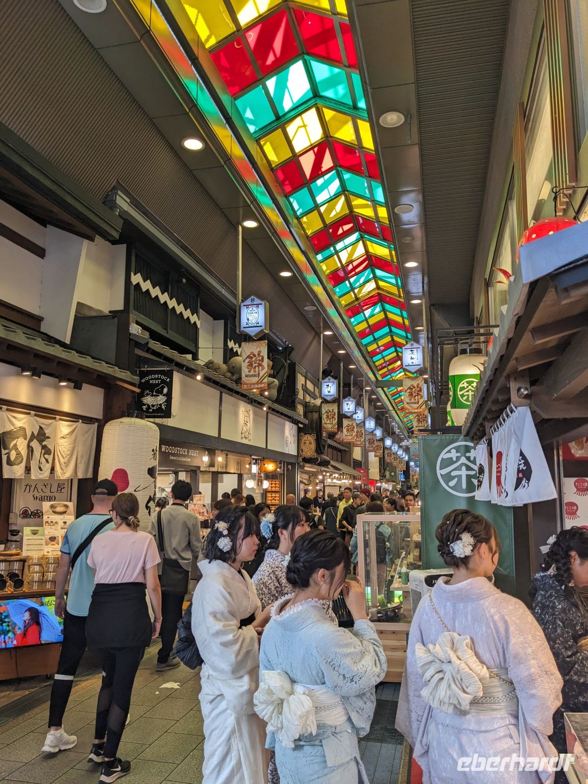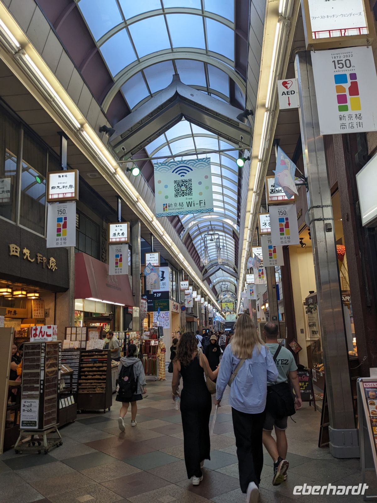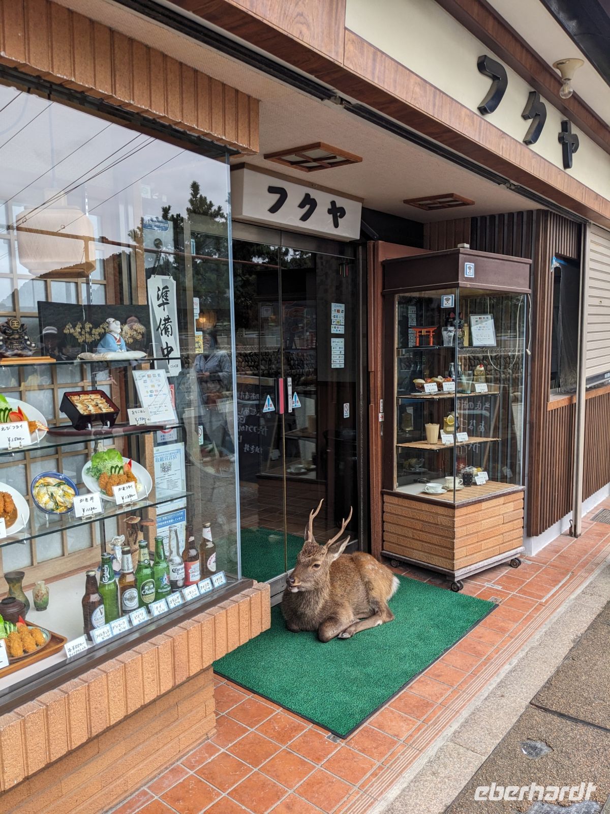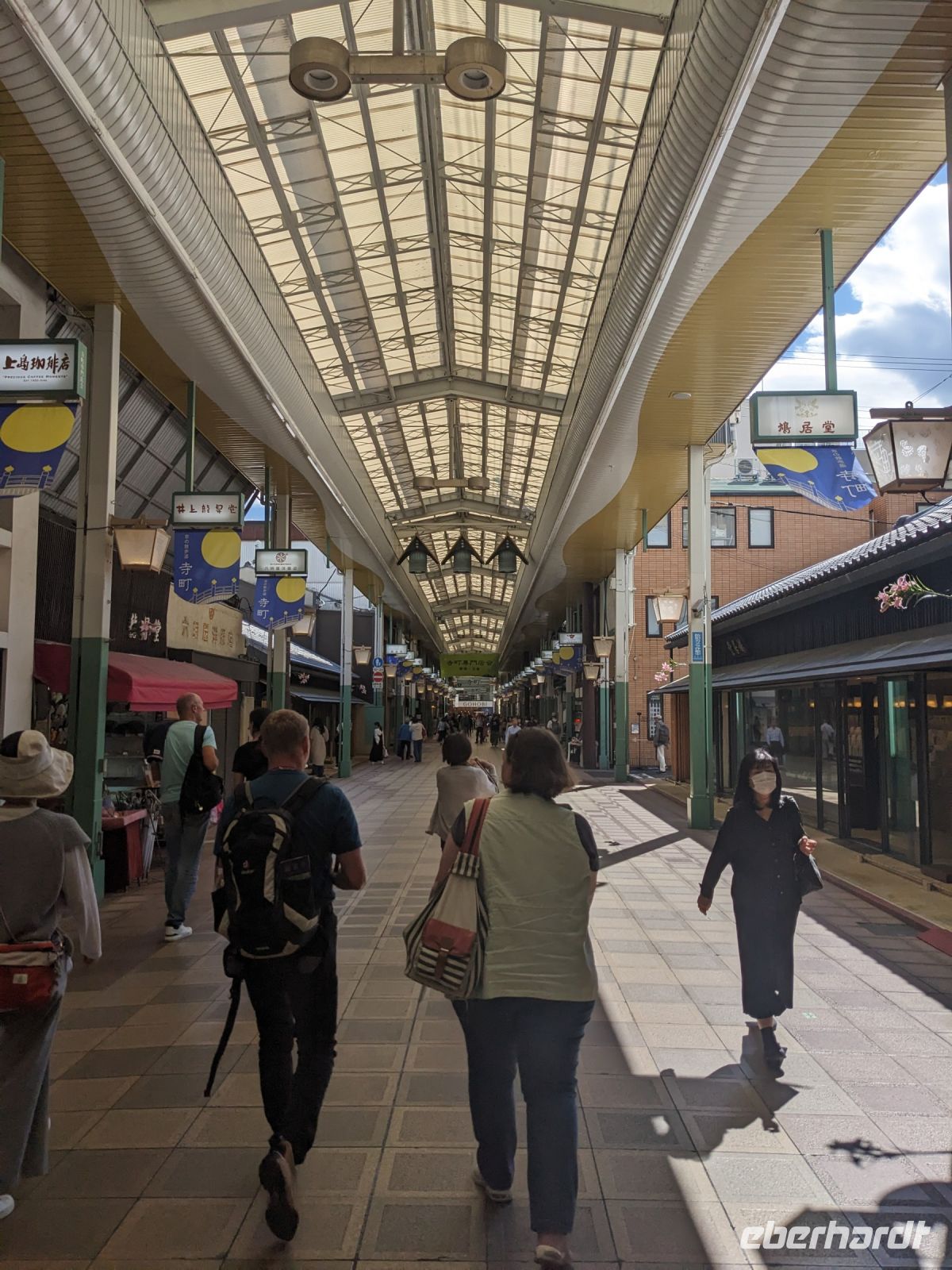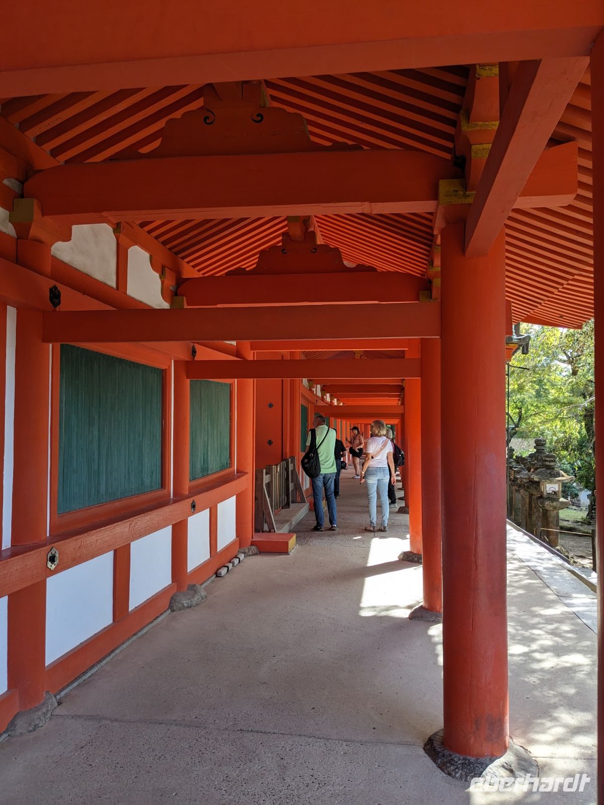 Unser letzter Ausflugstag barg nochmal ein ganz besonderes Highlight: das UNESCO-Dörfchen Nara, unweit von Kyoto. Mit dem Zug und Taxis erreichten wir das Gelände und wurden sogleich von den zahmen und teilweise sogar zudringlichen tierischen Bewohnern begrüßt. Von Scheu war hier keine Spur und die süßen Rehe hielten gespannt Ausschau, ob wir nicht doch irgendwo etwas zu essen dabei hätten. Es machte Spaß die Vierbeiner zu beobachten, doch nachdem wir alle mit den Taxis eingetroffen waren, machten wir uns sogleich auf den Weg die größte bronzene Buddhastatue der Welt zu bestaunen, welche sich zudem in dem größten Holzgebäude der Welt befand - also gleich doppelt beeindruckend. Hier wurde gerade ein großes Fest vorbereitet, welches das Jubiläum der Anlage zelebrieren sollte. In der Halle angekommen, sahen wir die gigantischen Ausmaße der Statue und legten einen kleinen Rundgang ein. Am hinteren Ende des Raumes befand sich eine Säule, durch die ein Loch geschlagen war. Viele Leute, vor allem Schüler, standen an, um sich durch dieses Loch hindurchziehen zu lassen - Schnappschüsse durften hier natürlich auch nicht fehlen. Etwas skurril, aber laut Masayo sollte dies den Teilnehmenden Glück bringen. Anschließend spazierten wir weiter durch den Park und legten schließlich eine Mittagspause ein. Dabei ging ein Teil der Gruppe mit Masayo und probierte eine landestypische Nudelsuppe, während ich mit dem zweiten Teil Quiche sowie Kuchen in einem naheliegenden Restaurant aß. Beide Gruppen waren sehr zufrieden und gestärkt machten wir uns dann gemeinsam auf den Weg zum Kasugataisha-Schrein. Von dort liefen wir zum Parkplatz, wo sich viele bei dem schönen Wetter noch ein Eis holten und wir dann den Bus zum Bahnhof nahmen. Es ging zurück nach Kyoto. Nach einer kurzen Pause am Hotel fuhren wir zu unserem letzten gemeinsamen Abendessen in ein Restaurant, was beinahe einem Labyrinth glich, so verwinkelt war es. Aber trotz der Irrgänge fand das leckere Essen irgendwann schließlich zu uns und wir kamen nochmals in den Genuss einiger japanischen Köstlichkeiten. Ich nutzte die entspannte Atmosphäre für ein paar dankende Worte an Masayo und die Übergabe eines kleinen Geschenks im Namen von Eberhardt TRAVEL, womit meine liebe Gruppe hoffentlich Zuhause fleißig übt, sodass alle für die nächste Reise in den asiatischen Raum gewappnet sind. Zurück im Hotel hieß es erstmal packen und dann schnell ins Bett - schließlich mussten wir am nächsten Morgen früh raus...