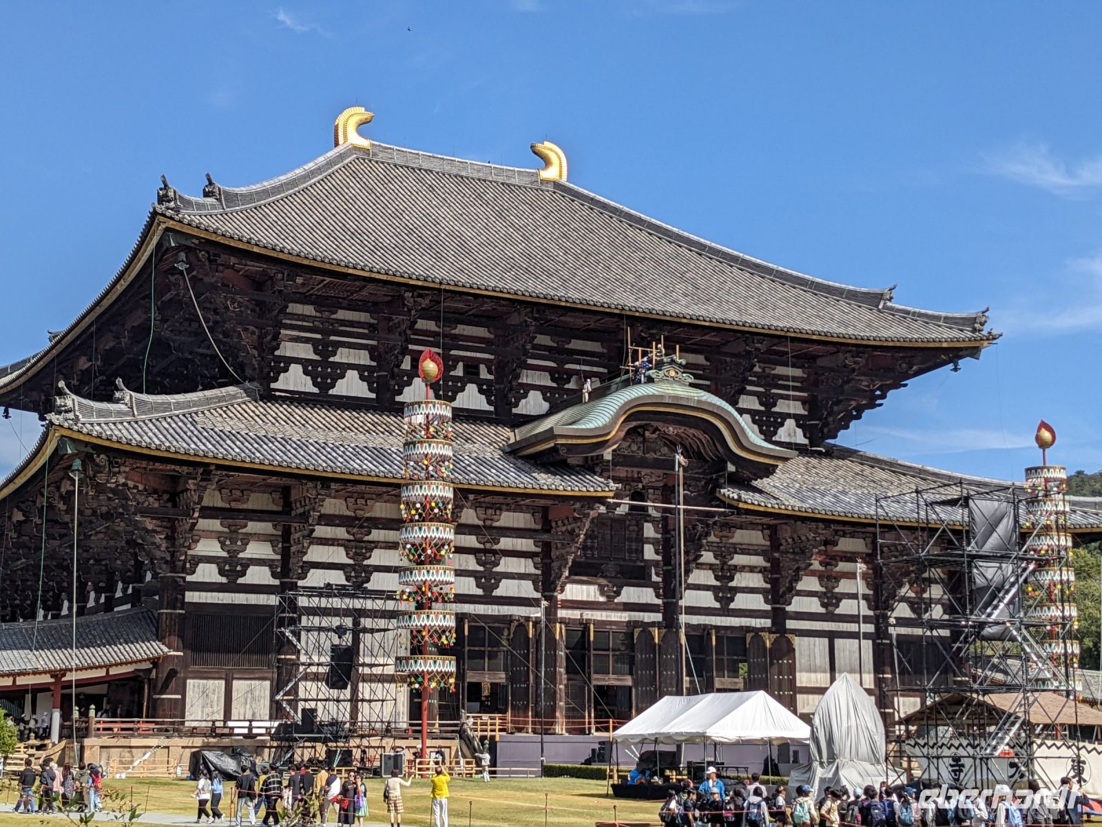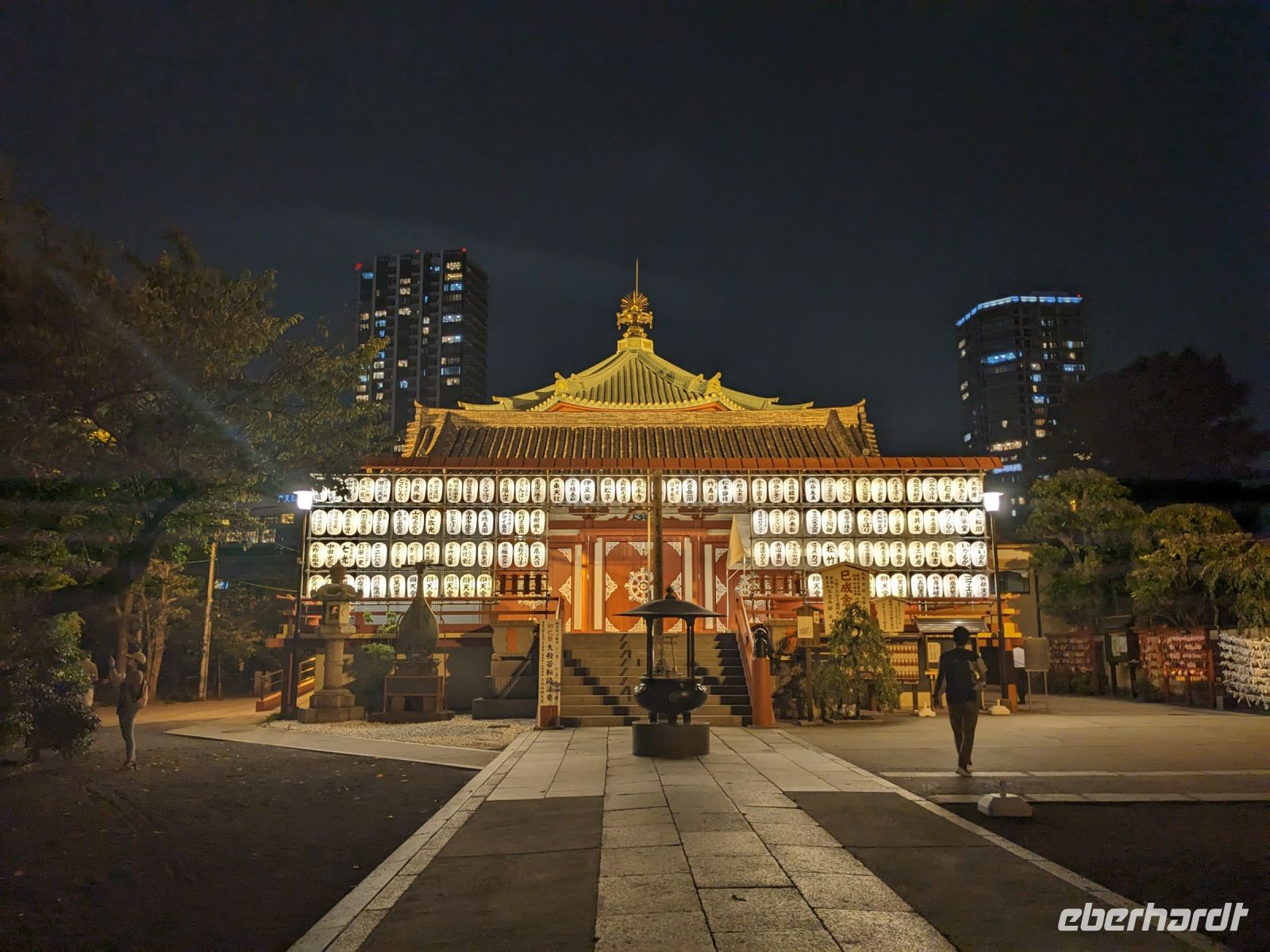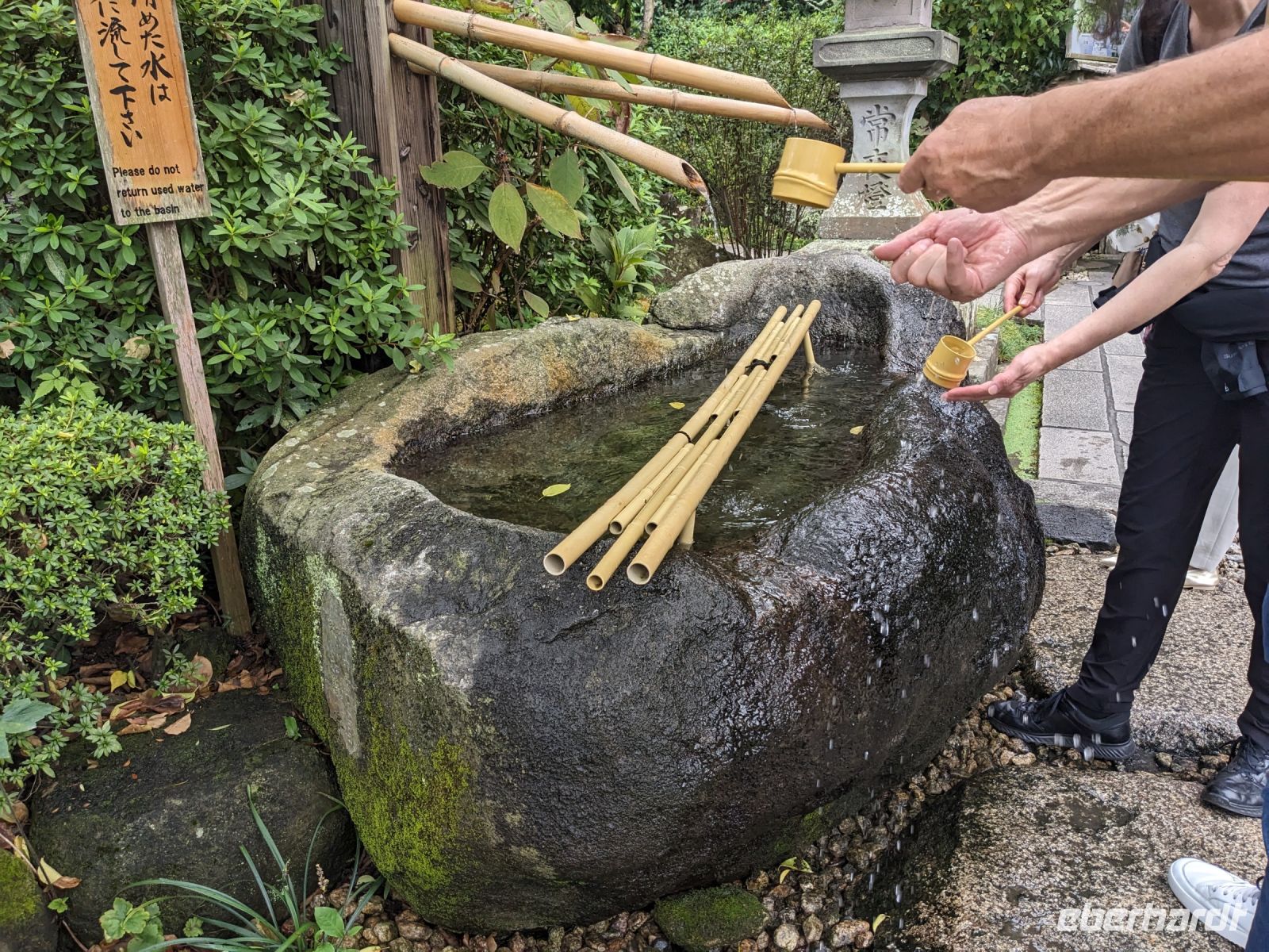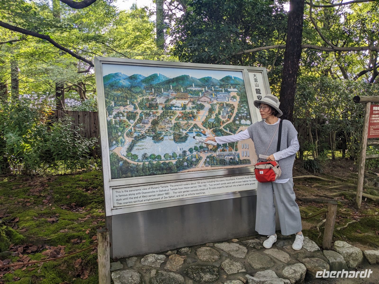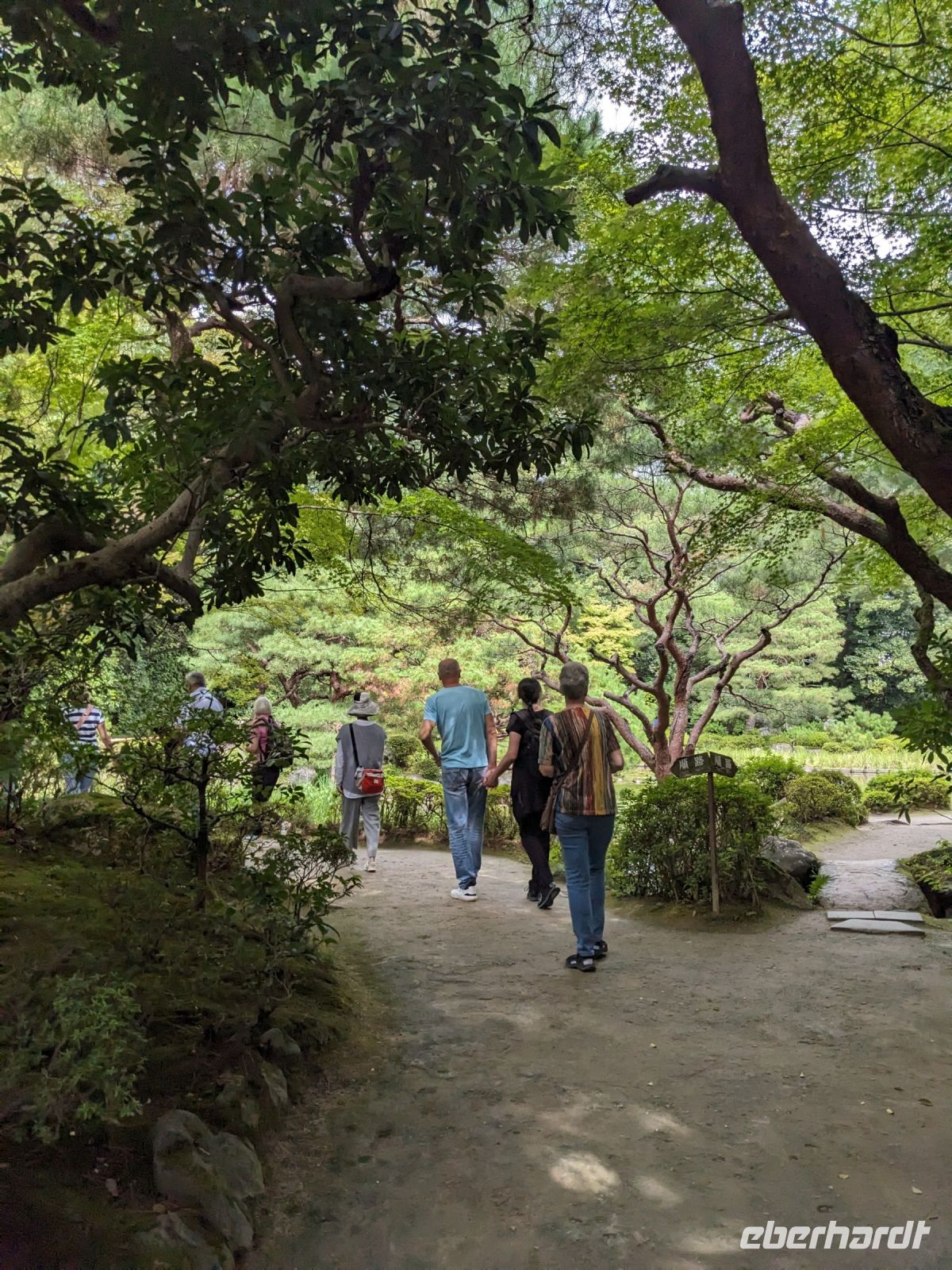 Unser letzter Ausflugstag barg nochmal ein ganz besonderes Highlight: das UNESCO-Dörfchen Nara, unweit von Kyoto. Mit dem Zug und Taxis erreichten wir das Gelände und wurden sogleich von den zahmen und teilweise sogar zudringlichen tierischen Bewohnern begrüßt. Von Scheu war hier keine Spur und die süßen Rehe hielten gespannt Ausschau, ob wir nicht doch irgendwo etwas zu essen dabei hätten. Es machte Spaß die Vierbeiner zu beobachten, doch nachdem wir alle mit den Taxis eingetroffen waren, machten wir uns sogleich auf den Weg die größte bronzene Buddhastatue der Welt zu bestaunen, welche sich zudem in dem größten Holzgebäude der Welt befand - also gleich doppelt beeindruckend. Hier wurde gerade ein großes Fest vorbereitet, welches das Jubiläum der Anlage zelebrieren sollte. In der Halle angekommen, sahen wir die gigantischen Ausmaße der Statue und legten einen kleinen Rundgang ein. Am hinteren Ende des Raumes befand sich eine Säule, durch die ein Loch geschlagen war. Viele Leute, vor allem Schüler, standen an, um sich durch dieses Loch hindurchziehen zu lassen - Schnappschüsse durften hier natürlich auch nicht fehlen. Etwas skurril, aber laut Masayo sollte dies den Teilnehmenden Glück bringen. Anschließend spazierten wir weiter durch den Park und legten schließlich eine Mittagspause ein. Dabei ging ein Teil der Gruppe mit Masayo und probierte eine landestypische Nudelsuppe, während ich mit dem zweiten Teil Quiche sowie Kuchen in einem naheliegenden Restaurant aß. Beide Gruppen waren sehr zufrieden und gestärkt machten wir uns dann gemeinsam auf den Weg zum Kasugataisha-Schrein. Von dort liefen wir zum Parkplatz, wo sich viele bei dem schönen Wetter noch ein Eis holten und wir dann den Bus zum Bahnhof nahmen. Es ging zurück nach Kyoto. Nach einer kurzen Pause am Hotel fuhren wir zu unserem letzten gemeinsamen Abendessen in ein Restaurant, was beinahe einem Labyrinth glich, so verwinkelt war es. Aber trotz der Irrgänge fand das leckere Essen irgendwann schließlich zu uns und wir kamen nochmals in den Genuss einiger japanischen Köstlichkeiten. Ich nutzte die entspannte Atmosphäre für ein paar dankende Worte an Masayo und die Übergabe eines kleinen Geschenks im Namen von Eberhardt TRAVEL, womit meine liebe Gruppe hoffentlich Zuhause fleißig übt, sodass alle für die nächste Reise in den asiatischen Raum gewappnet sind. Zurück im Hotel hieß es erstmal packen und dann schnell ins Bett - schließlich mussten wir am nächsten Morgen früh raus...