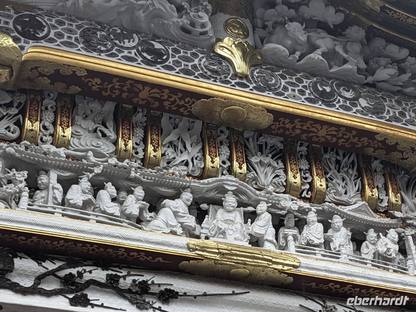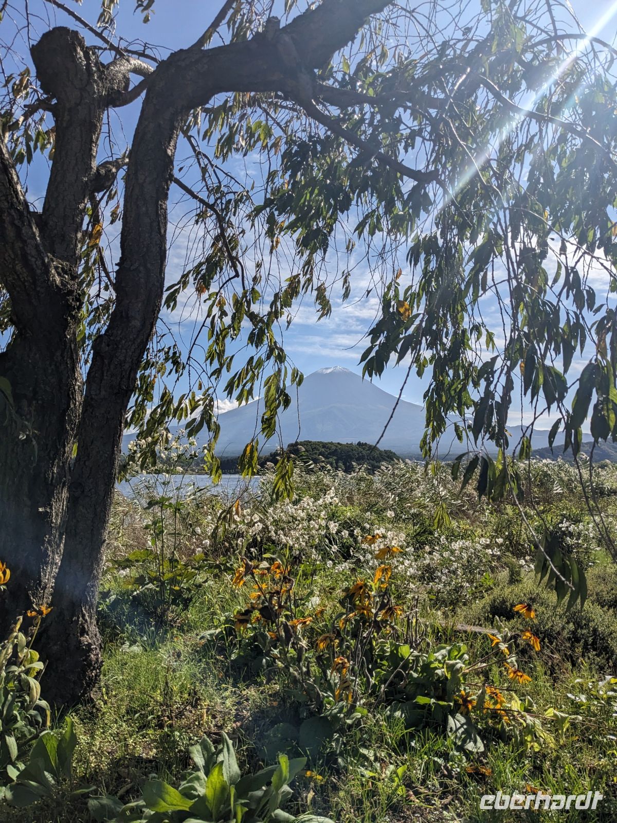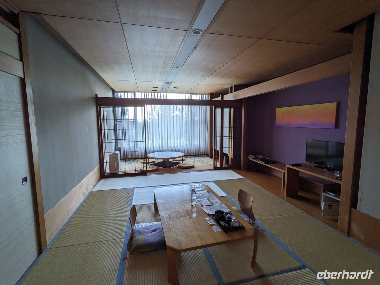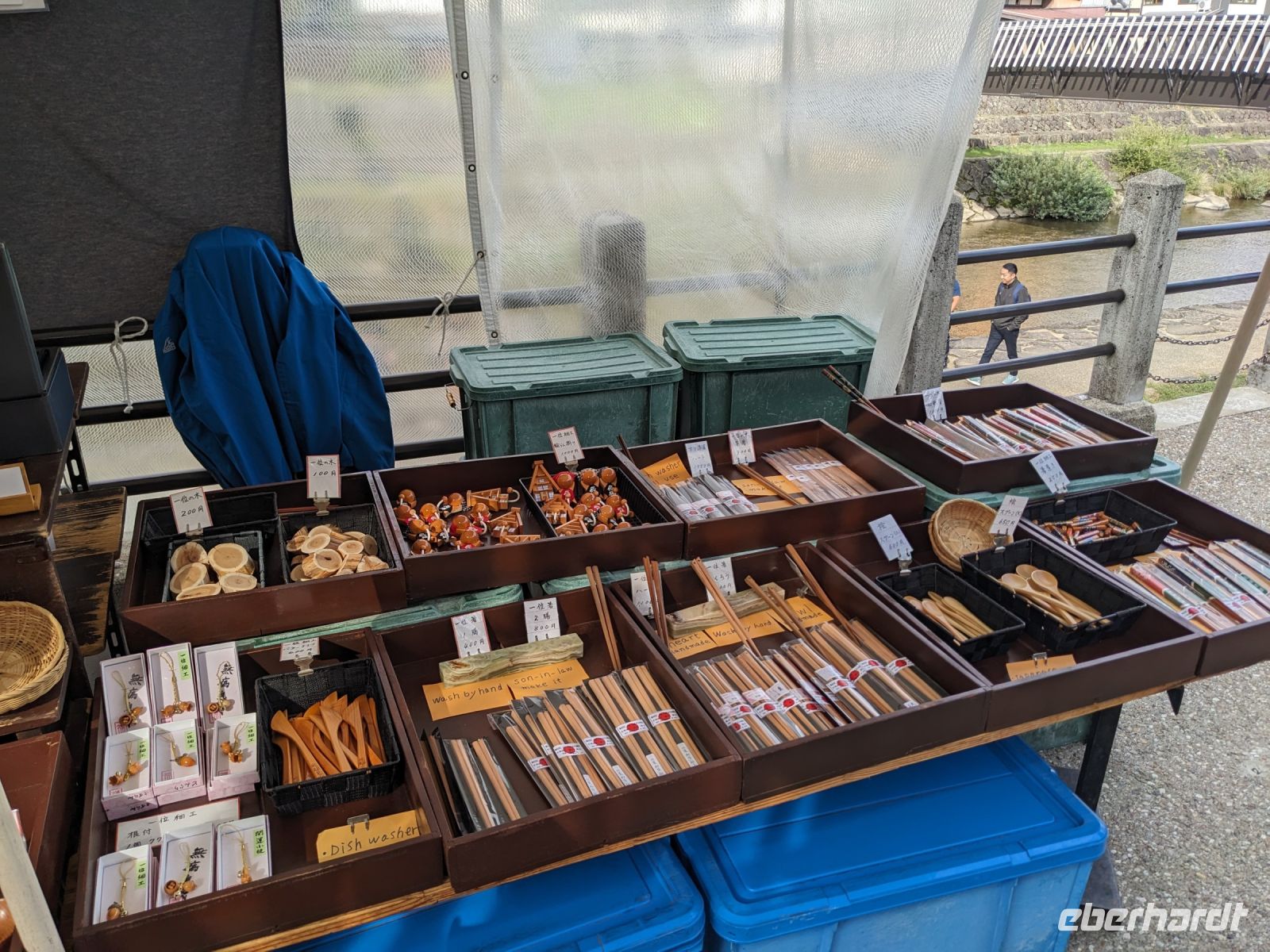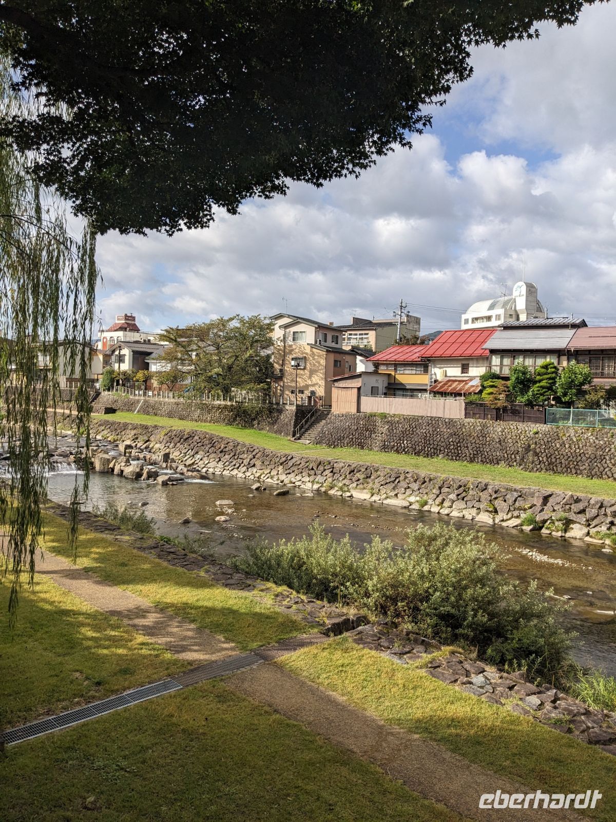 Der heutige Tag stand ganz im Sinne des Mount Fuji. Nach einer eher ungewöhnlicher Frühstücksauswahl am Morgen im Ryokan nahmen wir das Piratenschiff über den Ashi-See zur Seilbahnstation in der Bergregion von Hakone. Dabei erhielten wir bereits wunderbare Blicke auf das beeindruckende Massiv des Fuji. Masayo teilte uns mit, dass so eine gute Sicht für diese Jahreszeit eher ungewöhnlich sei, da solch eine klarer Blick meist nur im Winter zu beobachten wäre. Doch wir hatten Glück und uns wurde wahrlich eine Bilderbuch-Ansicht geboten! Einfach atemberaubend! Angekommen an der Seilbahnstation ging es hoch hinaus und dann sahen wir schon den Dampf und schließlich kam auch der Geruch dazu: Schwefel. Passend dazu wurden an der Verkaufsstelle oben Schwarze Eier, sogenannte Teufelseier, verkauft. Dabei handelt es sich um normale Hühnereier, welche in Schwefel gekocht, ihre dunkle Farbe erhalten. Als Kostprobe kaufte ich meiner Gruppe welche im Namen von Eberhardt TRAVEL. Unser Fazit: Geschmacklich kein Unterschied zu normalen hartgekochten Eiern, aber interessant war es trotzdem, die ungewöhnlichen Eier einmal zu probieren. Mit dem Bus fuhren wir dann durch die wunderschöne Berglandschaft zu einem sagenhaften Aussichtspunkt. Davor legten wir noch einen kurzen Stopp in einem Supermarkt ein, um individuell Snacks für eine Mittagsrast zu holen. Diese genossen wir dann mit Blick auf ein Blütenmeer mit dahinterliegendem See und dem Mount Fuji als krönende Umrandung. Hier bot sich aller paar Meter ein neues Fotomotiv. Die verschiedenen Blumen bewegten sich im Wind, von weiter her vernahm man Kindergesang aus einer Schule, die Sonne strahlte auf uns herab und die Welt schien in dem Moment einfach einmal stillzustehen. Ein leckeres Traubeneis, typisch für die Region, kann ich zudem auf jeden Fall weiterempfehlen. Doch irgendwann drehte die Uhr sich dann doch weiter und es hieß Abschied zu nehmen vom Mount Fuji. Unser Reisebus brachte uns weiter nach Takayama, wo wir in unser Hotel eincheckten und anschließend ein traditionelles Hida Rindfleisch-Abendessen zu uns nahmen.