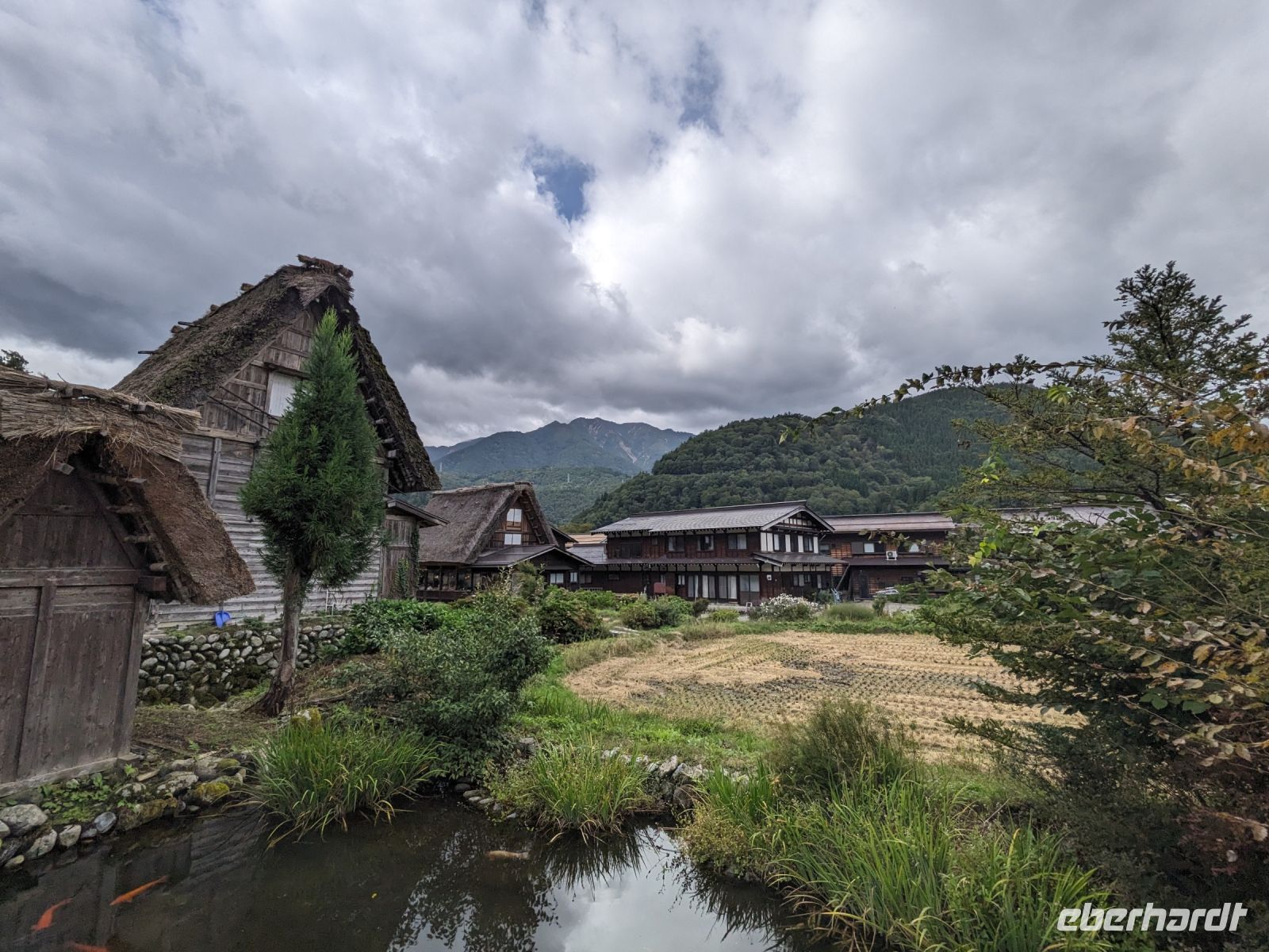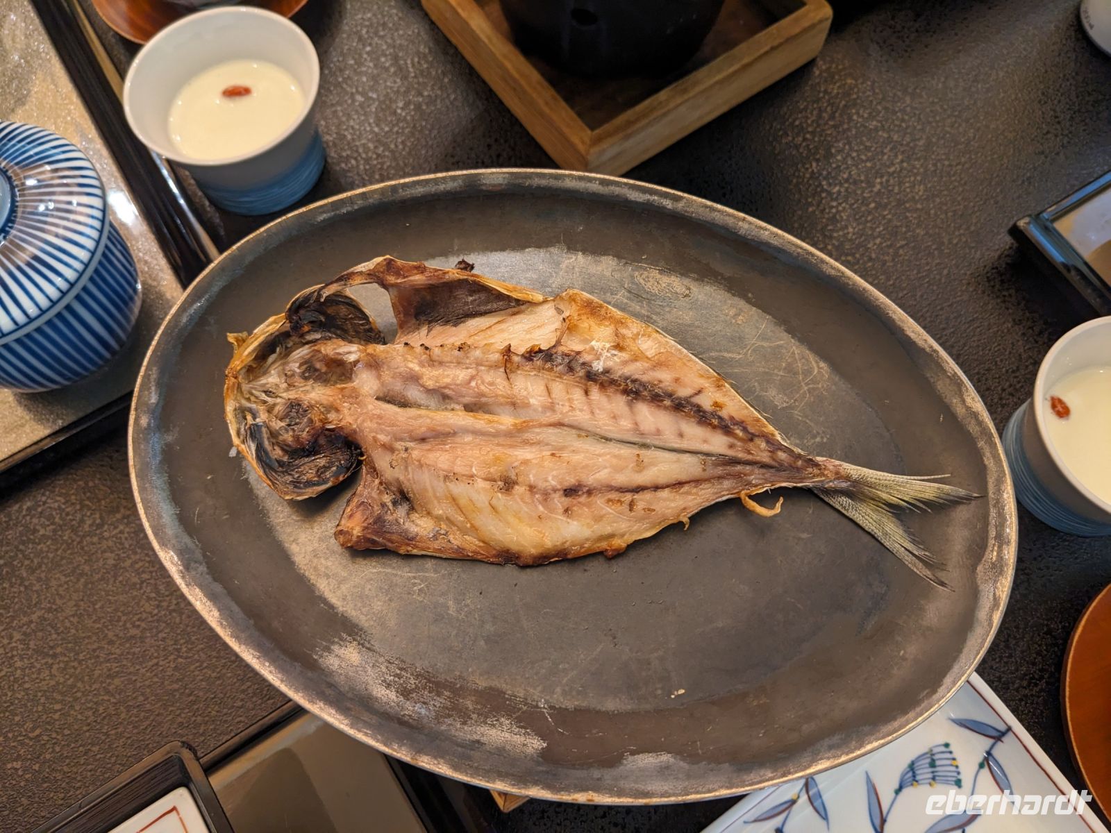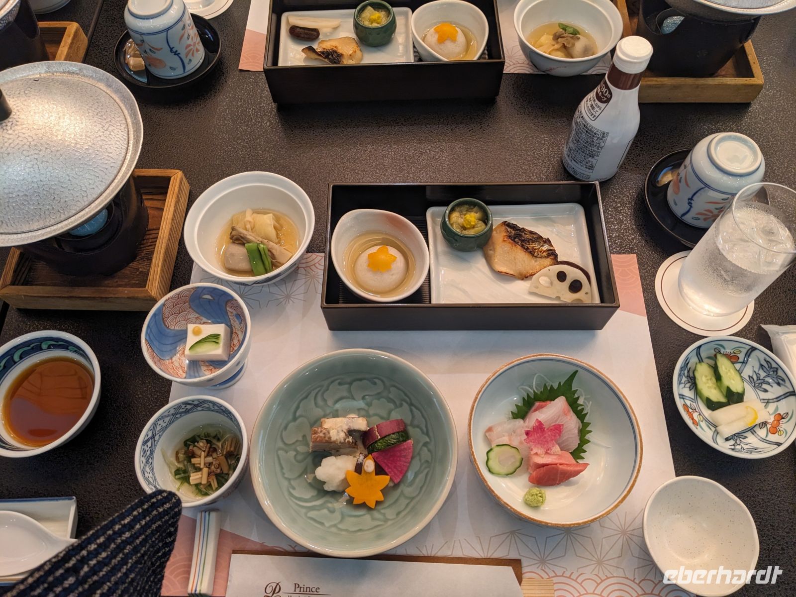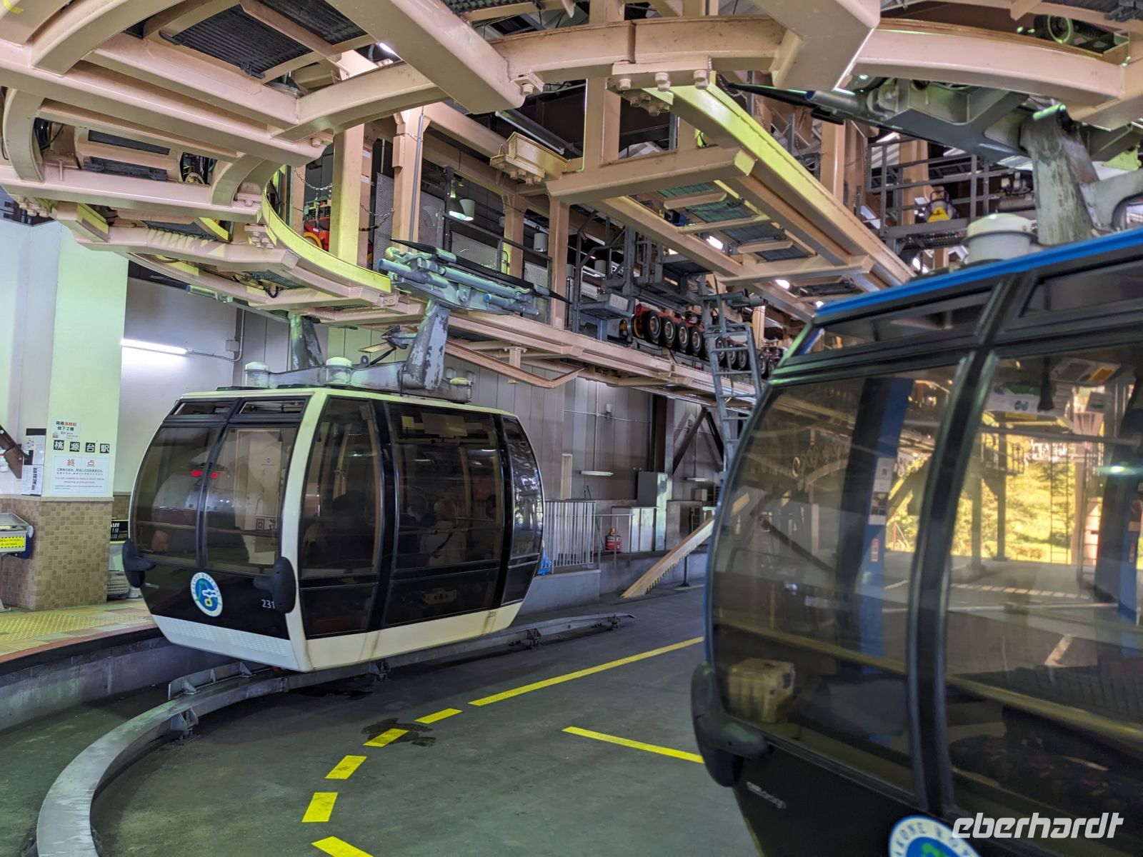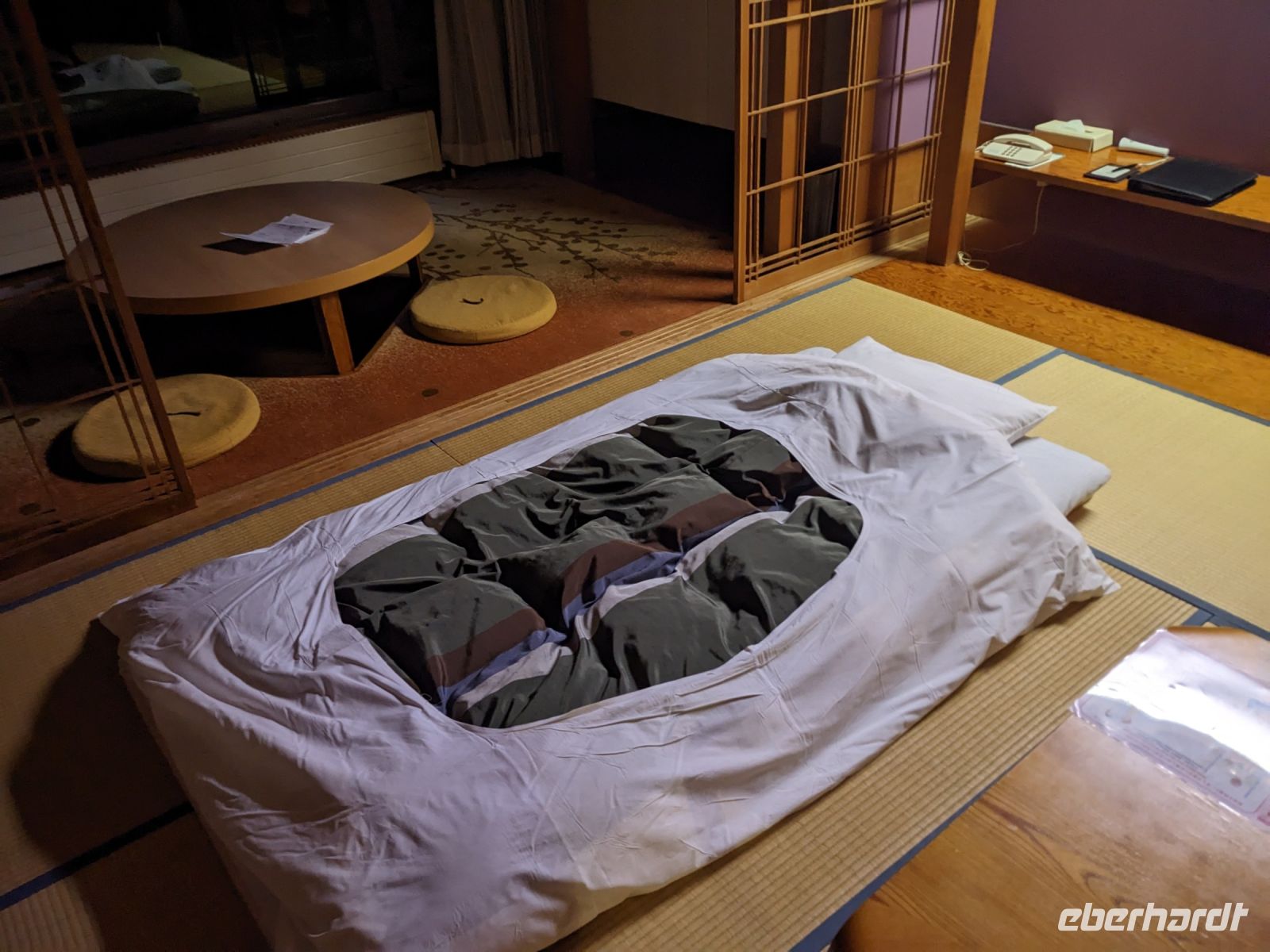 Der heutige Tag stand ganz im Sinne des Mount Fuji. Nach einer eher ungewöhnlicher Frühstücksauswahl am Morgen im Ryokan nahmen wir das Piratenschiff über den Ashi-See zur Seilbahnstation in der Bergregion von Hakone. Dabei erhielten wir bereits wunderbare Blicke auf das beeindruckende Massiv des Fuji. Masayo teilte uns mit, dass so eine gute Sicht für diese Jahreszeit eher ungewöhnlich sei, da solch eine klarer Blick meist nur im Winter zu beobachten wäre. Doch wir hatten Glück und uns wurde wahrlich eine Bilderbuch-Ansicht geboten! Einfach atemberaubend! Angekommen an der Seilbahnstation ging es hoch hinaus und dann sahen wir schon den Dampf und schließlich kam auch der Geruch dazu: Schwefel. Passend dazu wurden an der Verkaufsstelle oben Schwarze Eier, sogenannte Teufelseier, verkauft. Dabei handelt es sich um normale Hühnereier, welche in Schwefel gekocht, ihre dunkle Farbe erhalten. Als Kostprobe kaufte ich meiner Gruppe welche im Namen von Eberhardt TRAVEL. Unser Fazit: Geschmacklich kein Unterschied zu normalen hartgekochten Eiern, aber interessant war es trotzdem, die ungewöhnlichen Eier einmal zu probieren. Mit dem Bus fuhren wir dann durch die wunderschöne Berglandschaft zu einem sagenhaften Aussichtspunkt. Davor legten wir noch einen kurzen Stopp in einem Supermarkt ein, um individuell Snacks für eine Mittagsrast zu holen. Diese genossen wir dann mit Blick auf ein Blütenmeer mit dahinterliegendem See und dem Mount Fuji als krönende Umrandung. Hier bot sich aller paar Meter ein neues Fotomotiv. Die verschiedenen Blumen bewegten sich im Wind, von weiter her vernahm man Kindergesang aus einer Schule, die Sonne strahlte auf uns herab und die Welt schien in dem Moment einfach einmal stillzustehen. Ein leckeres Traubeneis, typisch für die Region, kann ich zudem auf jeden Fall weiterempfehlen. Doch irgendwann drehte die Uhr sich dann doch weiter und es hieß Abschied zu nehmen vom Mount Fuji. Unser Reisebus brachte uns weiter nach Takayama, wo wir in unser Hotel eincheckten und anschließend ein traditionelles Hida Rindfleisch-Abendessen zu uns nahmen.