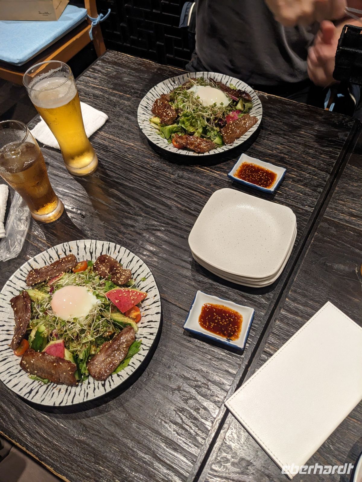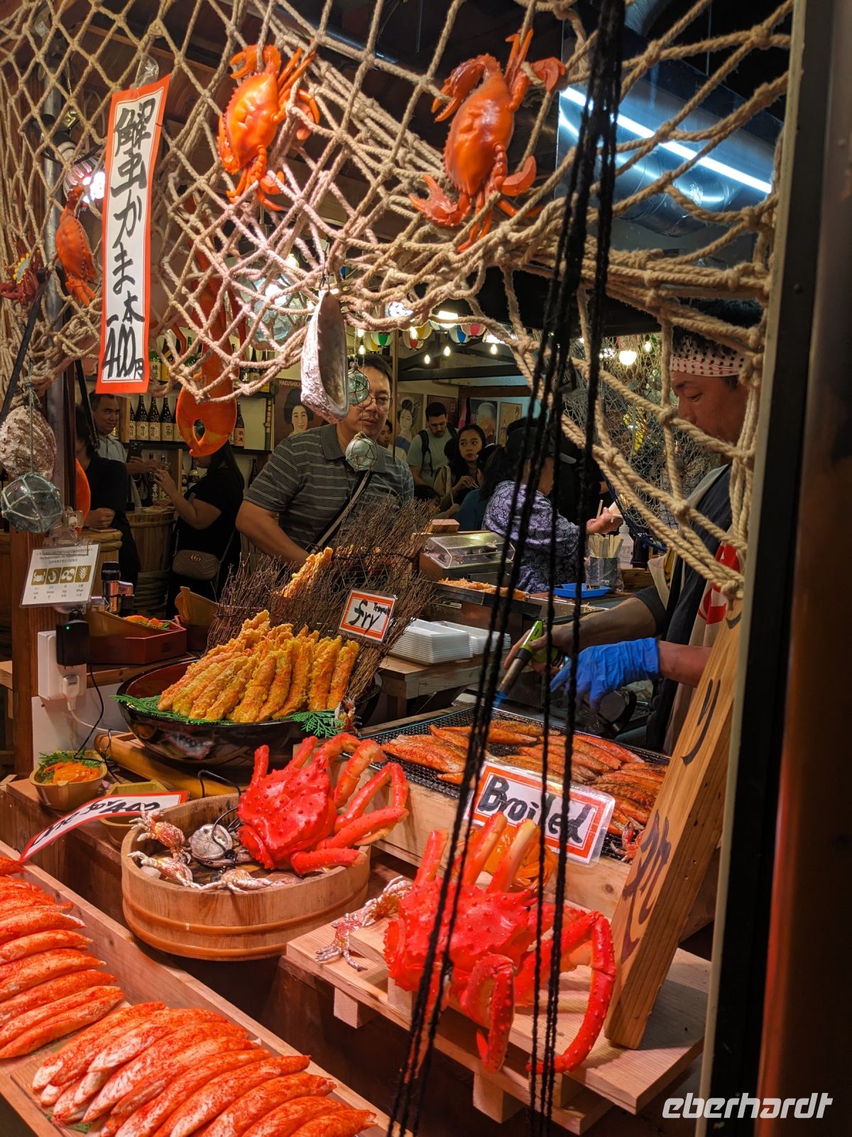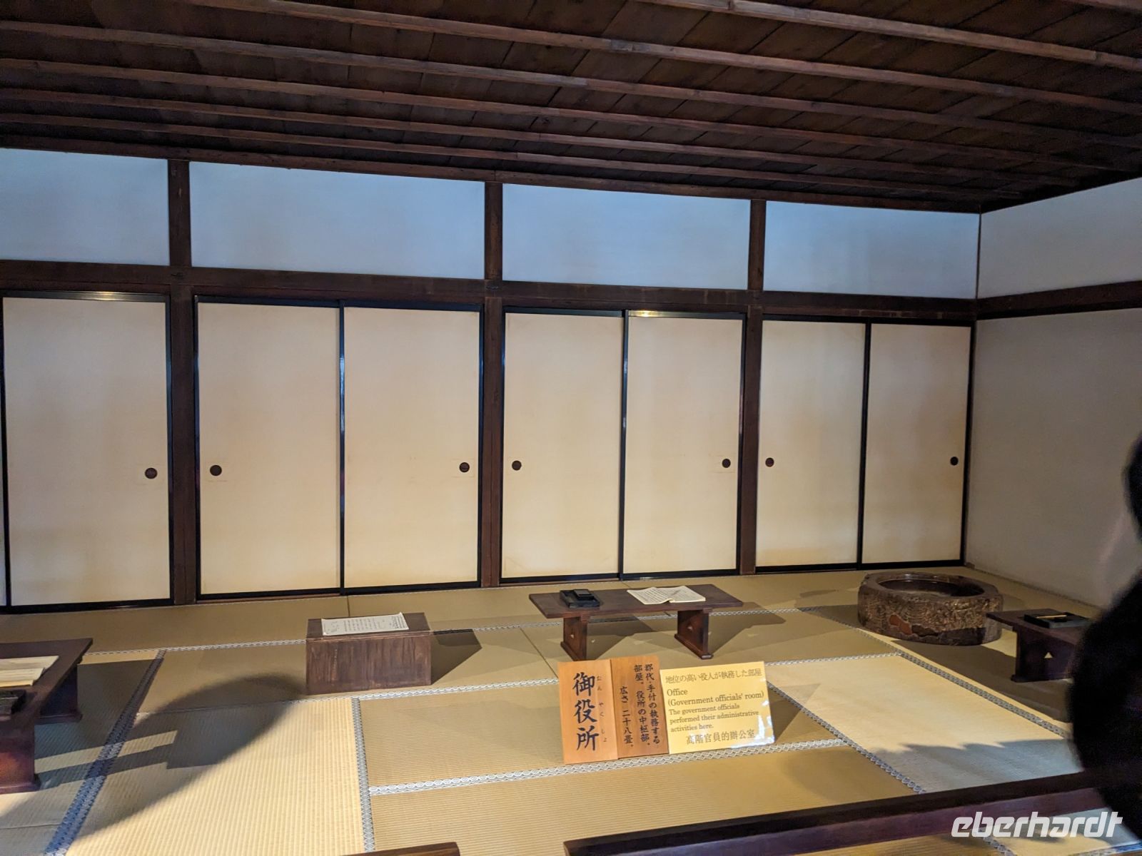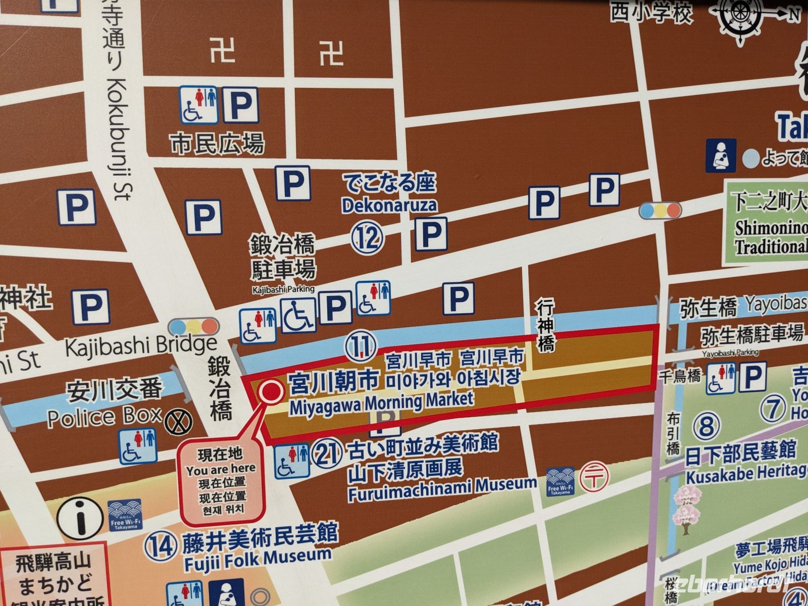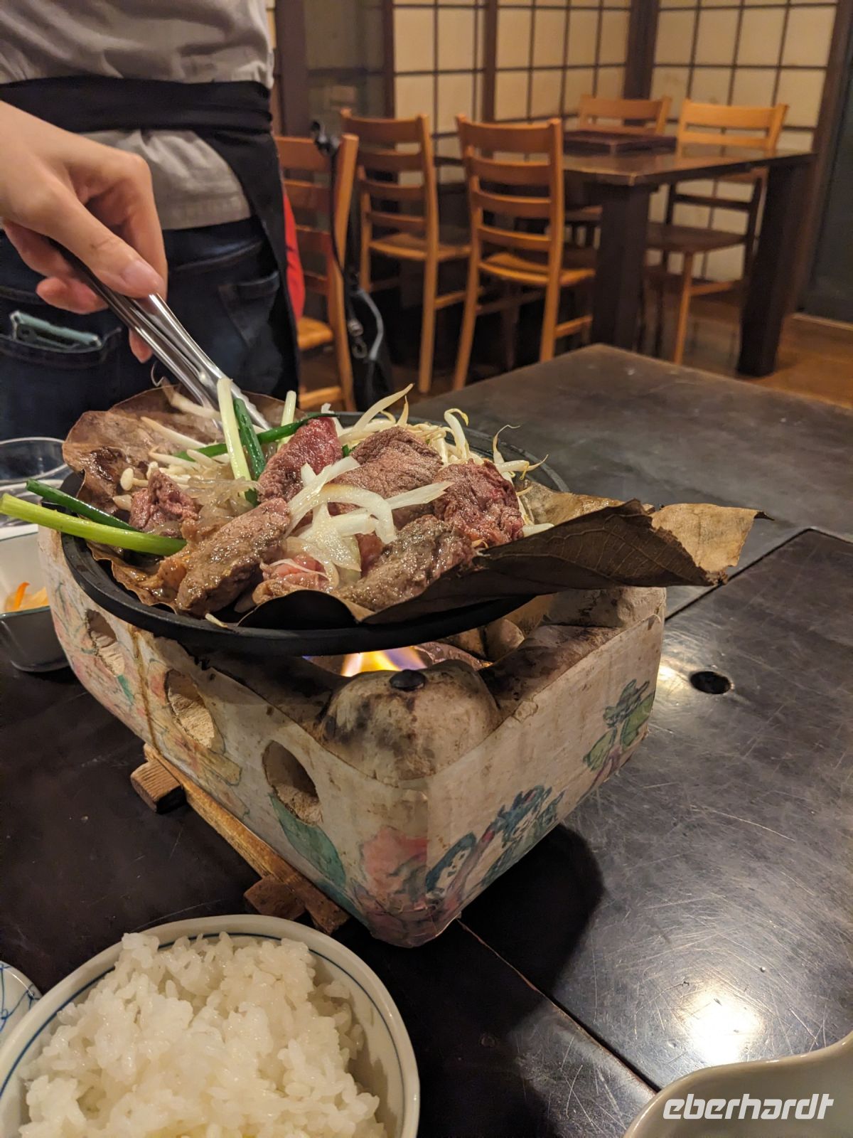 Der heutige Tag stand ganz im Sinne des Mount Fuji. Nach einer eher ungewöhnlicher Frühstücksauswahl am Morgen im Ryokan nahmen wir das Piratenschiff über den Ashi-See zur Seilbahnstation in der Bergregion von Hakone. Dabei erhielten wir bereits wunderbare Blicke auf das beeindruckende Massiv des Fuji. Masayo teilte uns mit, dass so eine gute Sicht für diese Jahreszeit eher ungewöhnlich sei, da solch eine klarer Blick meist nur im Winter zu beobachten wäre. Doch wir hatten Glück und uns wurde wahrlich eine Bilderbuch-Ansicht geboten! Einfach atemberaubend! Angekommen an der Seilbahnstation ging es hoch hinaus und dann sahen wir schon den Dampf und schließlich kam auch der Geruch dazu: Schwefel. Passend dazu wurden an der Verkaufsstelle oben Schwarze Eier, sogenannte Teufelseier, verkauft. Dabei handelt es sich um normale Hühnereier, welche in Schwefel gekocht, ihre dunkle Farbe erhalten. Als Kostprobe kaufte ich meiner Gruppe welche im Namen von Eberhardt TRAVEL. Unser Fazit: Geschmacklich kein Unterschied zu normalen hartgekochten Eiern, aber interessant war es trotzdem, die ungewöhnlichen Eier einmal zu probieren. Mit dem Bus fuhren wir dann durch die wunderschöne Berglandschaft zu einem sagenhaften Aussichtspunkt. Davor legten wir noch einen kurzen Stopp in einem Supermarkt ein, um individuell Snacks für eine Mittagsrast zu holen. Diese genossen wir dann mit Blick auf ein Blütenmeer mit dahinterliegendem See und dem Mount Fuji als krönende Umrandung. Hier bot sich aller paar Meter ein neues Fotomotiv. Die verschiedenen Blumen bewegten sich im Wind, von weiter her vernahm man Kindergesang aus einer Schule, die Sonne strahlte auf uns herab und die Welt schien in dem Moment einfach einmal stillzustehen. Ein leckeres Traubeneis, typisch für die Region, kann ich zudem auf jeden Fall weiterempfehlen. Doch irgendwann drehte die Uhr sich dann doch weiter und es hieß Abschied zu nehmen vom Mount Fuji. Unser Reisebus brachte uns weiter nach Takayama, wo wir in unser Hotel eincheckten und anschließend ein traditionelles Hida Rindfleisch-Abendessen zu uns nahmen.