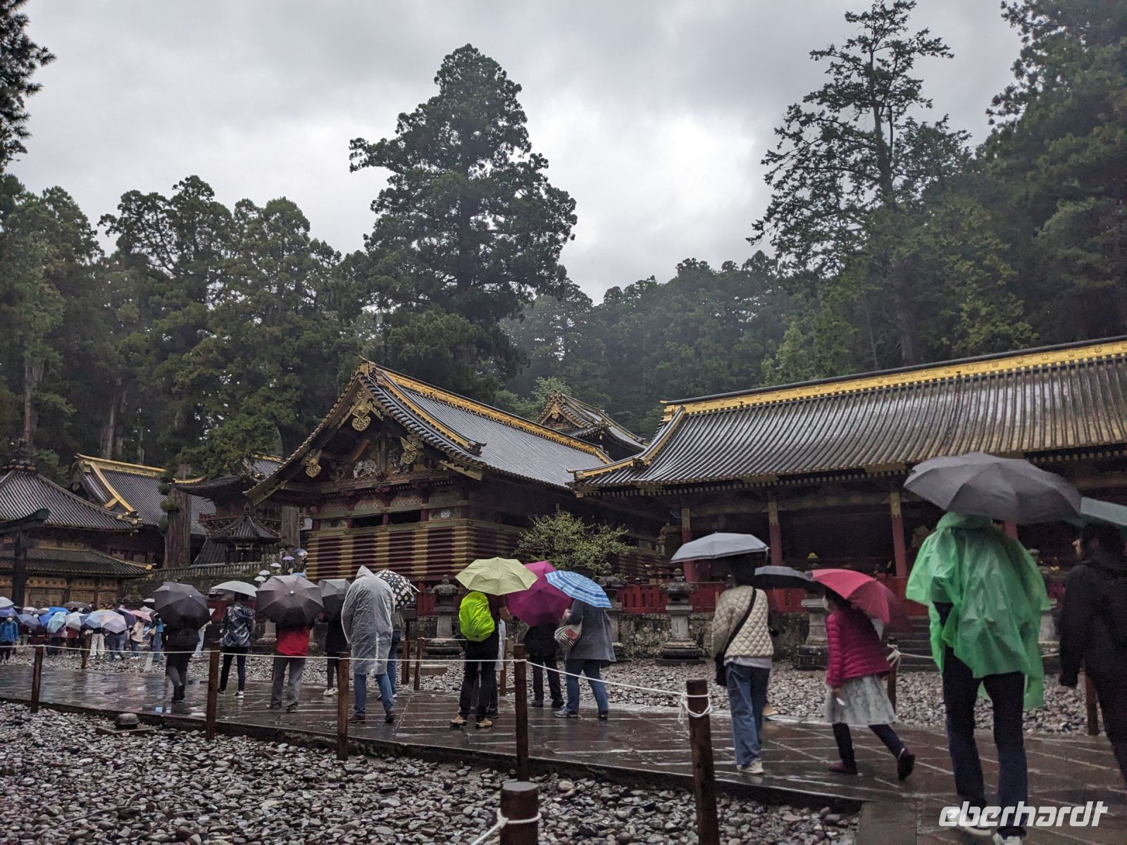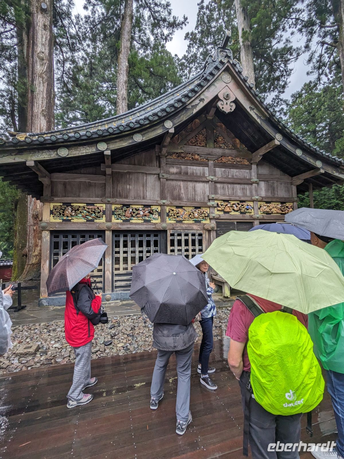 Nach einem leckeren Frühstück über den Dächern von Tokio bei leicht verhangener Sicht brachte uns unser Reisebus nach Nikko. Leider entwickelten sich aus den Wolken leichte Regenschauer - doch ausgerüstet mit Regenjacke, Cape und Schirm waren wir dem gewachsen und ließen es uns nicht nehmen, den Toshogu-Schrein zu besichtigen. Hier waren viele weitere Gruppen unterwegs, doch vor allem während der zur Verfügung stehenden Freizeit fand man doch einige ruhigere Ecken, um die zahlreichen Details der Anlage zu bewundern. Von Elefanten über Affen bis hin zu einem Kätzchen gab es hier einiges zu entdecken. Besonders gut tat das im Anschluss angesteuerte Mittagessen - ein heißer Kakao oder ein Sake, japanischer Reiswein, waren hier genau das Richtige. Aufgrund des immer schlechter werdenden Wetters entschieden wir uns, den Wasserfall ausfallen zu lassen und zurück nach Tokio zu fahren. Masayo hatte dann die fantastische Idee noch die Freiheitsstatue von Tokio anzusteuern. Vor allem bei zunehmender Dämmerung erstrahlte sie, sowie die Regenbogenbrücke mit dahinterliegenden Skyline der Stadt, in einem glanzvollen Licht. Ein nahegelegenes Einkaufszentrum bot einen interessanten Schaufensterbummel, bevor es zurück zum Hotel ging. Am heutigen Abend ermöglichte ein italienisches Restaurant einem Teil der Gruppe eine leckere Auswahl an Pasta und Pizza. Hier stand es aber jedem frei, den verbleibenden Tag individuell zu gestalten.