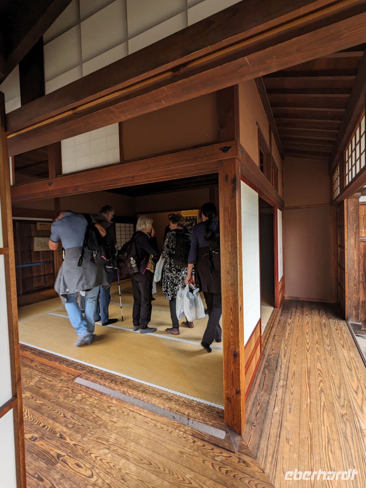 Der Tag fing unmittelbar gut an mit dem Besuch des Morgenmarktes in Takayama. Hier gab es zahlreiche Stände und kleine Geschäfte mit den interessantesten Verkaufsobjekten. Auch probieren konnte man so einiges. Nachdem wir gemütlich die Straße entlanggeschlendert waren, sammelten wir uns wieder am Bus und brachen in Richtung Shirakawago auf. Die UNESCO-Weltkulturerbestätte besticht mit ihrer ganz eigenen Bauweise und der Nutzung von Schilf für die Abdeckung der Dächer. Dies gibt den Häusern ihr unverwechselbares Aussehen. Auch besichtigten wir eines dieser Häuser, welches wie eine Art Museum aufbereitet war, obwohl die Familie dort immer noch lebt. Gemütlichkeit und Komfort war hier auf jeden Fall nicht zu finden - eher Kälte und Tradition. Wie man hier wohl leben kann? Wir hätten noch stundenlang durch diese faszinierende Ortschaft spazieren können, doch schon hieß es: Es geht zurück nach Takayama, denn auch hier gab es noch so einiges zu entdecken! Eine belebte Einkaufsstraße bot Sake-Verkostungen, Mitbringsel für die Lieben daheim sowie Leckereien verschiedenster Art. Nach etwas Freizeit trafen wir uns vor dem ehemaligen Regierungsgebäude der Stadt wieder, wo uns Masayo eine ausgedehnte Führung bot. Anschließend stand die Zeit zur freien Verfügung. Mit einem Teil der Gruppe verabredeten wir uns später noch zu einem gemeinsamen Abendessen. Schwieriger als gedacht in der doch recht kleinen Stadt, doch schließlich sind wir fündig geworden.