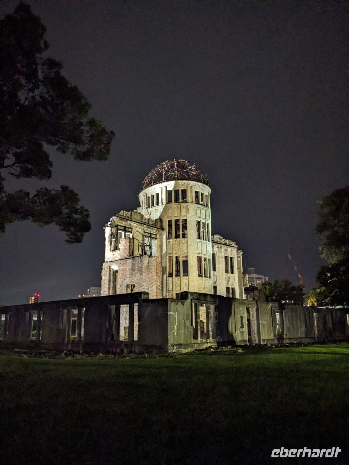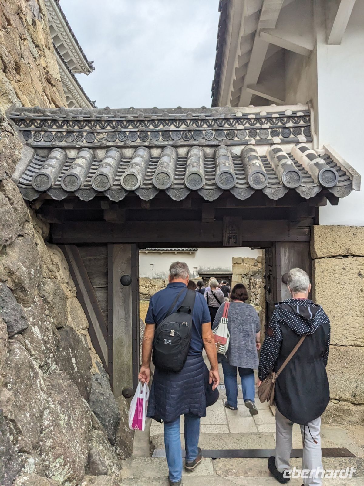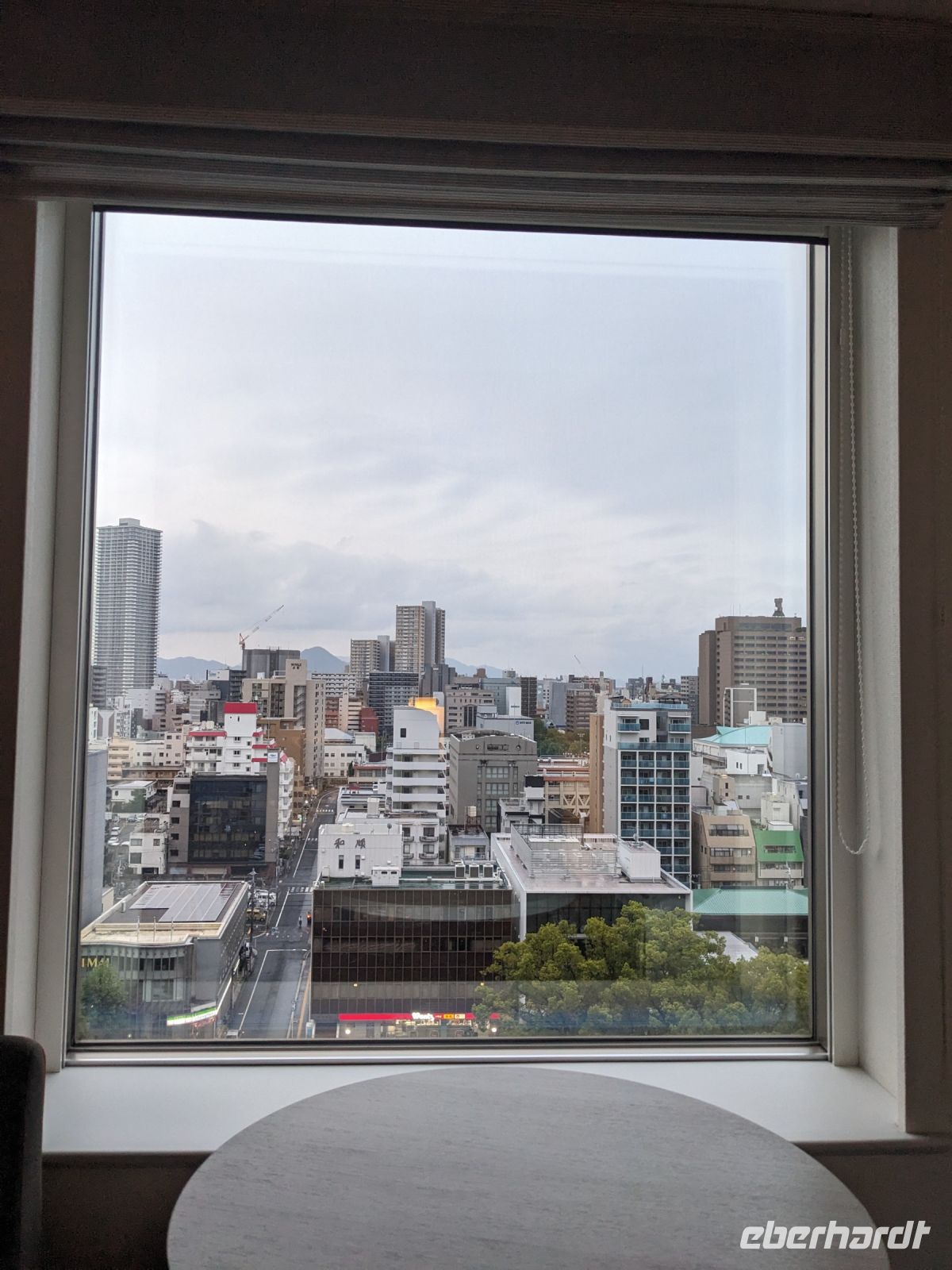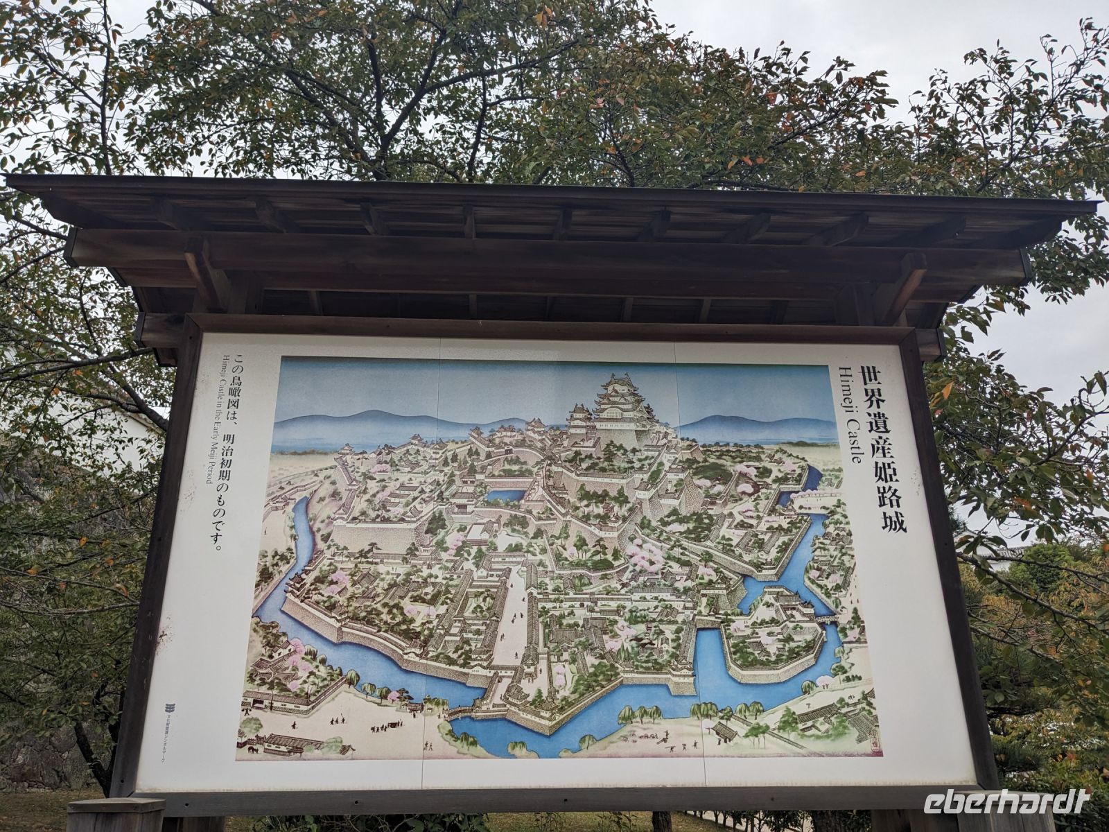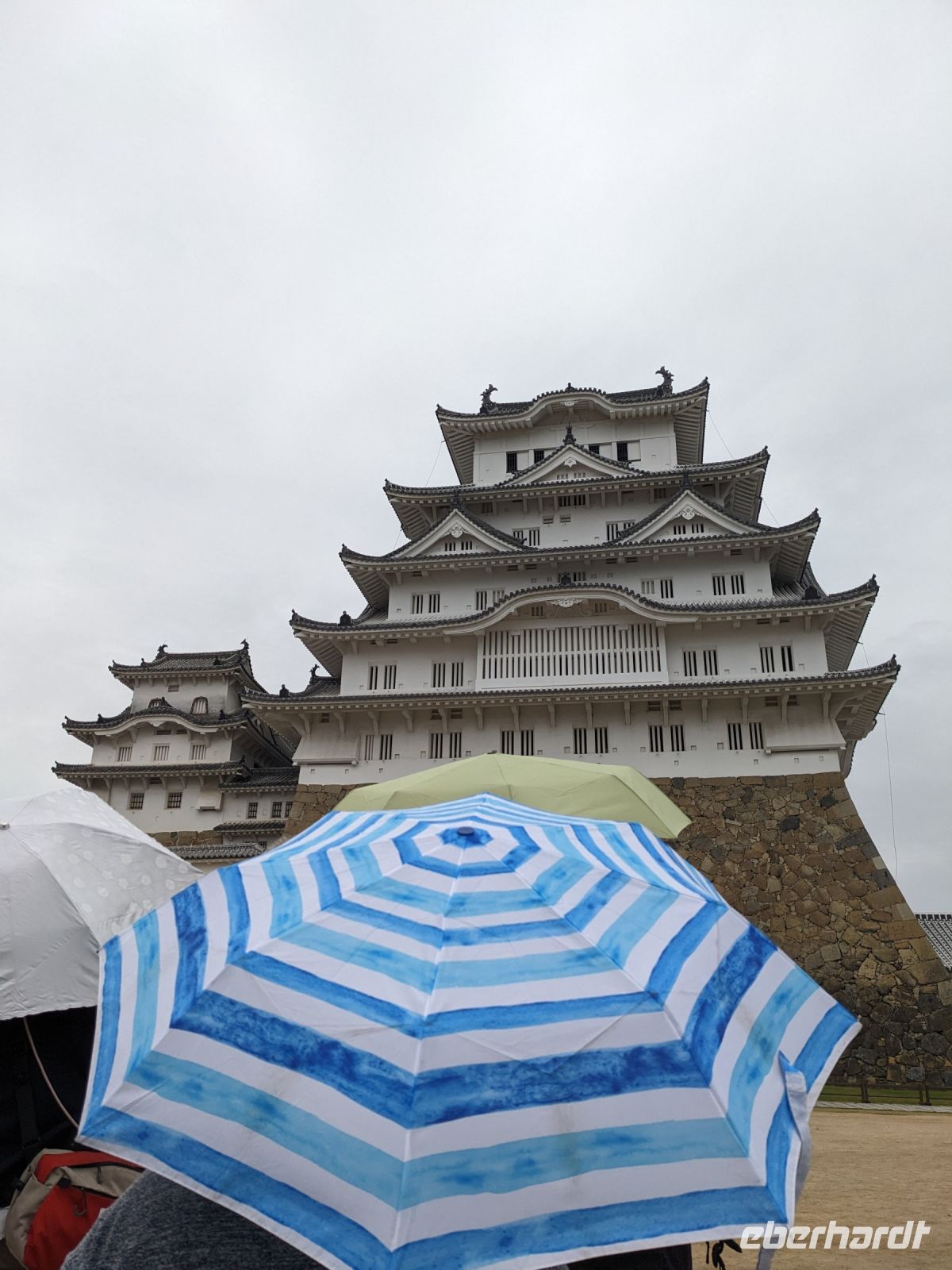 Am nächsten Morgen gaben wir unsere Koffer an der Rezeption ab und machten uns nur mit unserem Handgepäck auf den Weg zum Bahnhof in Takayama. Wir fuhren nach Nagoya und von dort ging es dann schließlich mit dem Shinkansen nach Himeji. Mit durchschnittlich 180 km/h Geschwindigkeit überbrückten wir die Distanz innerhalb kürzester Zeit. Der Schnellzug ist bekannt für seine Pünktlichkeit und seinen Komfort. Wir fühlten uns dort sehr gut aufgehoben - die vorbeibrausende Landschaft lud zum Träumen ein, man hatte genügend Beinfreiheit und auch kostenfreies WLAN war vorhanden. Angekommen in Himeji hinterlegten wir unser Gepäck in einen Spind und spazierten zur bekannten Burganlage. Auf dem Weg begegneten uns zahlreiche Kunstinstallationen, vor allem Skulpturen. Im Hintergrund aufragend erkannten wir schon aus weiter Entfernung die riesige UNESCO-Weltkulturerbestätte. Nach etwa einer halben Stunde erreichten wir die Burg und suchten uns zunächst erstmal eine Sitzgelegenheit für ein kleines Picknick. Anschließend brachen wir auf, um die Anlage von innen zu besichtigen. Erst schlängelte sich der Weg nur leicht bergauf - im Haus selbst kamen dann die Treppen. Hoch hinaus überblickten wir schließlich Himeji und die Umgebung. Der Aufstieg hatte sich gelohnt, auch wenn es uns viele gleichtaten - doch typisch japanisch hatten alle, geordnet in einer Schlange, die Möglichkeit, nacheinander durch die Fenster zu schauen. Wieder unten hatte es mittlerweile angefangen, leicht zu nieseln, sodass die Regenschirme wieder zum Einsatz kamen. Doch auf dem Weg zurück zum Bahnhof hörte es auf und bei unserer Zugfahrt von Himeji nach Hiroshima mit dem Shinkansen konnten wir die vorbeiziehende Landschaft ohne Regen genießen. In Hiroshima checkten wir zunächst einmal in unserem Hotel ein und liefen dann gemeinsam zu einem Restaurant, in dem uns japanische "Pizza" serviert wurde. An sich hatte dieses Gericht bis auf die runde Form aber so gar nichts mit Pizza gemein, schmeckte aber dennoch sehr lecker. Für alle, die wollten, unternahm ich noch einen Spaziergang zum Friedenspark von Hiroshima, den wir schön beleuchtet und fast für uns allein auf uns wirken lassen konnten.