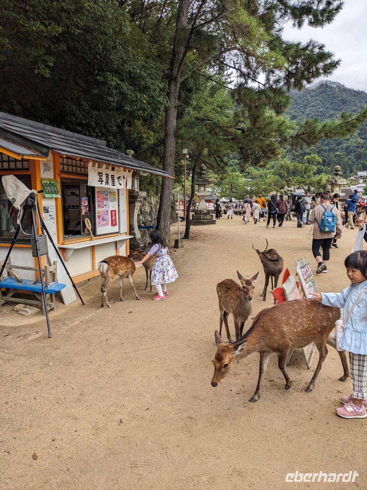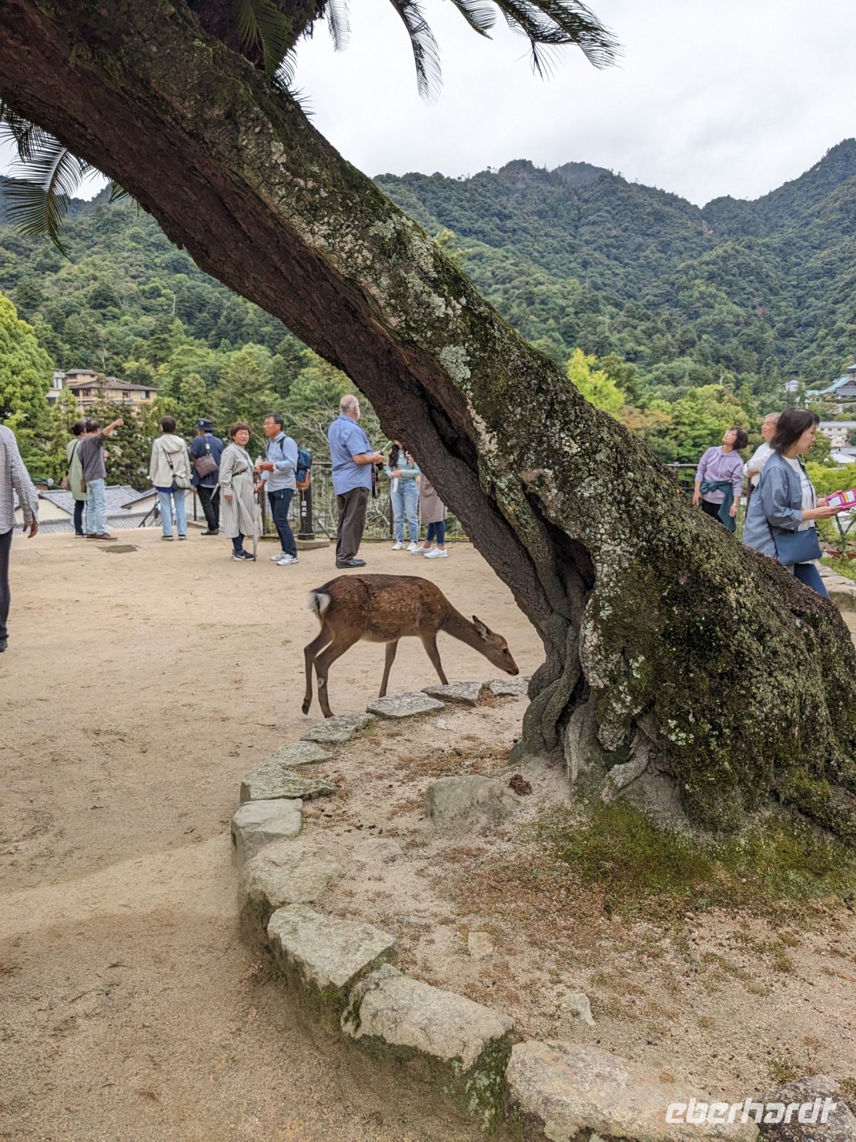 Heute stand uns ein ereignisreicher Tag bevor: Mit der Bahn fuhren wir zunächst erstmal zur Fährstation etwas außerhalb der Stadt und setzten über auf die Insel Miyajima. Dort erwarteten uns die süßen vierbeinigen Bewohner. Ohne Scheu, wie man es sonst bei Rehen kennt, konnten wir uns ihnen nähern und auch sie waren neugierig auf uns bzw. eher, ob wir nicht etwas zu essen dabei hätten. Bei einem Spaziergang entlang des Küstenstreifens gelangten wir zum Shinto-Schrein, den wir bei einer anschließenden Besichtigung kennenlernten, bevor wir während unserer Freizeit ausführlich Zeit hatten, die restlichen Highlights der Insel zu erkunden. Dazu zählte das berühmte "schwebende" rote Tor, welches wir schon auf der Fährfahrt bewundern konnten. Zudem gab es eine eindrucksvolle Pagode sowie eine gut gefüllte Einkaufsstraße - erstaunlich wie viele Leute in einem so kleinen Dorf unterwegs waren. Doch es gab auch ruhigere Stellen, abseits vom Trubel der Einkaufsstraße, wo man in Ruhe ein kleines Mittagessen zu sich nehmen konnte - nur die Rehe durften nicht auf dich aufmerksam werden - damit war die Ruhe sonst wieder vorbei! Schließlich brachte uns die Fähre wieder zurück nach Hiroshima und wir fuhren mit der Bahn direkt zum Friedenspark. Dort lauschten wir interessiert den Ausführungen von Masayo über die Geschehnisse des 06.08.1945 - unvorstellbar, was vor nicht einmal 80 Jahren hier passiert war! Der Dom, die Friedensglocke, das Kinderdenkmal, die ewige Flamme sowie das Museum sind stille Erinnerungsweiser der grausamen Vergangenheit, verknüpft mit der Hoffnung, sowas solle nicht noch einmal passieren. Die Zeit für unseren Anschlusszug nach Kyoto wurde knapp und so mussten wir den Besuch des Friedensmuseum auslassen. Wir holten das Gepäck, welches wir am Morgen wieder in einem Spind am Bahnhof verstaut hatten, ab und nahmen ein letztes Mal den Shinkansen-Express. Dieses Mal brachte er uns nach Kyoto - der sogenannten Kaiserstadt. Dort angekommen, unternahmen wir einen ausführlichen Rundgang durch das architektonisch eindrucksvolle Bahnhofsgebäude. Abschließend gingen wir zusammen in ein koreanisches Restaurant essen und erlebten hier die Unterschiede zwischen den beiden Küchen. Ein ereignisreicher Tag neigte sich dem Ende zu. Taxis brachten uns zu unserem Hotel für die letzten drei Nächte. Dort warteten auch bereits unsere Koffer auf uns. Auch sie hatten ihren Weg von Takayama nach Kyoto gefunden. Diese Art des Transports ist in Japan sehr beliebt und war auch für uns überaus praktisch, da wir dadurch nicht mit den großen Gepäckstücken im Shinkansen hantieren mussten und demnach eine entspannte Anreise genießen konnten.