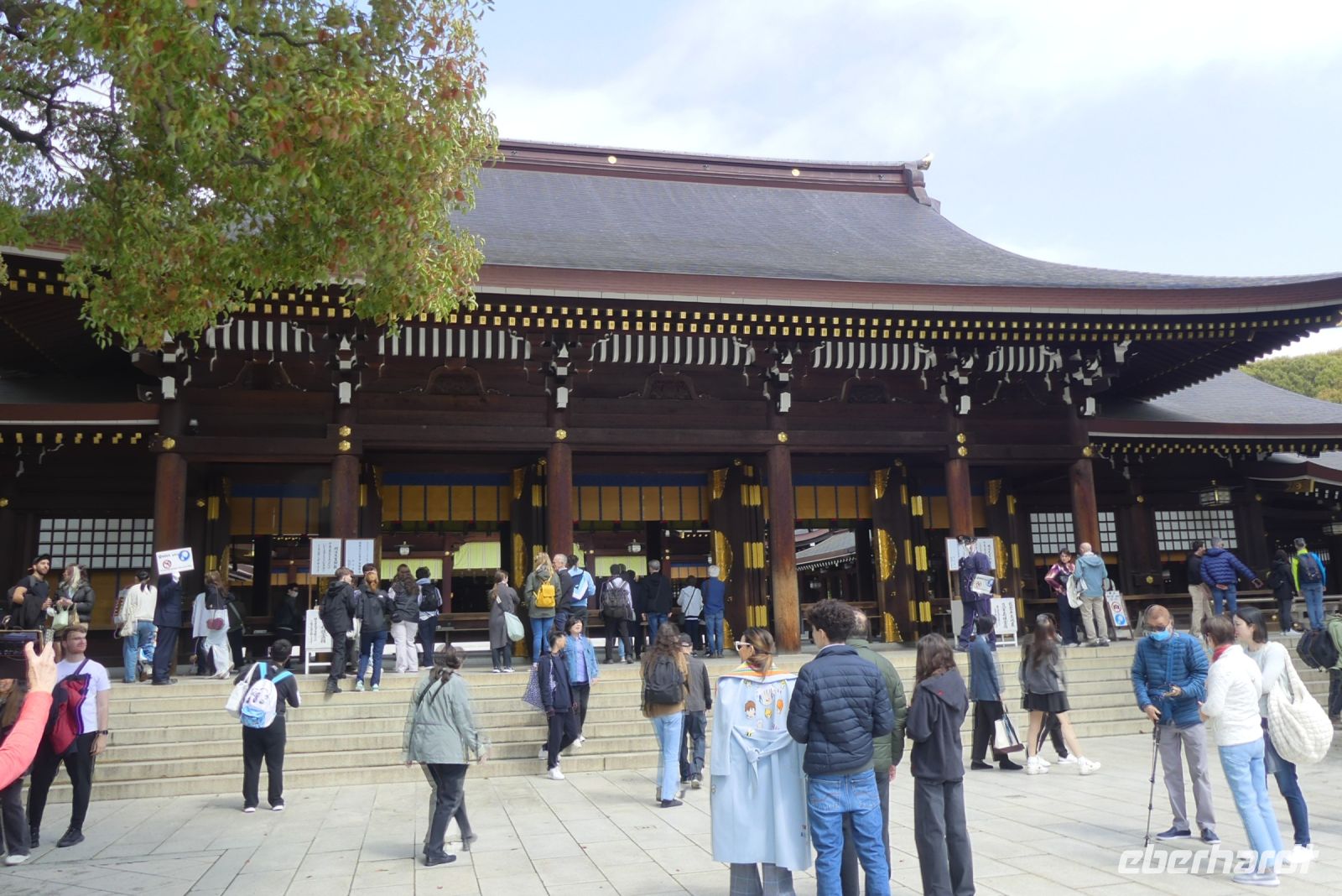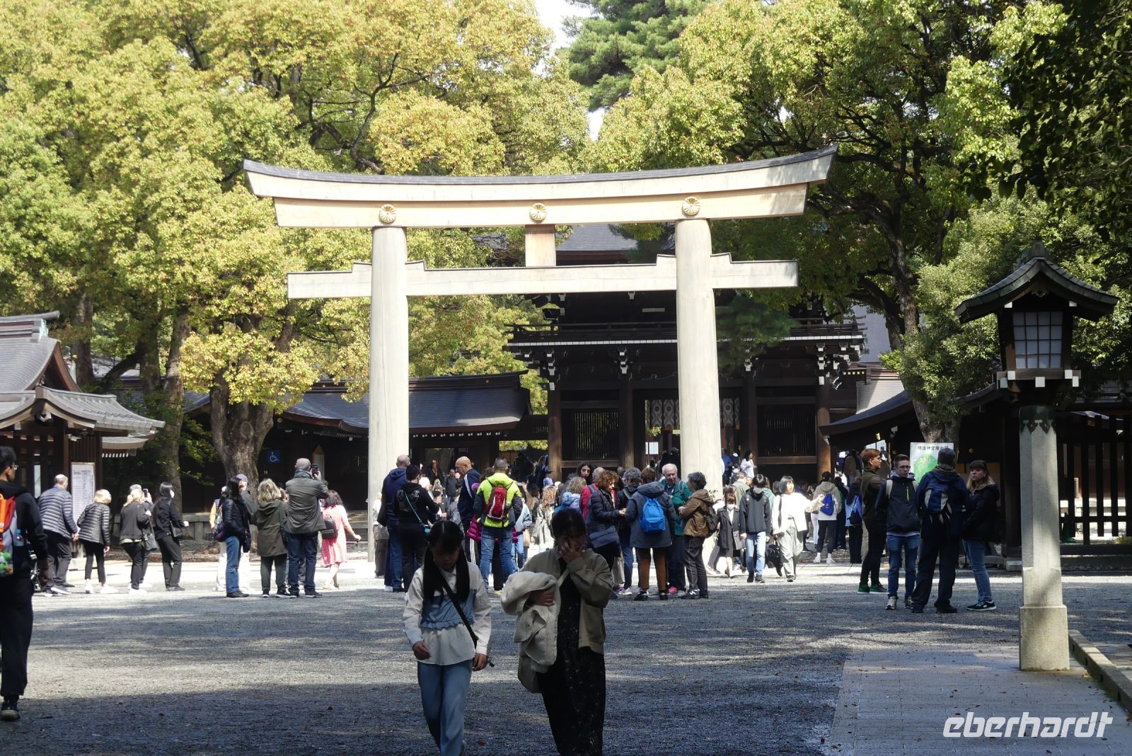 Im Meiji-Schrein erfahren wir, dass der schintoistische Schrein dem 1912 verstorbenem Meiji-Kaiser gewidmet ist, aus Spenden finanziert und nach seiner Zerstörung im zweiten Weltkrieg 1958 wieder aufgebaut wurde. Untrennbar mit japanischen Tempel- und Schreinanlagen ist das käufliche Glück in Form von Amuletten, passend für jede Lebenslage von der glücklichen Geburt bis zur unfallfreien Autofahrt ist alles dabei…