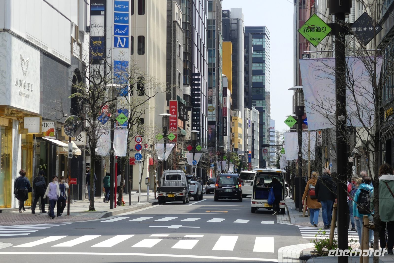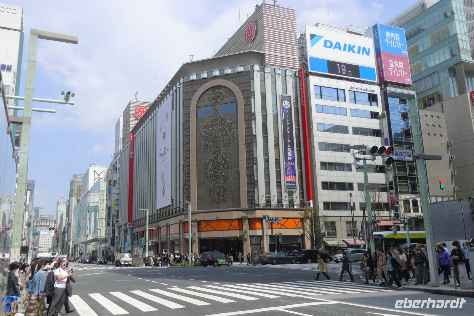 Unsere Stadtbesichtigung führt uns weiter ins luxuriöse Stadtviertel Ginza, wo wir die Mittagszeit verbringen. Ich finde in den Kaufhäusern besonders die Lebensmittel-, Obst- und Feinkostabteilungen eine Augenweite.