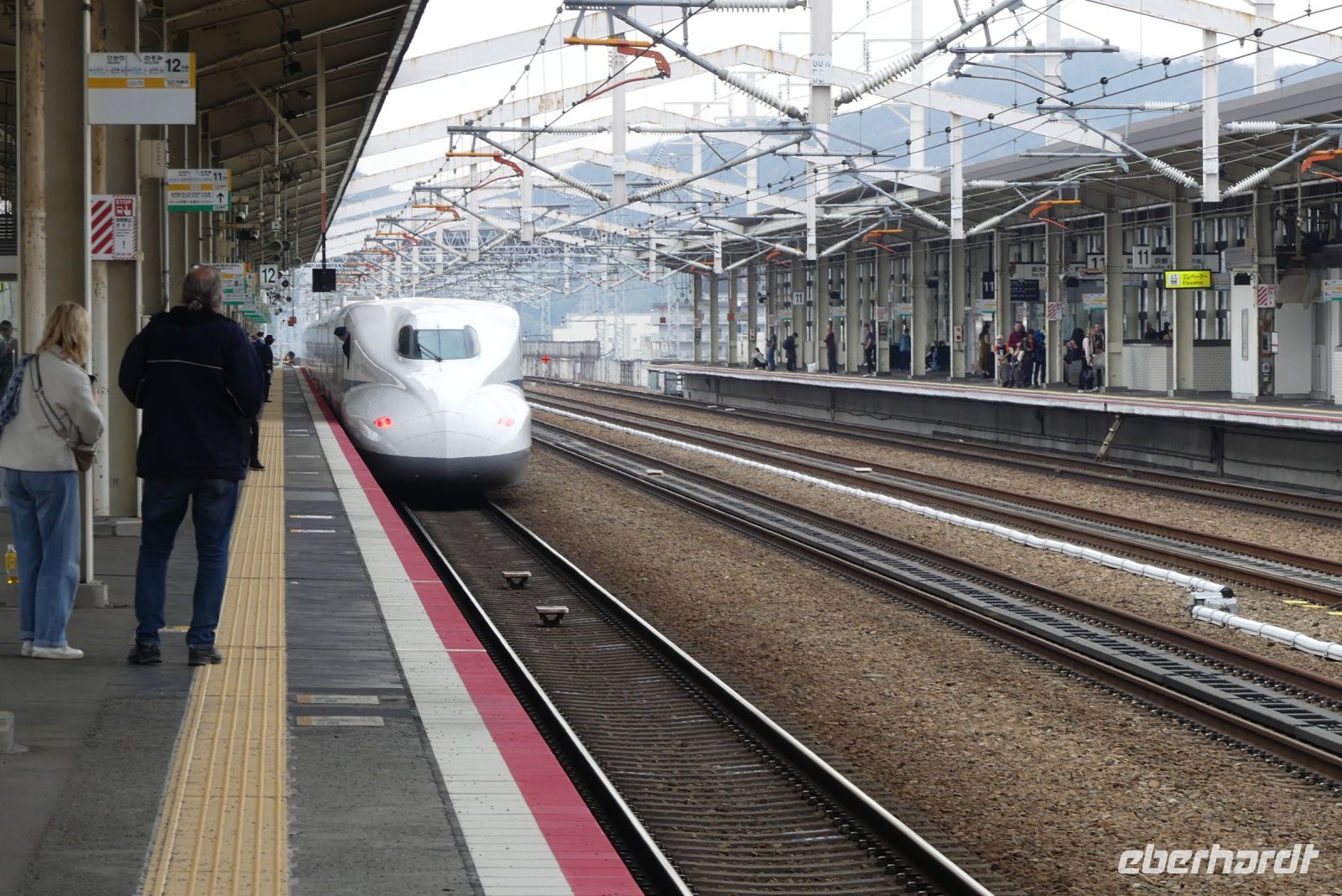 Heute werden wir erstmals mit der Eisenbahn unterwegs sein. Unsere Koffer werden separat nach Kyoto transportiert, während wir mit Handgepäck reisen.