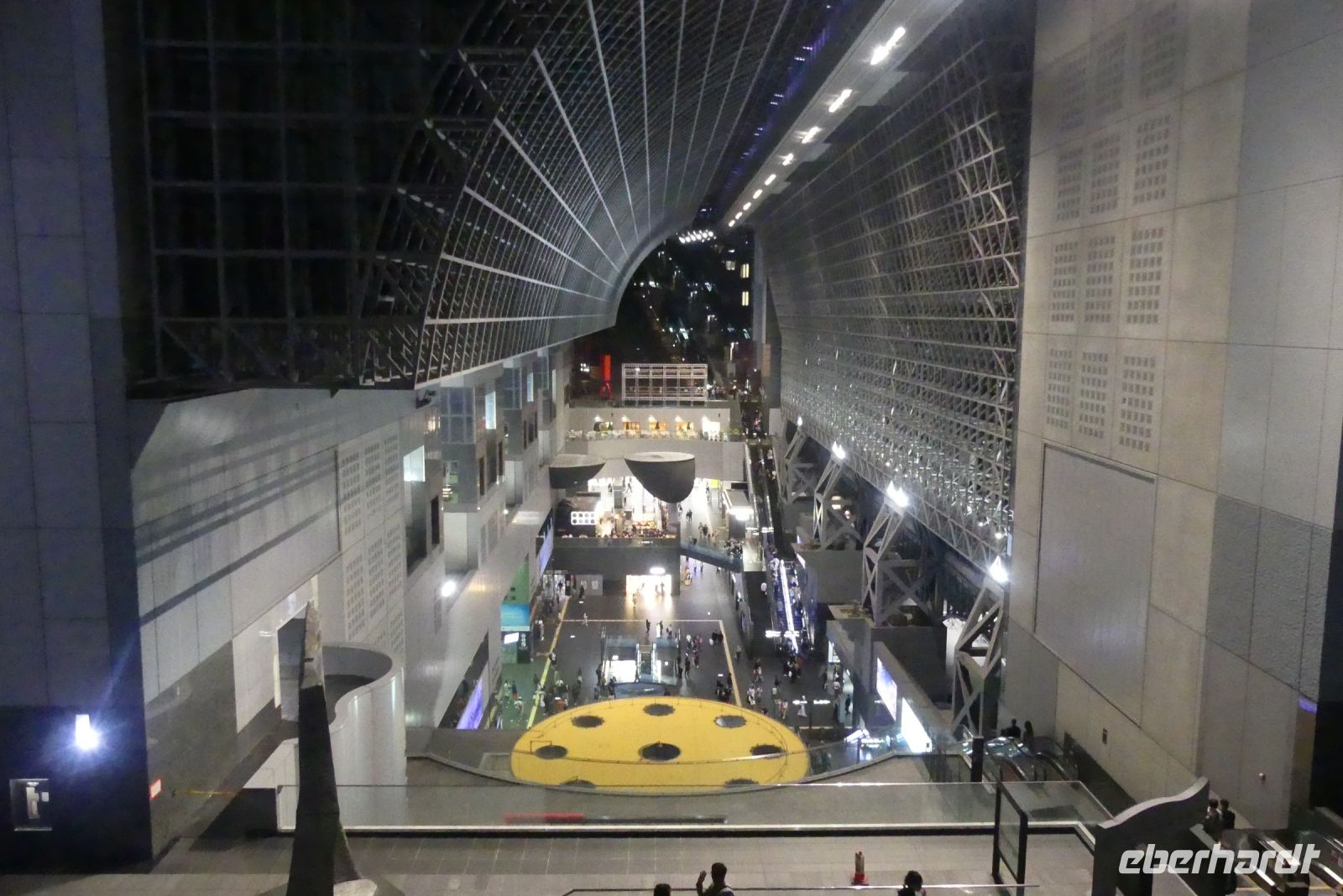 Unser nächstes Ziel: Kyoto, die alte Kaiserstadt. Dort warten auf uns heute ein Bett und unsere Koffer. Mit der Straßenbahn begeben wir uns vom Friedenspark zum Bahnhof von Hiroshima. Von hier sind es 90 Minuten mit dem Shinkansen nach Kyoto. Der Bahnhof von Kyoto hat eine moderne, futuristisch anmutende Architektur. Wir teilen uns hier auf: Einige fahren mit Samira mit Taxen zum Hotel, einige bleiben mit mir noch im Bahnhof und gehen in die kleine Ramen-Straße in der 10. Etage zum Abendessen.