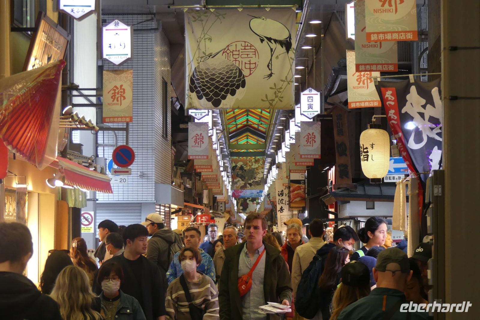 Die Mittagszeit verbringen wir in der Innenstadt im berühmten Nishiki-Markt. Der Nishiki-Markt ist eine historische, überdachte Einkaufspassage, welche vor allem aus Imbissständen und Restaurants besteht. Hin und wieder gibt es auch eine Sake-Probe zum Essen. Nachmittags besuchen wir in der Nähe des Marktes eine japanische Teezeremonie. Dabei geht es um den berühmten Matcha-Tee. Matcha ist ein zu Pulver vermahlener grüner Tee. Er entwickelt in der Tasse eine frische und intensive grüne Farbe.
