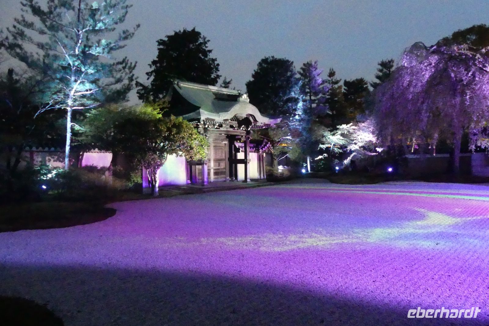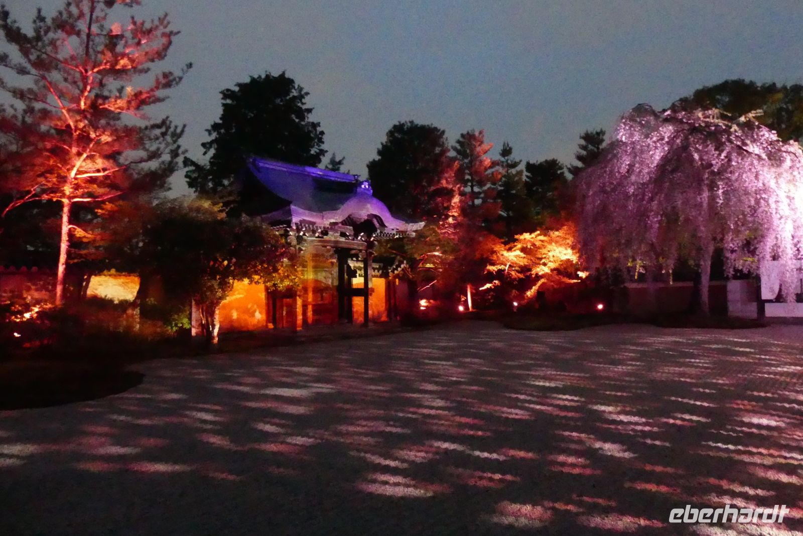 Zum Tagesausklang beginnt es wieder an zu regnen. Mit Taxen fahren wir zum Kodaiji Zen Tempel, um mit Regenschirm ausgerüstet, die besondere Abendbeleuchtung zu erleben.