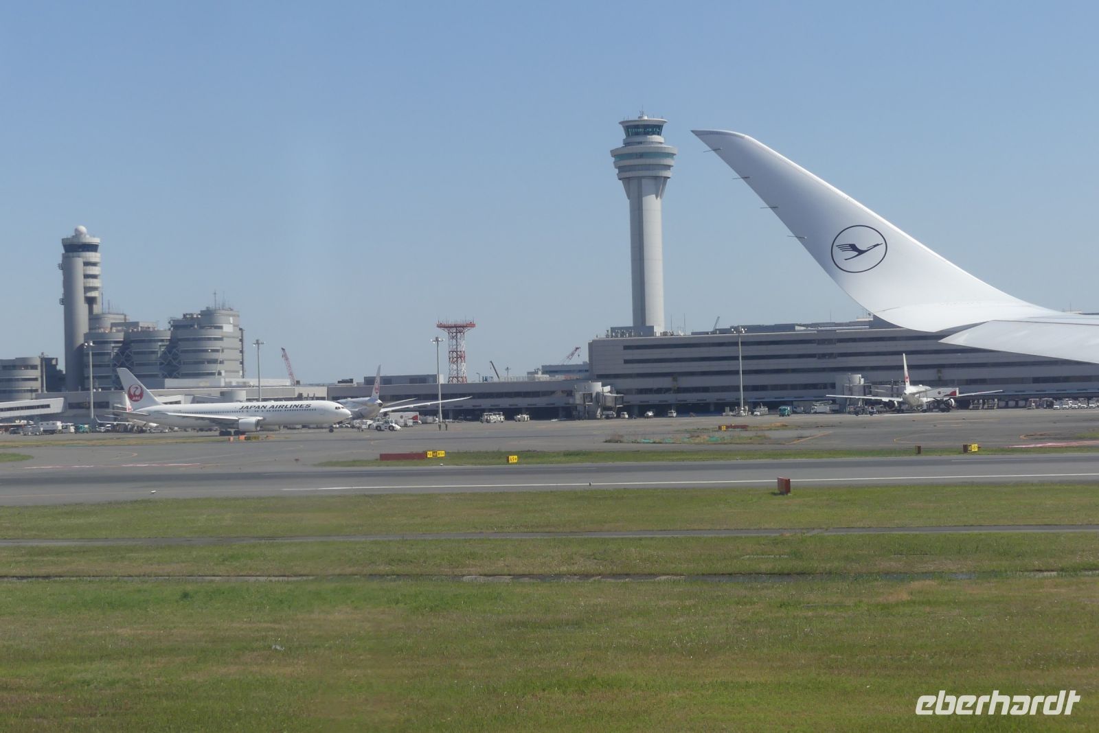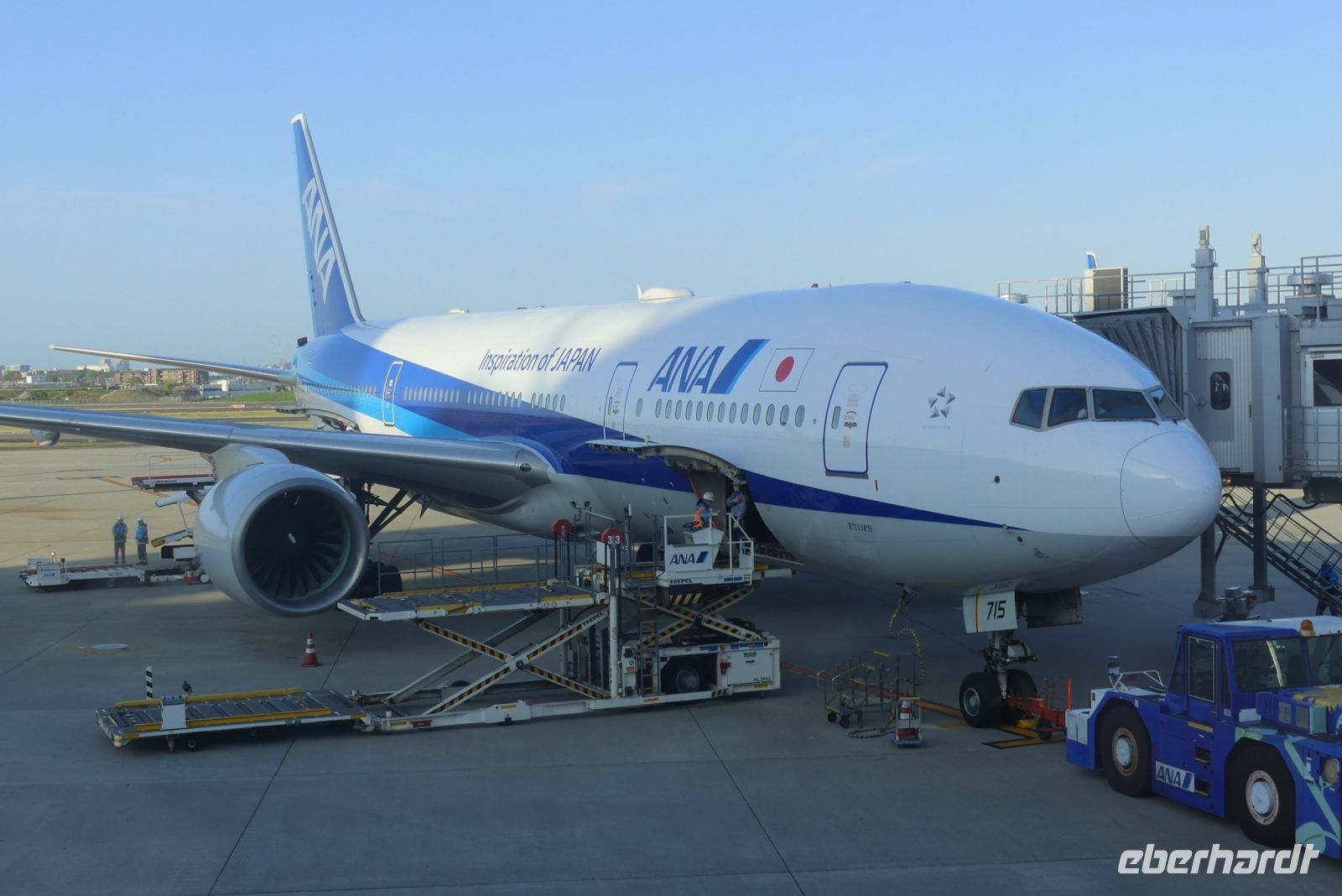 Mit einer Triple 7 der ANA (All Nippon Airways) fliegen wir zunächst eine Stunde bis nach Tokio. Dabei ist auf der linken Seite wieder wunderbar der Fuji zu sehen. Das Umsteigen am Tokioter Flughafen braucht Zeit und man muss aufpassen…einmal nicht abgebogen und schon kann man nicht mehr zurück, aber es wird einem geholfen…