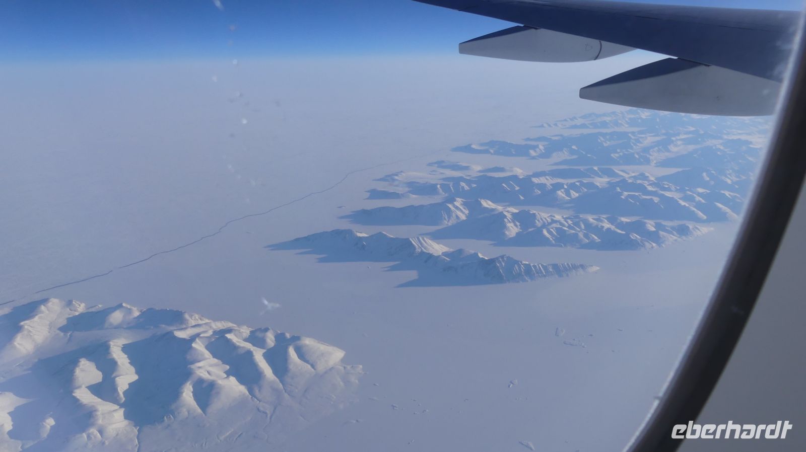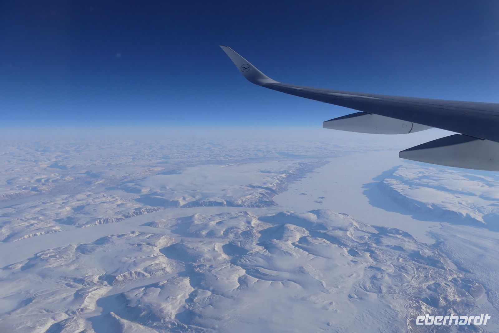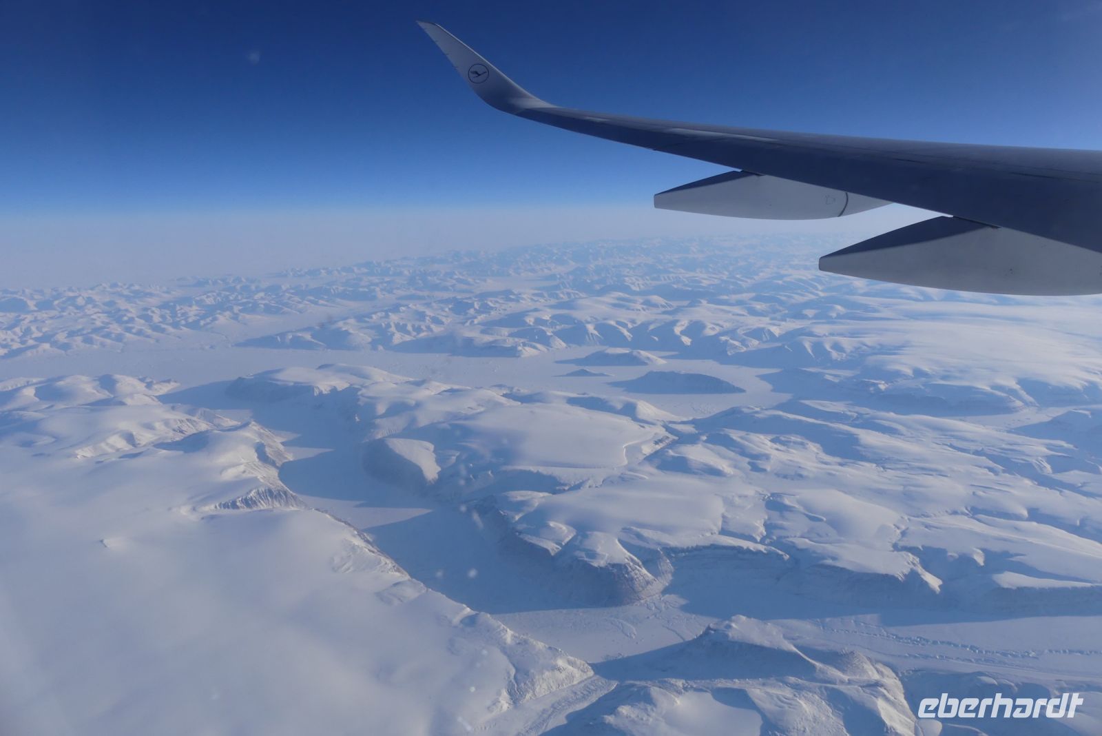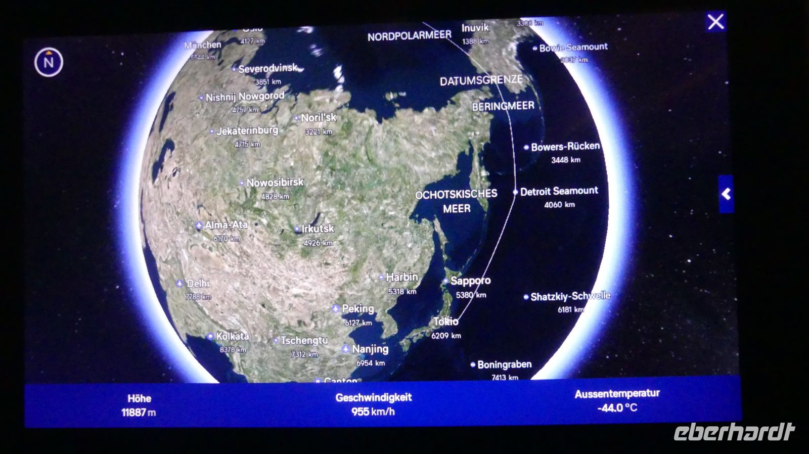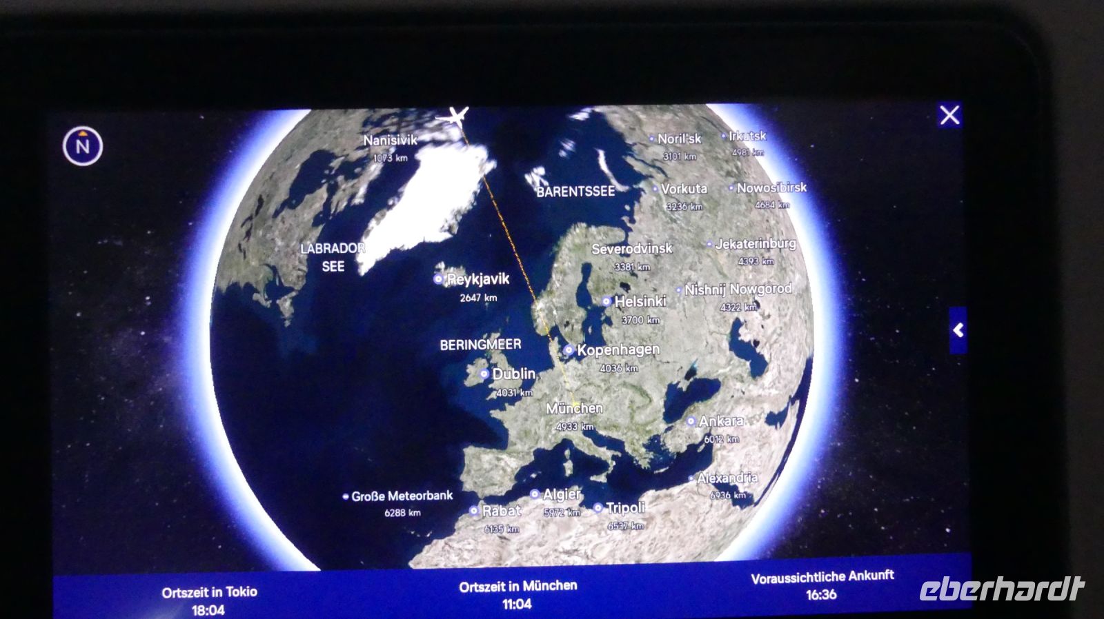 Dann starten wir von Tokio Richtung Deutschland. Genau genommen ist es kein Rückflug, sondern ein Weiterflug, weiter nach Osten, also „einmal rum“ so zu sagen bis wir wieder am Ausgangspunkt München ankommen. Es ist eine geographisch interessante Route über die Beringstraße, die Datumsgrenze, das Nordpolarmeer und die Nordspitze von Grönland, um schließlich über den Nordatlantik nach Europa zu kommen. Nach über 13 Flugstunden und mehr als 12.700 km landen wir (dank Datumsgrenze) noch am selben Tag in München. Ein Tag an dem es scheint, dass die Sonne nie unter geht. Wir landen am frühen Nachmittag etwas vorfristig in München. Als wir in der Parkposition länger warten müssen, bis der Rüssel angedockt wird, meint der Pilot, dass eine zeitige Landung nicht zwangsläufig eine pünktliche Ankunft bedeuten muss…