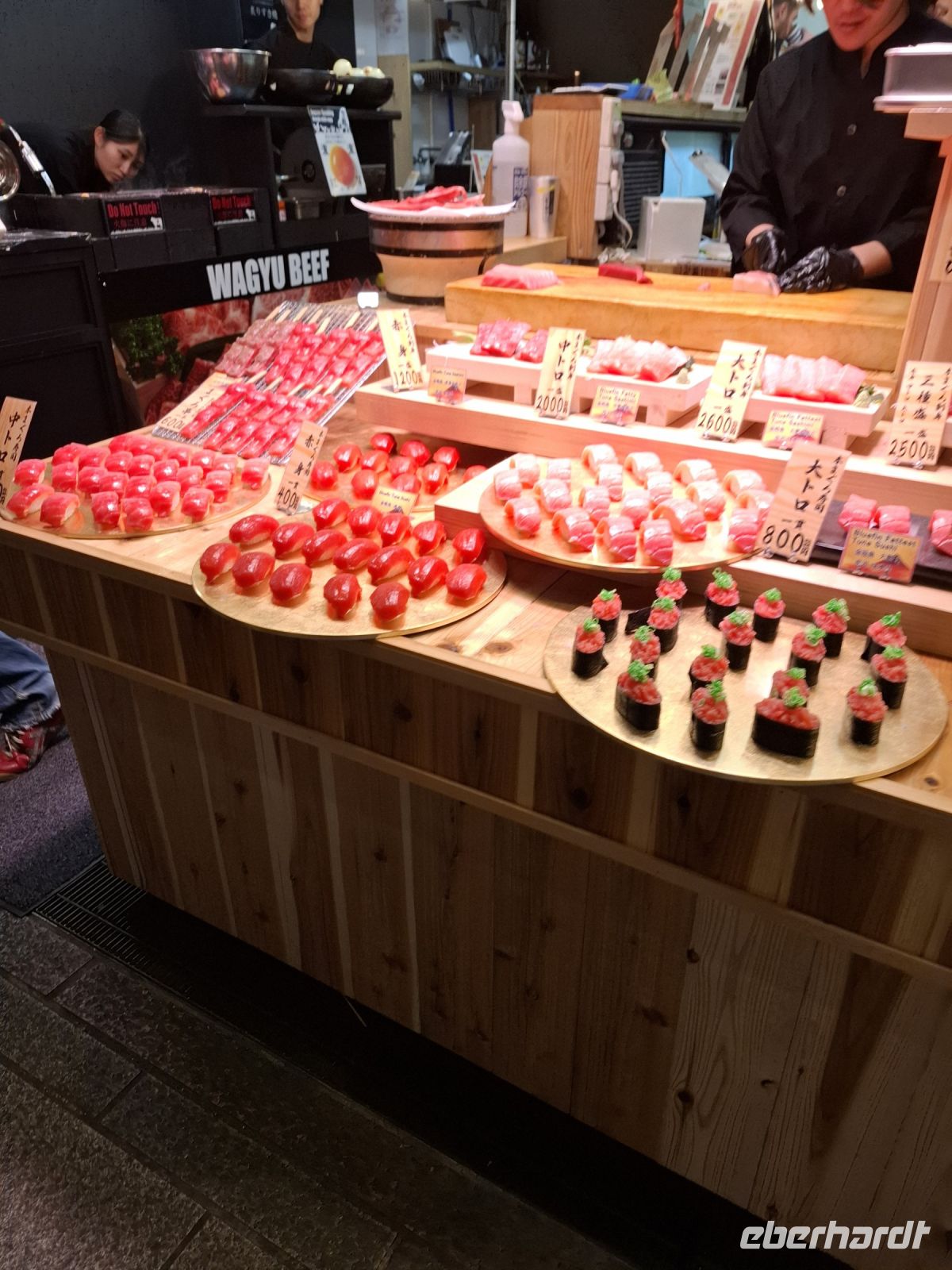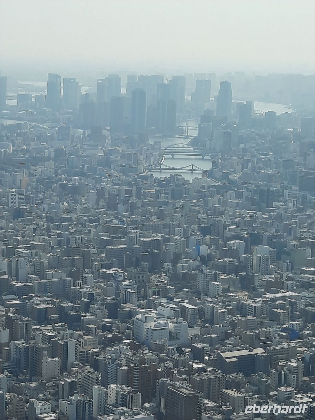 Mehr oder weniger ausgeschlafen erreichen wir am Vormittag die japanische Hauptstadt Tokyo. Nachdem wir das Einreiseprozedere hinter uns gebracht und unsere Koffer abgeholt haben, verlassen wir den Sicherheitsbereich des Flughafens und unsere örtliche Reiseleiterin Gudrun begrüßt uns. Wir stellen uns kurz vor und schon erledigen wir den wichtigsten Punkt in einem fernen Land: Geld ziehen bzw. Geld tauschen. Gut versorgt, laufen wir zum Bus und unser Bus-Chauffeur Makino San begrüßt uns durch das Mikrofon mit einer kleinen Ansprache. Damit beweist er schon nach wenigen Minuten, wie freundlich die Japaner sind. Anschließend fahren wir gemeinsam in die Innenstadt Tokyos. Der Verkehr verläuft sehr ruhig, nirgendwo ist hupen zu hören und für eine 37-Millionen-Metropole ist relativ wenig Verkehr auf den Straßen unterwegs. Unser Ziel ist der Skytree, der höchste Fernsehturm weltweit und aktuell dritthöchstes Gebäude auf unserem Planeten. Da wir sehr gut durch die Stadt kommen, sind wir etwas zeitiger am Turm und legen eine kleine Mittagspause ein, in der wir schon die ersten kleinen Läden Japans besuchen. Anschließend treffen wir uns vor dem Eingang des Skytrees wieder und erklimmen gemeinsam im Lift in kürzester Zeit die 350 Meter bis zur 360-Grad-Panoramaaussichtsplattform. Wir haben Glück mit dem Wetter. Bis zum Mount Fuji, der sich ca. 100 Kilometer entfernt befindet, können wir zwar nicht schauen aber der Ausblick auf Tokyo ist klar. Wir erkennen zwar nicht die schier endlose Größe der Stadt, aber wir sehen die vielen Brücken, Hochhausschluchten, Fußballfelder und befahrenen Straßen der Stadt. Wir sind sehr beeindruckt von der Schönheit der japanischen Hauptstadt. Nachdem wir uns satt gesehen haben, kehren wir zum Bus zurück und unser Chauffeur bringt uns zu unserem Hotel für die kommenden Nächte, welches sich in der Bucht der Stadt befindet. Es ist ein modernes Haus und auf der Fahrt dorthin erklärt uns Gudrun schon die Vorgehensweise für das Onzen, welches sich in der obersten Etage befindet als auch die Besonderheiten und vielen Knöpfe, die der Klospülung vorbehalten sind. Angewärmte Klodeckel, verschiedene Spüldruckmechanismen sowie Intimdusche sind scheinbar Standard in diesem Hotel. Nach dem Zimmerbezug und einer kurzen Erholungspause treffen wir uns zur ersten gemeinsamen S-Bahn-Fahrt wieder. Ziel ist ein japanisches Restaurant, wo wir die erste Begegnung mit einheimischen Speisen genießen. In sieben verschiedenen (kleineren) Gängen probieren wir uns durch und sättigen uns. Zum Abschluss unseres ersten Abends treffen sich einige Gruppenmitglieder in der Bar wieder und stoßen gemeinsam auf schöne Tage an.