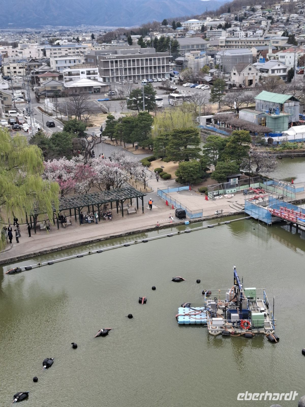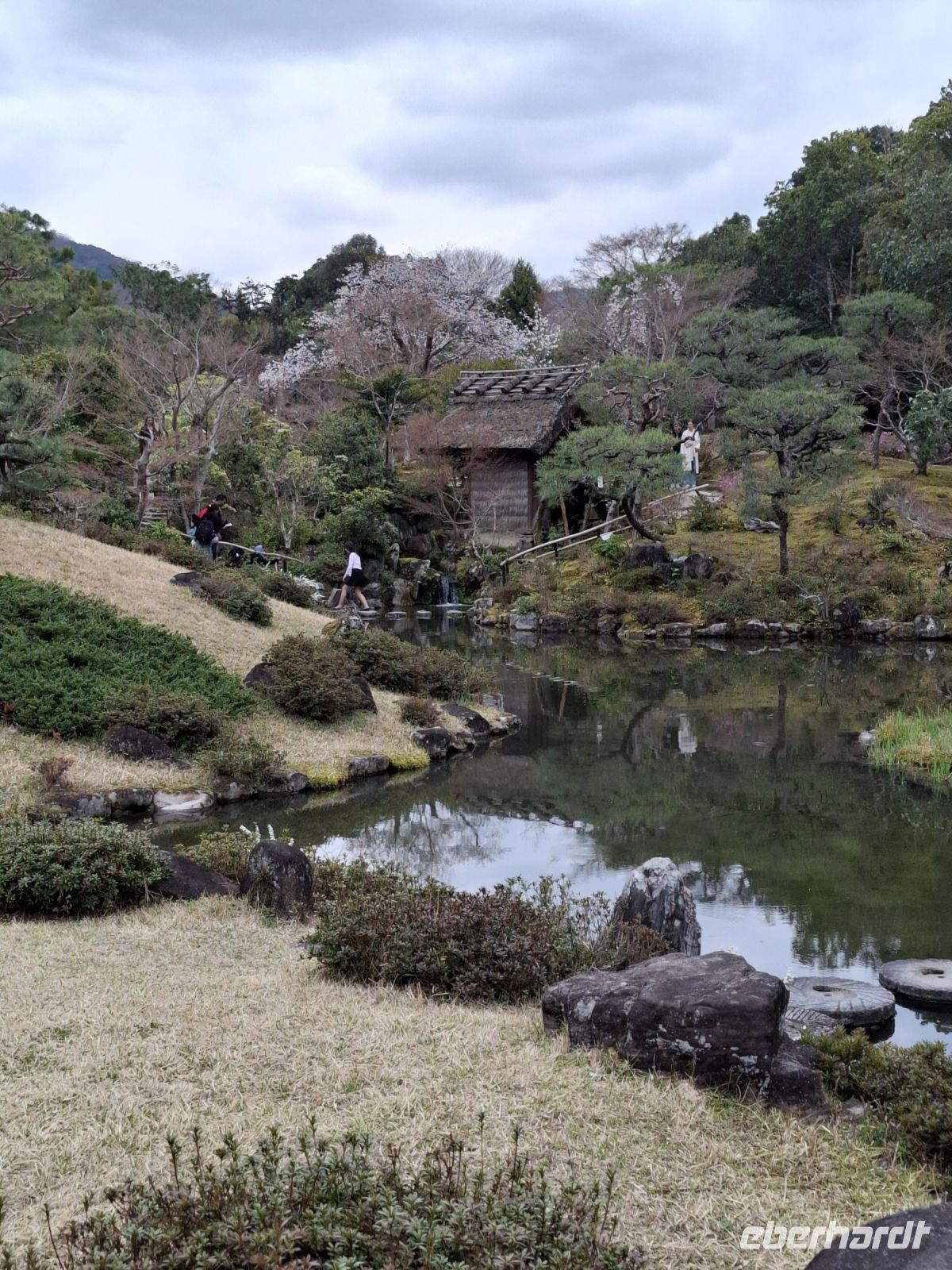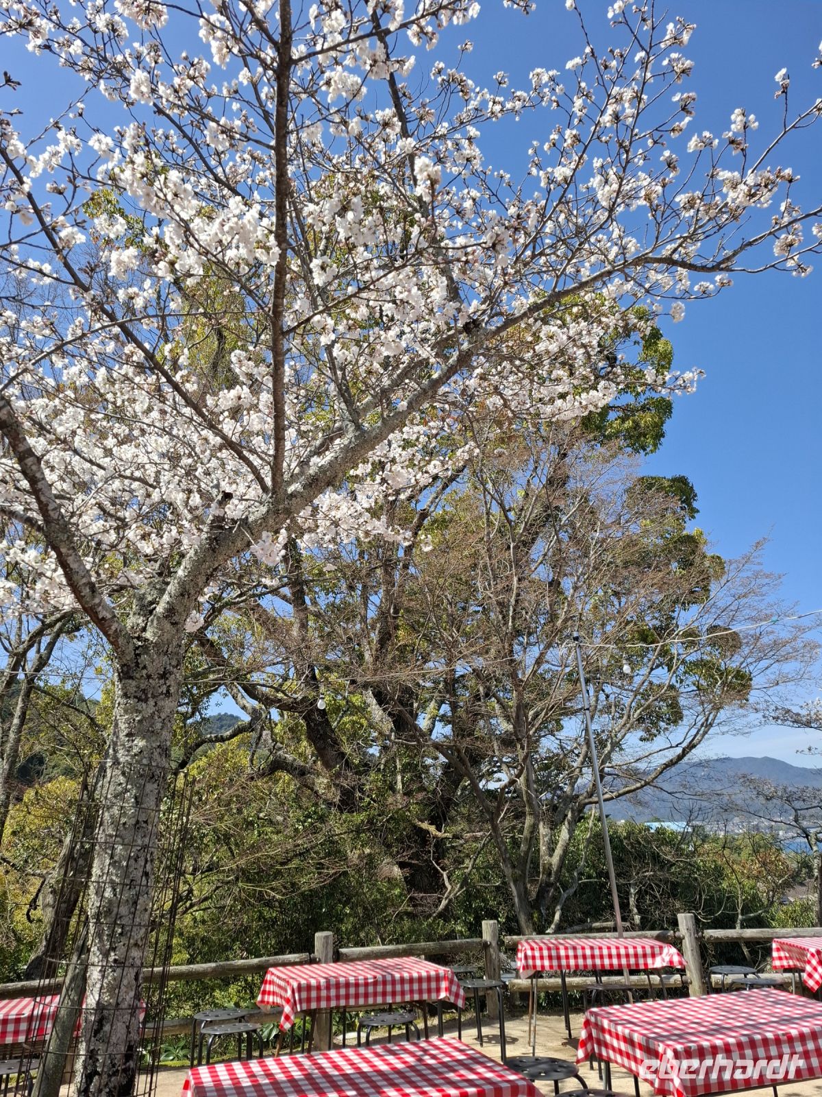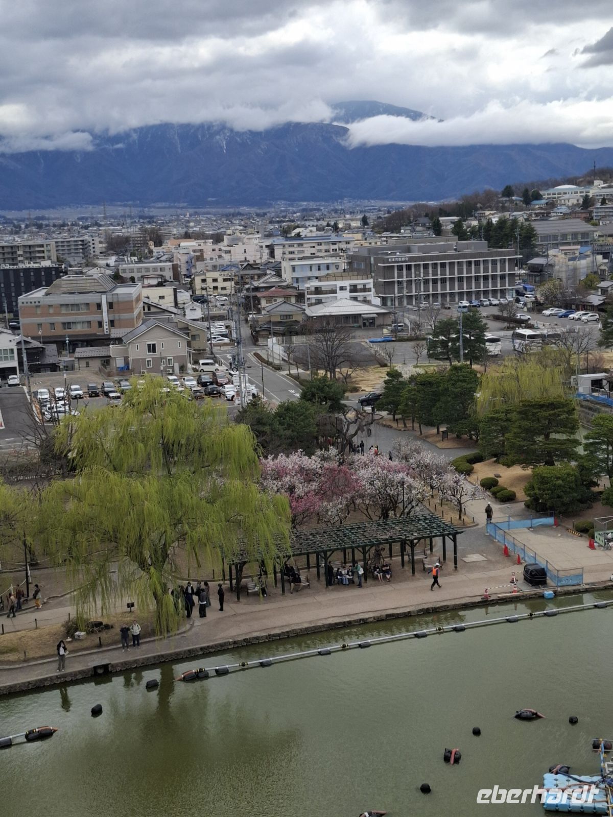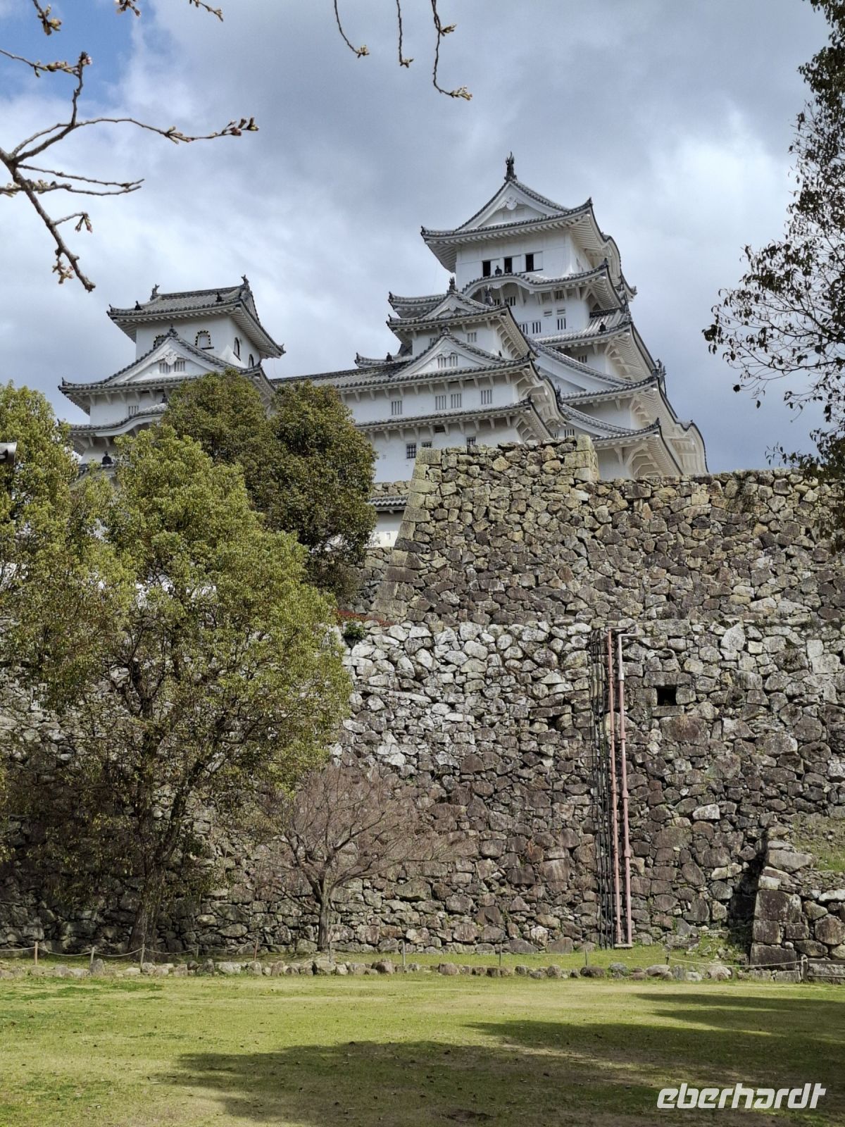 Zeitgleich mit uns checken zwei weitere Gruppen aus dem Hotel in Takayama aus und wir spazieren rund fünf Minuten zum Bahnhof. Unsere Koffer haben wir bereits am Vorabend an der Rezeption abgegeben und nun reisen wir mit kleinem Gepäck weiter. Zunächst fahren wir rund 2,5 Stunden mit dem Zug von Takayama nach Nagoya. Die Landschaft als auch kleinere Städte, Dörfer und einige Wasserkraftanlagen ziehen an unseren Fenstern vorbei. Auf dem Weg sehen wir auch die ersten zarten Kirschblüten am Baum sich öffnen. In Nagoya haben wir rund dreißig Minuten Zeit, um uns ein Bento (ein Mittagssnack) zu kaufen und das Gleis zu wechseln, dann ab jetzt geht es weiter im bekannten japanischen Shinkanzen, der Schnellzug unter den Schnellzügen. Auch hier nehmen wir auf unseren vorreservierten Sitzplätzen Platz und schon legen wir mit rund 300 km/h die Strecke von Nagoya nach Himeji zurück. Nach rund anderthalb Stunden Fahrt erreichen wir Himeji. Das die Burg sehr voll sein wird, merken wir daran, dass wir keine Schließfächer für unser Gepäck finden. Die Lösung ist, dass wir unser Gepäck in einem Laden abstellen dürfen, der mit der Touristinformation zusammen arbeitet und dies innerhalb dieser Kooperation erlaubt. Um Zeit zu sparen, fahren wir dann mit dem Bus vom Hauptbahnhof zur Burg. Dabei lernen wir das japanische Ticketzahlen auch einmal kennen. Schließlich erreichen wir die Burg und erkunden diese gemeinsam mit Gudrun. Die Burg wird seit 1993 durch die UNESCO geschützt und diente schon mehrfach als Kulisse für so manchen Hollywood-Blockbuster. Da die Burg nie angegriffen wurde, ist sie auch noch so gut erhalten. Sie wurde im Jahr 1616 fertig gestellt und mit einer Höhe von 51 Metern, zudem auf einem Hügel stehend, ist dieses Bauwerk so oder so schon ein imposantes Gebäude, auch sehr schönes noch hinzu. Wir strömen mit den Massen hinauf zum Burgareal und genießen sowohl die Blicke auf die Burg als auch auf die Stadt Himeji selbst. Gudrun führt uns auch durch die zwei Gartenanlagen der Burg und hier sehen wir sie nun richtig, die beginnenden Kirschblüte mit den weißen und rosafarbenen Blüten. Da wir durch die vielen Menschen im Burgareal viel Zeit verloren haben, fahren wir mit dem Bus zurück zum Hauptbahnhof von Himeji, wo wir unsere Fahrt in einem anderen Shinkanzen weiter fortsetzen in Richtung Hiroshima. Hier angekommen, fahren wir mit Taxen zu unserem gebuchten Hotel. Dieser Abend steht uns frei zur individuellen Gestaltung. Einige meiner Reisegäste nutzen die Gelegenheit, um in einem Restaurant Kugelfisch zu probieren, andere Gäste wiederum spazieren nach einem fakultativen Abendessen in den hotelnahgelegenen Friedenspark, um schon erste Impressionen auf sich wirken zu lassen.