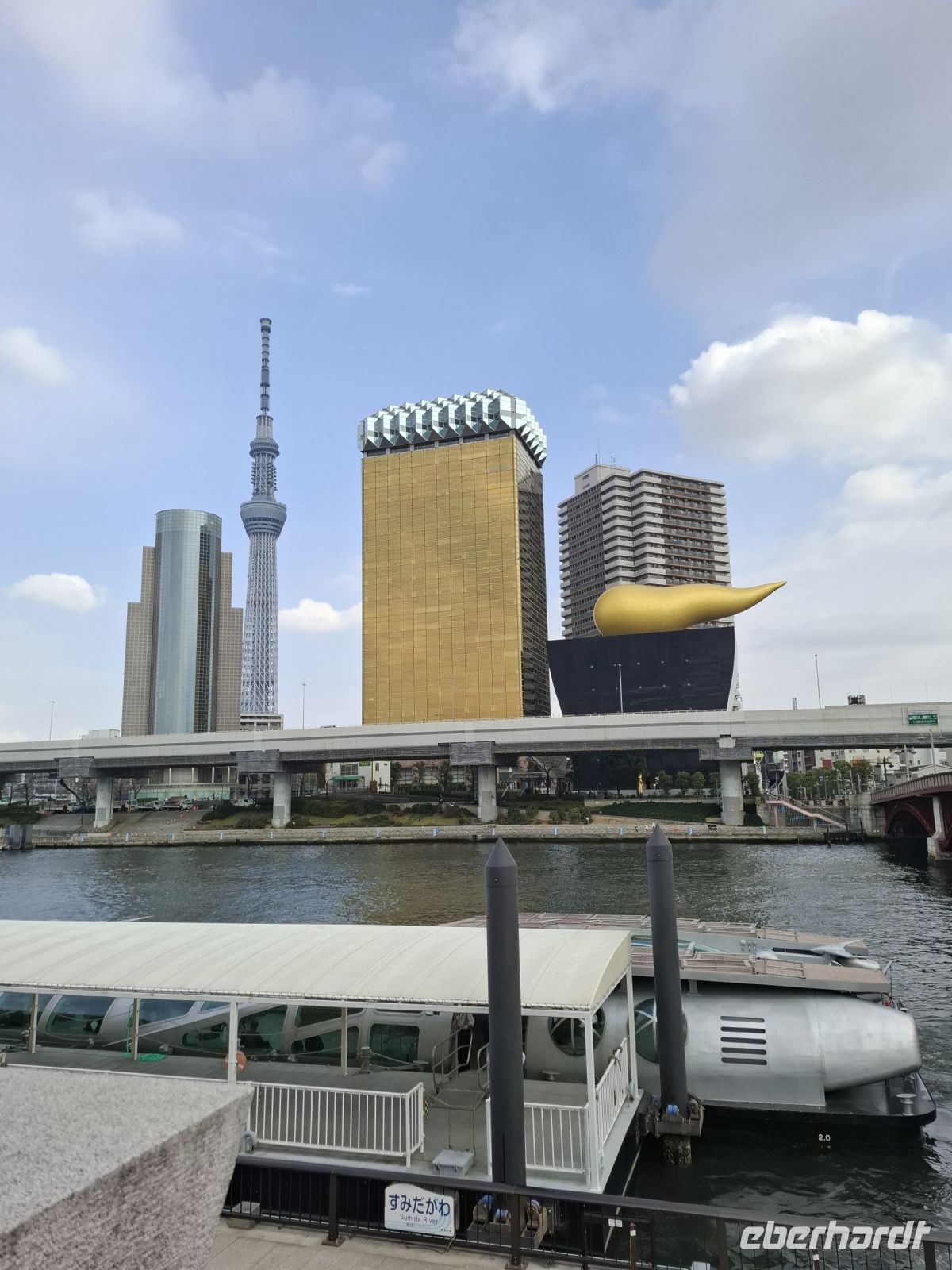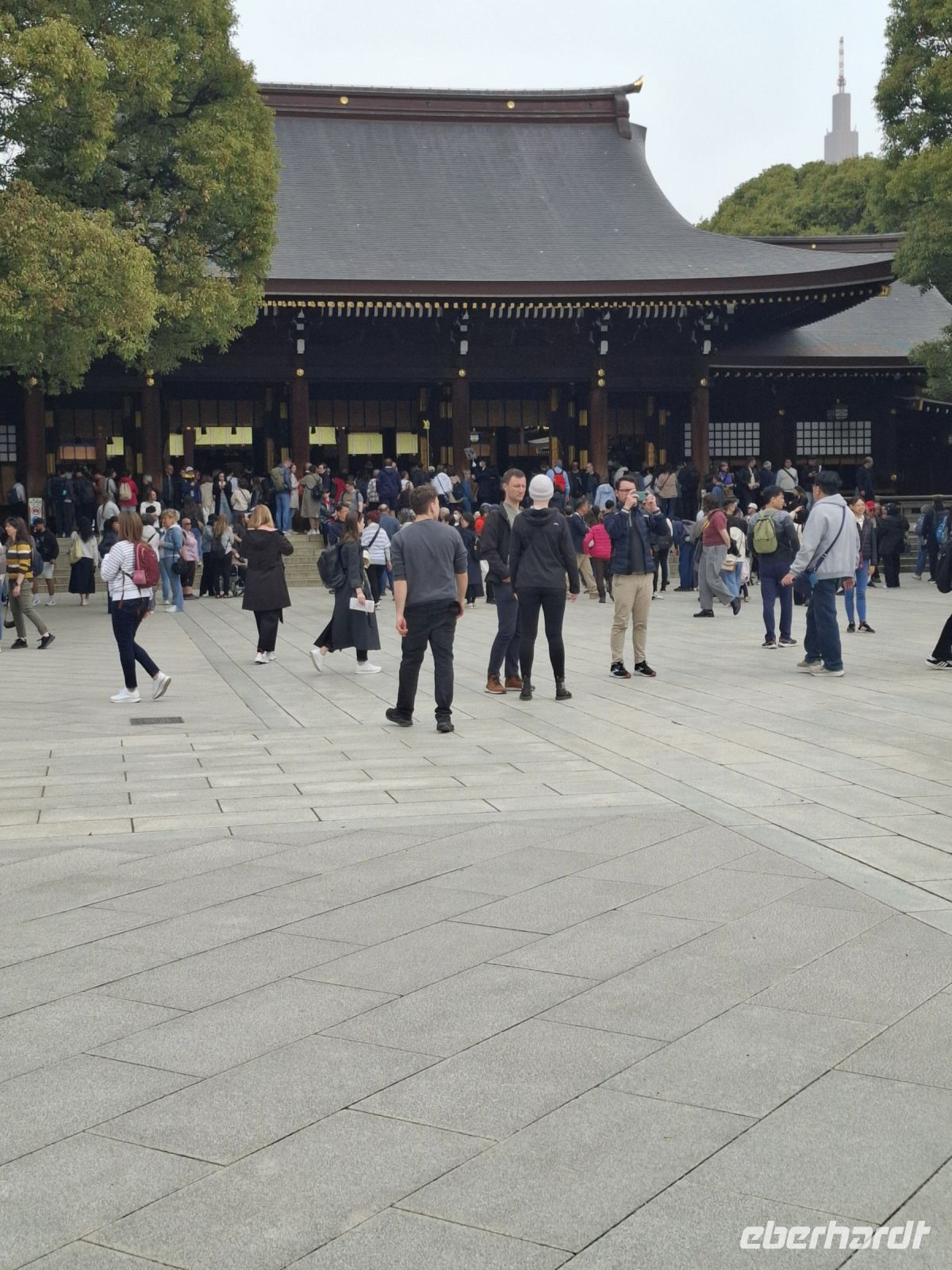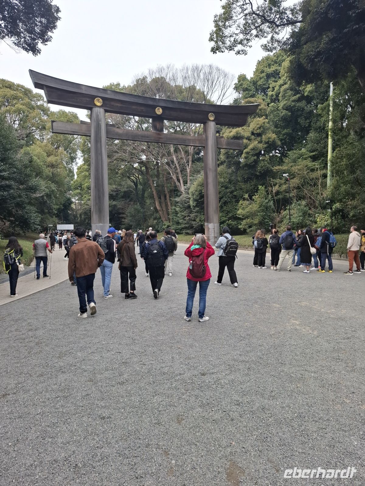 Am Morgen erwartet uns das erste japanische Frühstück auf dieser Reise. Es gibt eine vielfältige Auswahl an Salaten, Sushi, Thunfisch, anderen (rohen) Lachsarten, Meeresfrüchte, Reis aber auch Suppen. Es gibt auch eine kleine internationale Frühstücksecke aber wir probieren uns durch die Köstlichkeiten unseres Gastgeberlandes. Danach beginnen wir unseren Tag und möchten heute gemeinsam mit Gudrun Tokyo entdecken. Unser Chauffeur lenkt seinen Bus geschickt durch die Straßen der Hauptstadt. Dabei passieren wir den alten Fischmarkt und fahren schon einmal durch den Stadtteil Ginza, dem wir später noch einen Besuch abstatten. Wir kommen ebenfalls am Kaiserpalast als auch am Parlamentsgebäude vorbei. Nebenbei erklärt uns Gudrun auch die Systeme des japanischen Alphabets. Weiter auf unserem Weg passieren wir den obersten Gerichtshof und erblicken in der Ferne das Rathaus. Kurz vor der Ankunft am Meiji-Schrein stoppt uns noch der Zugverkehr des größten Bahnhofs der Welt, Shinjuku, der über 100 Ausgänge besitzt und tagtäglich über 3 Millionen Menschen abfertigt. Am Meiji-Schrein nimmt uns Gudrun mit auf eine Führung durch die Anlage, die seit 1920 existiert. Sie zeigt uns die Sake-Fässer sowie die gegenüber befindlichen Weinfässer und führt uns durch das Tor zum Hauptgebäude des Shinto-Schreins. Bei ein wenig freier Zeit können wir unsere Fotos anfertigen währenddessen Gudrun ein Ema für uns kauft. Auf einem Ema schreibt man seine Wünsche für die Gottheit auf und wir lassen Gudrun unsere Wünsche für diese Reise wissen. Nachdem der Ema beschriftet ist, hängt Gudrun es auf und wir hoffen nun auf die Erfüllung unserer Wunschliste. Nach einer kurzen Vorstellungsrunde und unserem "Buddy-Check" kehren wir mit dem Bus nach Ginza zurück, wo wir Zeit für die Mittagspause haben. Diese kann entweder zur Stärkung genutzt werden oder zum Bummeln entlang der teuersten Einkaufsstraße Tokyos sowie zum Bestaunen der Fensterauslagen. Unser nächstes Ziel ist Asukasa, wo wir in der Nähe des Donnertors aussteigen. Wir bummeln entlang der Straße bis zum Fluss Sumida, wo uns Gudrun das architektonisch besonders hervorgehobene Gebäude einer Bierbrauerei zeigt. Im Hintergrund ragt der Skytree auf. Durch einen kleinen unterirdischen Gang spazieren wir zum Areal des Sensoji-Tempels. Auch hier erklärt uns Gudrun alles Wissenswerte rum um die Gebräuche und Traditionen sowie zur Geschichte des Tempels. Danach haben wir nochmals freie Zeit, die wir auf der Ladenstraße Nakamise-dori verbringen. Zahlreiche Souvenirläden und Imbisse sind hier vorhanden und warten darauf, von uns begutachtet zu werden. Mit einem guten Einblick in die Stadt Tokyo kehren wir am späteren Nachmittag zurück zu unserem Hotel.