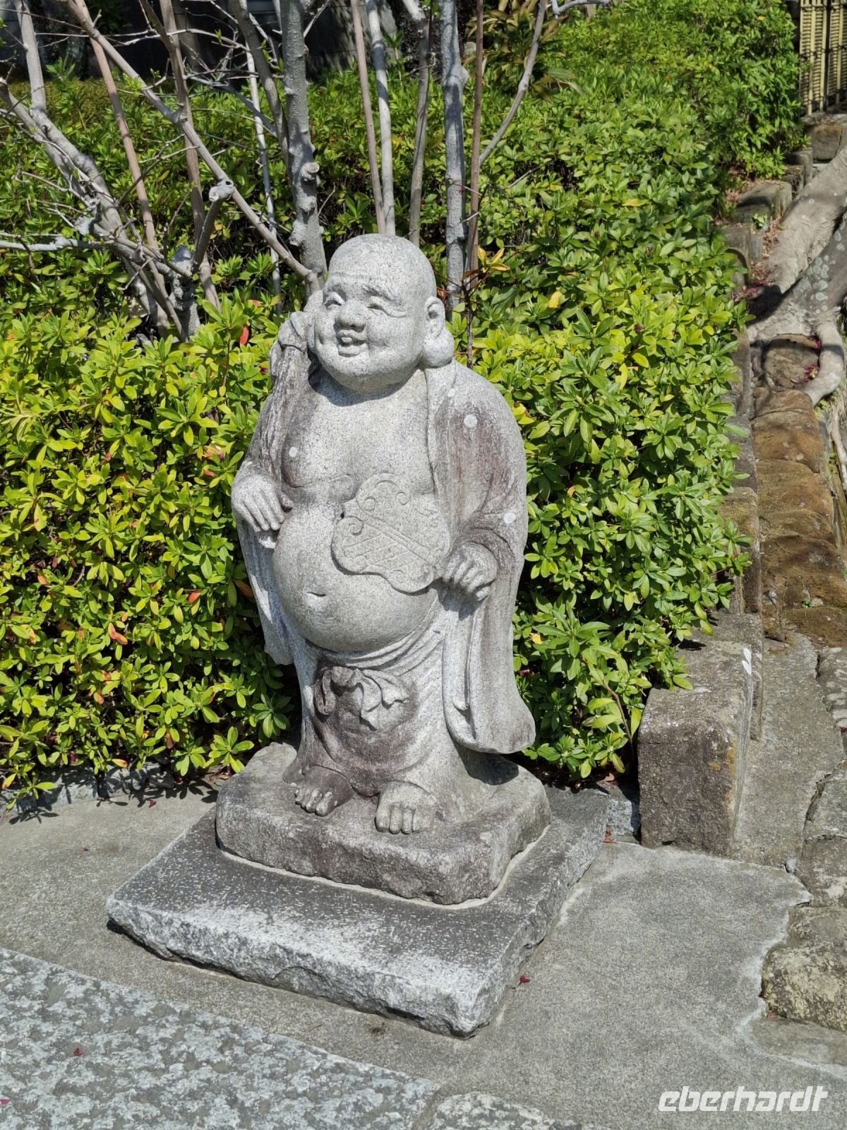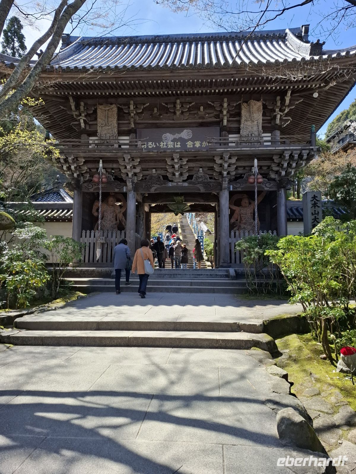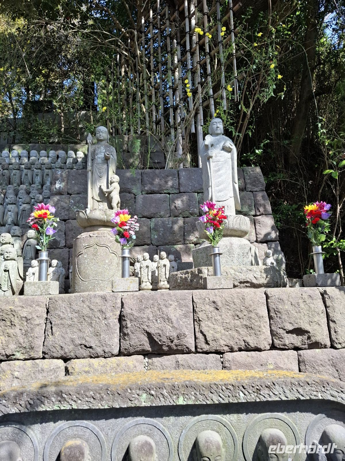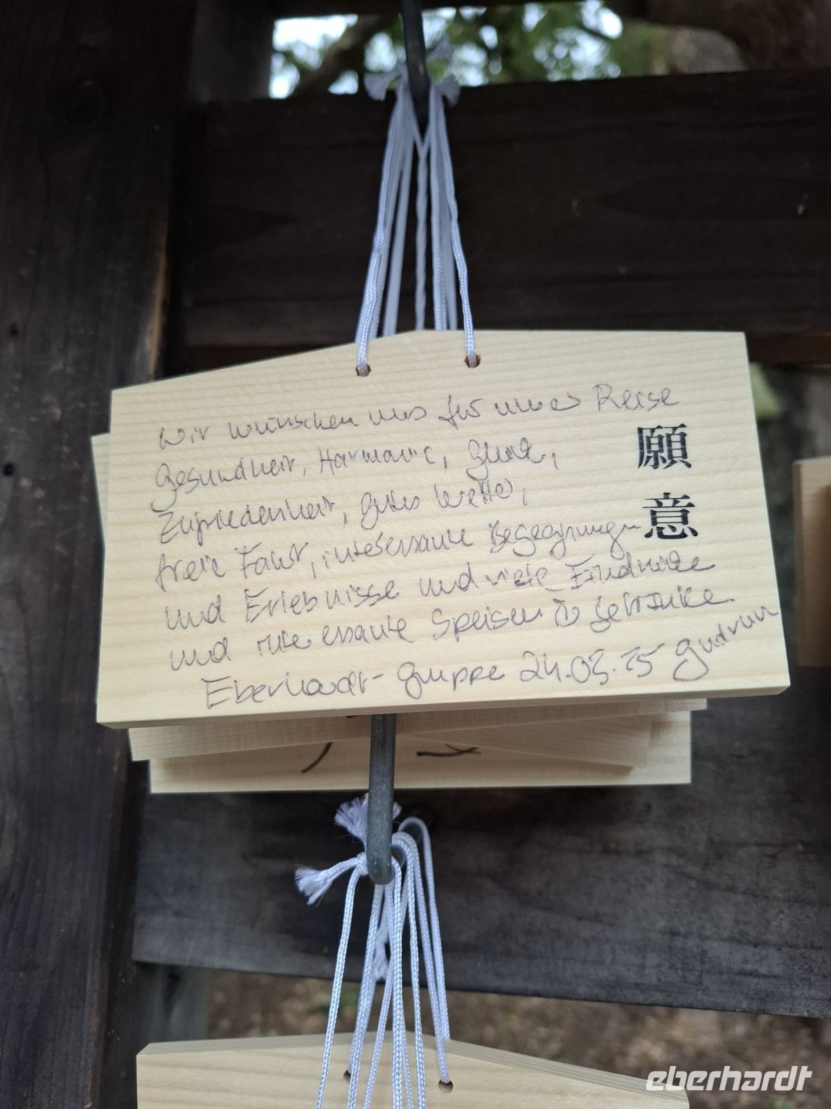 Mit verlassen unser gutes Hotel in Tokyo und treffen uns mit Gepäck am Bus. Wir verabschieden uns von der Präfektur Tokyo und reisen weiter in südliche Richtung. Zunächst befahren wir noch die Autobahnen der japanischen Hauptstadt, die wir schon bald hinter uns lassen aber zunächst lauschen wir noch Gudruns täglicher Weisheit des Tages. Schon nach kurzer Zeit passieren wir das Petrochemiewerk in der Stadt Kawaski auf unserer linken Seiten und nehmen die Brücke namens Yokohama Bay Bridge, die uns näher an unser erstes Ziel am heutigen Tag bringt. Gudrun erzählt uns auf dem Weg nach Kamakura auch alltägliche Dinge wie zum Beispiel die Bedeutung der farbigen Autokennzeichen, denn davon gibt es in Japan drei Stück: weiß, gelb und grün. Nach rund 90minütiger Fahrt erreichen wir die Ortschaft Kamakura, in der heute z.B. einige der wichtigsten japanischen Schriftsteller leben. Die Stadt ist auch sehr beliebt zum Baden in den Sommermonaten Juni und Juli. Heute bestaunen wir aus dem Busfenster hinaus die vielen Surfer, die gegen die Wellen kämpfen und auf einen guten "Ritt" warten. Am dafür vorgesehenen Parkplatz verlassen wir unseren Bus und gemeinsam mit Gudrun gehen wir auf Entdeckungsreise durch die wunderschön angelegte Hasedera-Tempelanlage. Bekannt geworden ist der Tempel durch die Kannon-Statue, die aus massivem Holz besteht. Wir betreten das Areal neben dem Holztor, welches von einem riesigen Lampion geschmückt wird. Die ganze Anlage befindet sich auf zwei, bzw. drei Ebenen. Auf der untersten im Eingangsbereich ist ein wunderschöner Garten mit Teichen angelegt. Daneben gfindet sich befindet sich eine Grotte, die wir in unserer Freizeit besichtigen können. Auf der zweiten Ebene erklärt uns Gudrun den Inari-Schrein mit der Schutzgöttin der Kinder, Jizo-do. Um hier herum sind viele, ja sogar vielleicht hundertere kleine Jizo-Statuen aufgereiht. Auf der dritten Ebene befindet sich das Tempel-Hauptgebäude, in der die Statue der Kannon untergebracht ist. Diese sehr beeindruckende Statue misst eine Größe von fast zehn Metern und auf ihrem Haupt finden sich 11 Köpfe, die die verschiedenen Stufen auf der Suche nach der Erleuchtung repräsentieren. Am Anschluß besuchen wir in Kamakura noch den zweitgrößten in Japan befindlichen Buddha. Er ist 13 Meter hoch, aus Bronze gegossen und ist frei stehend. In seinem Inneren ist er hohl und gegen ein kleines Entgeld kann man das Innere des Buddhas besichtigen. In der Mittagszeit setzen wir unsere Reise fort. Entlang der Küste, die heute sehr staureich ist, fahren wir, vorbei an der Insel Enoshima, zum Ashi-See im Fuji-Nationalpark. Hier besteigen wir ein Piratenschiff und unternehmen eine kleine Seenfahrt, in der Hoffnung, den Fuji-san zu erblicken. Aber leider ist uns das Glück nicht hold aber dennoch hatten wir Spaß während der Fahrt und hoffen morgen auf besseres Wetter. Nicht allzuspät erreichen wir das Ryokan, ein traditionelles japanisches Hotel, wo unsere Gäste heute Nacht die Gelegenheit haben, auf einem Futon ihren Schlaf zu finden. Aber zuvor treffen wir uns zu einem japanischen Abendessen ganz traditionell im Kymono bekleidet.