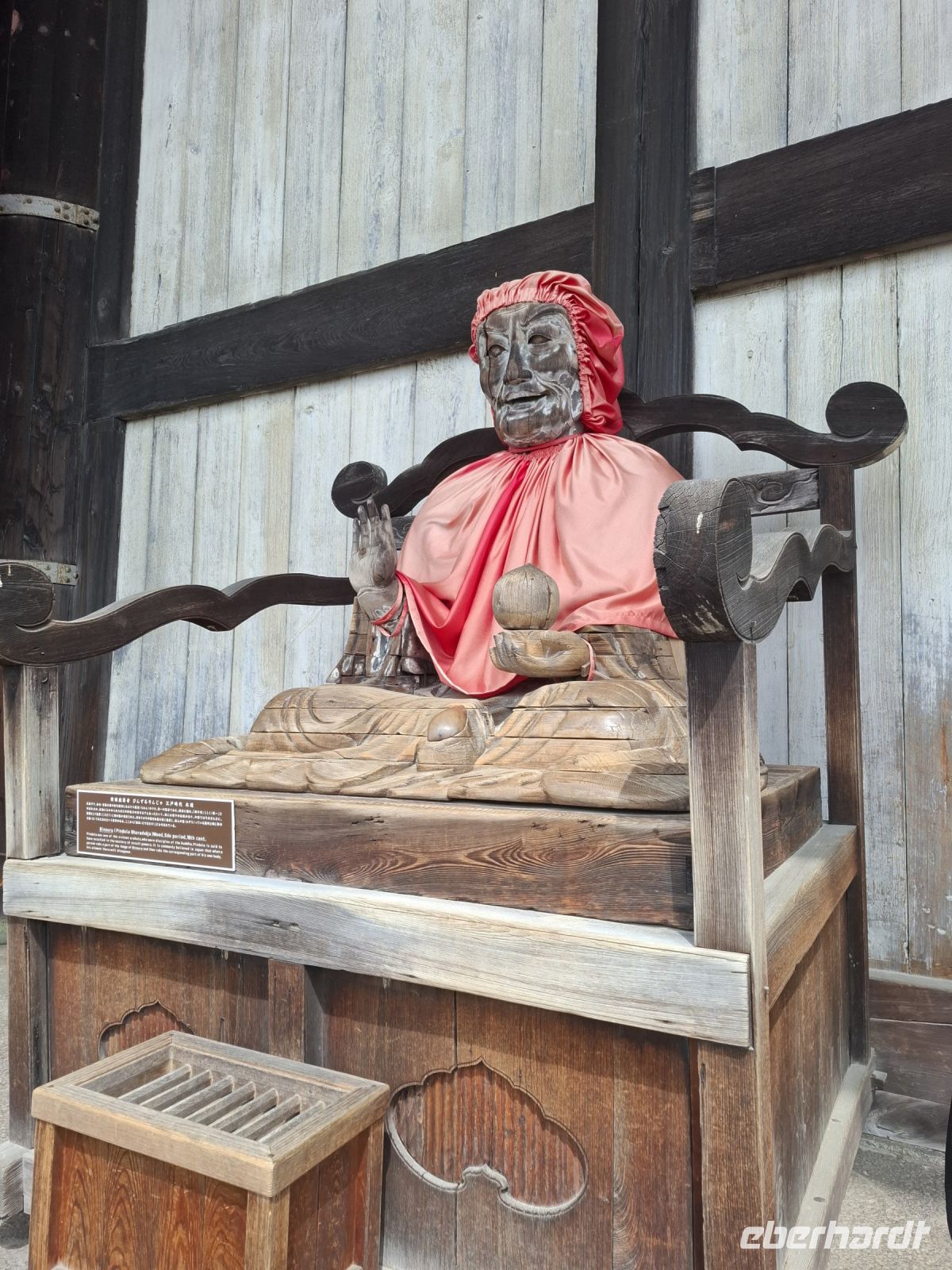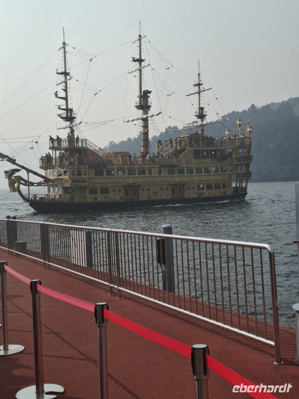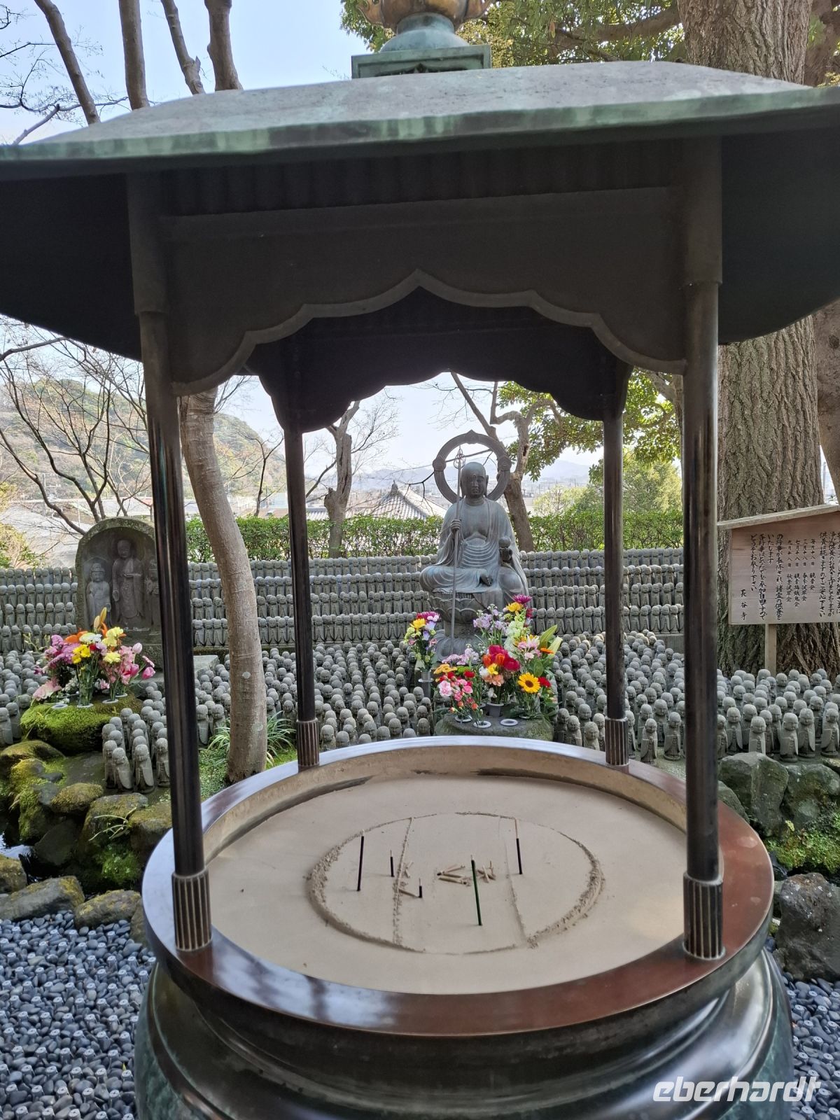 Mit verlassen unser gutes Hotel in Tokyo und treffen uns mit Gepäck am Bus. Wir verabschieden uns von der Präfektur Tokyo und reisen weiter in südliche Richtung. Zunächst befahren wir noch die Autobahnen der japanischen Hauptstadt, die wir schon bald hinter uns lassen aber zunächst lauschen wir noch Gudruns täglicher Weisheit des Tages. Schon nach kurzer Zeit passieren wir das Petrochemiewerk in der Stadt Kawaski auf unserer linken Seiten und nehmen die Brücke namens Yokohama Bay Bridge, die uns näher an unser erstes Ziel am heutigen Tag bringt. Gudrun erzählt uns auf dem Weg nach Kamakura auch alltägliche Dinge wie zum Beispiel die Bedeutung der farbigen Autokennzeichen, denn davon gibt es in Japan drei Stück: weiß, gelb und grün. Nach rund 90minütiger Fahrt erreichen wir die Ortschaft Kamakura, in der heute z.B. einige der wichtigsten japanischen Schriftsteller leben. Die Stadt ist auch sehr beliebt zum Baden in den Sommermonaten Juni und Juli. Heute bestaunen wir aus dem Busfenster hinaus die vielen Surfer, die gegen die Wellen kämpfen und auf einen guten "Ritt" warten. Am dafür vorgesehenen Parkplatz verlassen wir unseren Bus und gemeinsam mit Gudrun gehen wir auf Entdeckungsreise durch die wunderschön angelegte Hasedera-Tempelanlage. Bekannt geworden ist der Tempel durch die Kannon-Statue, die aus massivem Holz besteht. Wir betreten das Areal neben dem Holztor, welches von einem riesigen Lampion geschmückt wird. Die ganze Anlage befindet sich auf zwei, bzw. drei Ebenen. Auf der untersten im Eingangsbereich ist ein wunderschöner Garten mit Teichen angelegt. Daneben gfindet sich befindet sich eine Grotte, die wir in unserer Freizeit besichtigen können. Auf der zweiten Ebene erklärt uns Gudrun den Inari-Schrein mit der Schutzgöttin der Kinder, Jizo-do. Um hier herum sind viele, ja sogar vielleicht hundertere kleine Jizo-Statuen aufgereiht. Auf der dritten Ebene befindet sich das Tempel-Hauptgebäude, in der die Statue der Kannon untergebracht ist. Diese sehr beeindruckende Statue misst eine Größe von fast zehn Metern und auf ihrem Haupt finden sich 11 Köpfe, die die verschiedenen Stufen auf der Suche nach der Erleuchtung repräsentieren. Am Anschluß besuchen wir in Kamakura noch den zweitgrößten in Japan befindlichen Buddha. Er ist 13 Meter hoch, aus Bronze gegossen und ist frei stehend. In seinem Inneren ist er hohl und gegen ein kleines Entgeld kann man das Innere des Buddhas besichtigen. In der Mittagszeit setzen wir unsere Reise fort. Entlang der Küste, die heute sehr staureich ist, fahren wir, vorbei an der Insel Enoshima, zum Ashi-See im Fuji-Nationalpark. Hier besteigen wir ein Piratenschiff und unternehmen eine kleine Seenfahrt, in der Hoffnung, den Fuji-san zu erblicken. Aber leider ist uns das Glück nicht hold aber dennoch hatten wir Spaß während der Fahrt und hoffen morgen auf besseres Wetter. Nicht allzuspät erreichen wir das Ryokan, ein traditionelles japanisches Hotel, wo unsere Gäste heute Nacht die Gelegenheit haben, auf einem Futon ihren Schlaf zu finden. Aber zuvor treffen wir uns zu einem japanischen Abendessen ganz traditionell im Kymono bekleidet.