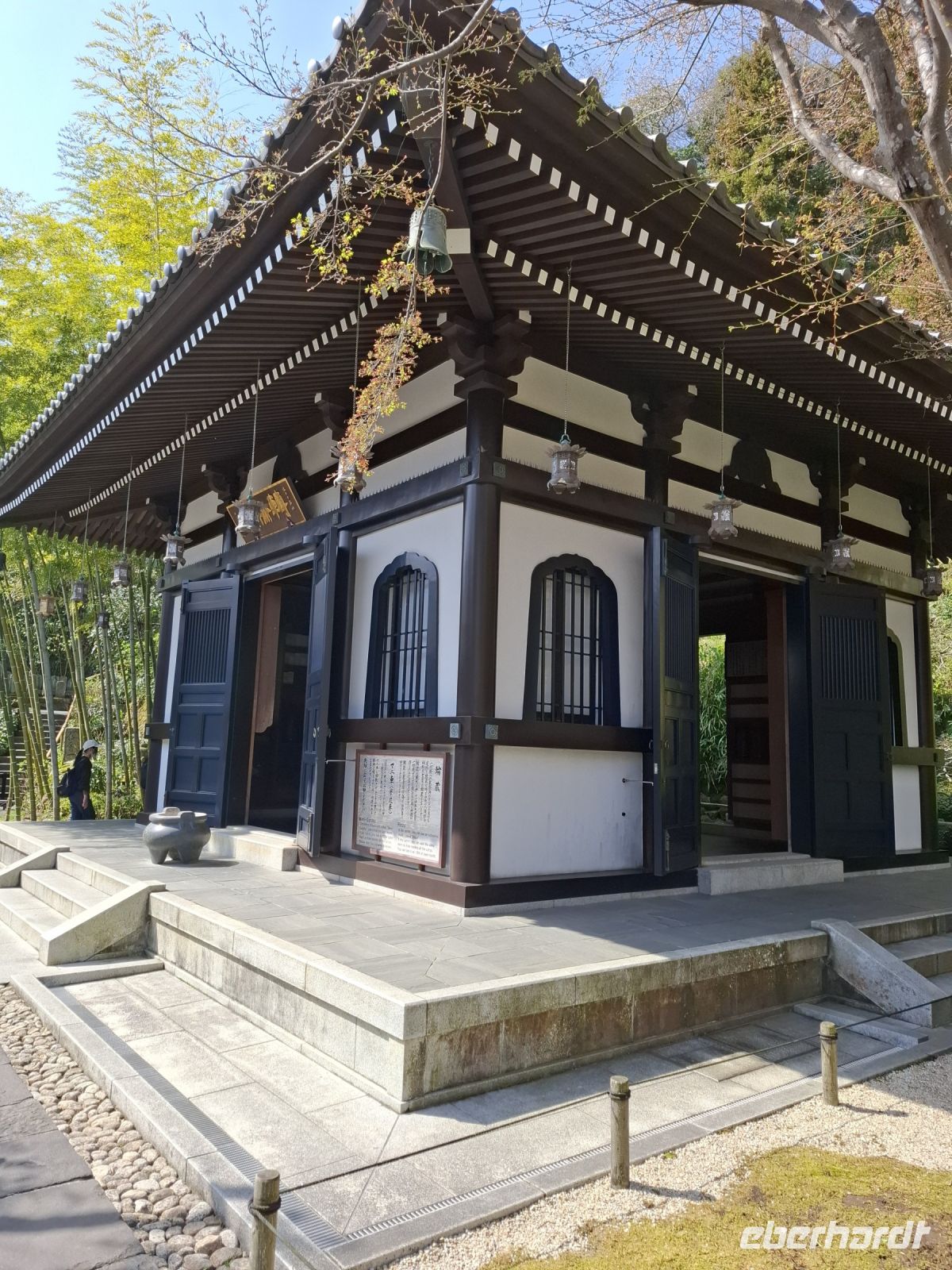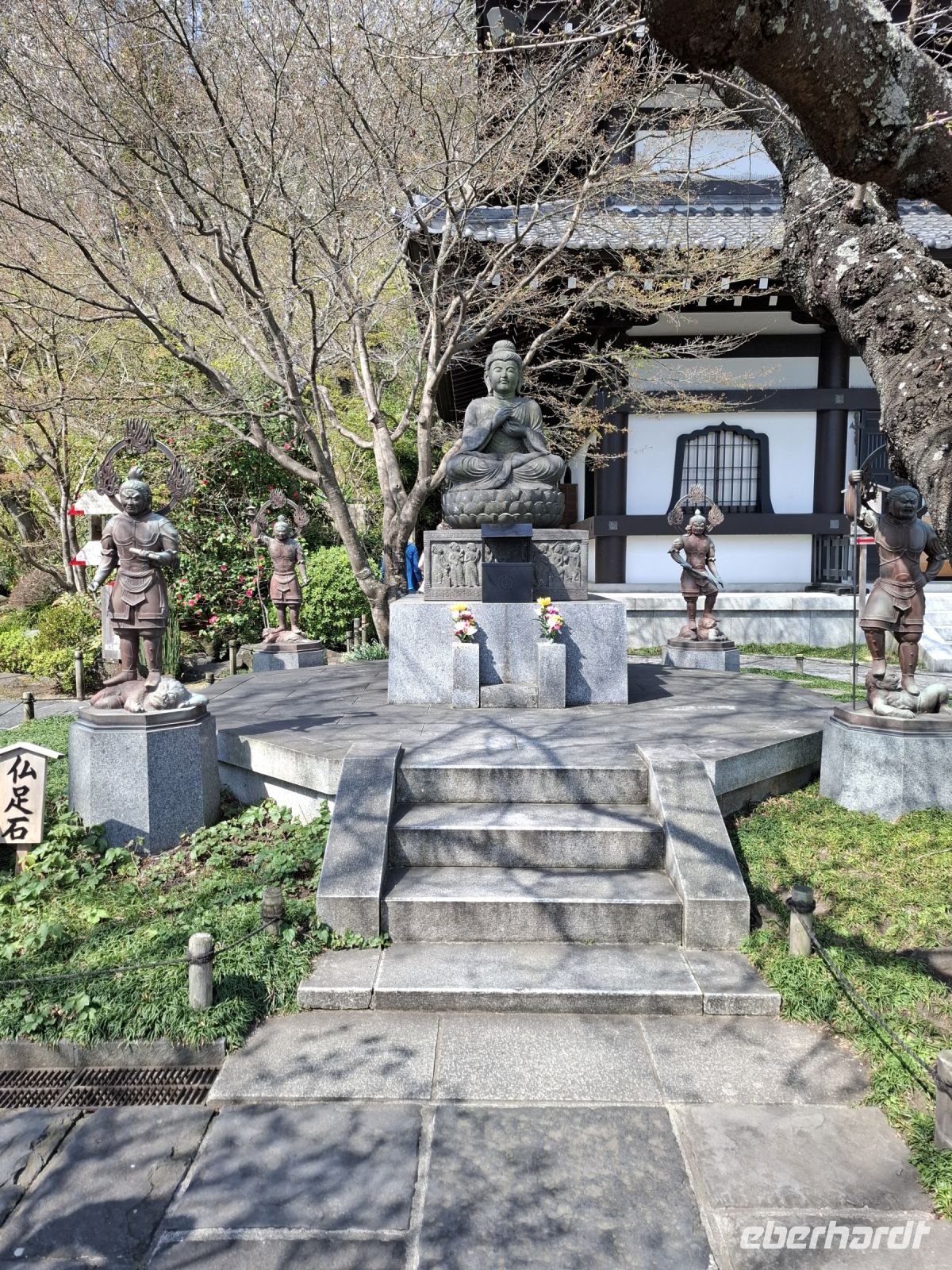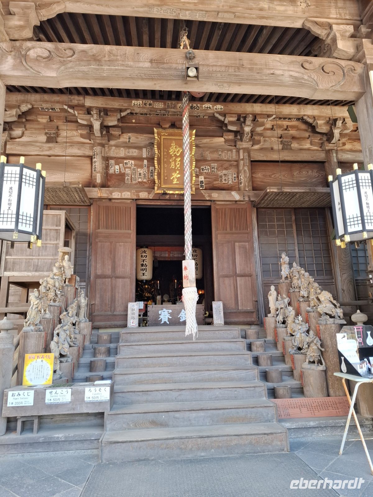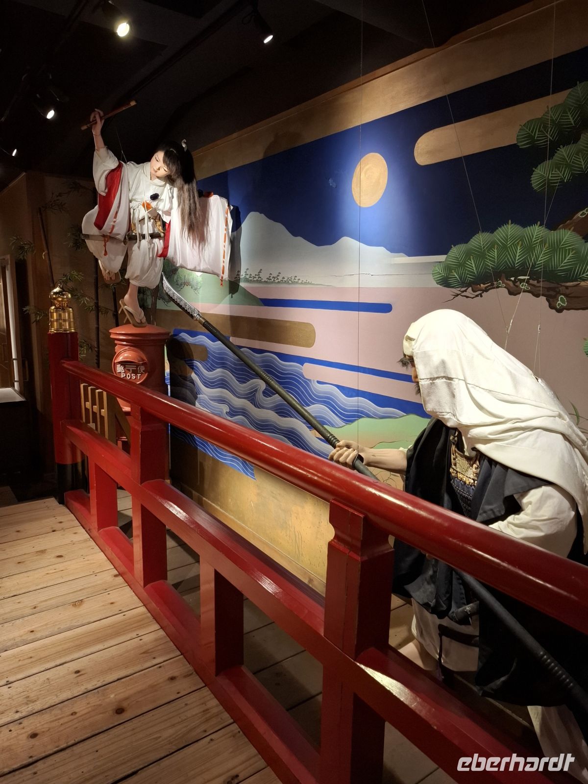 Mit verlassen unser gutes Hotel in Tokyo und treffen uns mit Gepäck am Bus. Wir verabschieden uns von der Präfektur Tokyo und reisen weiter in südliche Richtung. Zunächst befahren wir noch die Autobahnen der japanischen Hauptstadt, die wir schon bald hinter uns lassen aber zunächst lauschen wir noch Gudruns täglicher Weisheit des Tages. Schon nach kurzer Zeit passieren wir das Petrochemiewerk in der Stadt Kawaski auf unserer linken Seiten und nehmen die Brücke namens Yokohama Bay Bridge, die uns näher an unser erstes Ziel am heutigen Tag bringt. Gudrun erzählt uns auf dem Weg nach Kamakura auch alltägliche Dinge wie zum Beispiel die Bedeutung der farbigen Autokennzeichen, denn davon gibt es in Japan drei Stück: weiß, gelb und grün. Nach rund 90minütiger Fahrt erreichen wir die Ortschaft Kamakura, in der heute z.B. einige der wichtigsten japanischen Schriftsteller leben. Die Stadt ist auch sehr beliebt zum Baden in den Sommermonaten Juni und Juli. Heute bestaunen wir aus dem Busfenster hinaus die vielen Surfer, die gegen die Wellen kämpfen und auf einen guten "Ritt" warten. Am dafür vorgesehenen Parkplatz verlassen wir unseren Bus und gemeinsam mit Gudrun gehen wir auf Entdeckungsreise durch die wunderschön angelegte Hasedera-Tempelanlage. Bekannt geworden ist der Tempel durch die Kannon-Statue, die aus massivem Holz besteht. Wir betreten das Areal neben dem Holztor, welches von einem riesigen Lampion geschmückt wird. Die ganze Anlage befindet sich auf zwei, bzw. drei Ebenen. Auf der untersten im Eingangsbereich ist ein wunderschöner Garten mit Teichen angelegt. Daneben gfindet sich befindet sich eine Grotte, die wir in unserer Freizeit besichtigen können. Auf der zweiten Ebene erklärt uns Gudrun den Inari-Schrein mit der Schutzgöttin der Kinder, Jizo-do. Um hier herum sind viele, ja sogar vielleicht hundertere kleine Jizo-Statuen aufgereiht. Auf der dritten Ebene befindet sich das Tempel-Hauptgebäude, in der die Statue der Kannon untergebracht ist. Diese sehr beeindruckende Statue misst eine Größe von fast zehn Metern und auf ihrem Haupt finden sich 11 Köpfe, die die verschiedenen Stufen auf der Suche nach der Erleuchtung repräsentieren. Am Anschluß besuchen wir in Kamakura noch den zweitgrößten in Japan befindlichen Buddha. Er ist 13 Meter hoch, aus Bronze gegossen und ist frei stehend. In seinem Inneren ist er hohl und gegen ein kleines Entgeld kann man das Innere des Buddhas besichtigen. In der Mittagszeit setzen wir unsere Reise fort. Entlang der Küste, die heute sehr staureich ist, fahren wir, vorbei an der Insel Enoshima, zum Ashi-See im Fuji-Nationalpark. Hier besteigen wir ein Piratenschiff und unternehmen eine kleine Seenfahrt, in der Hoffnung, den Fuji-san zu erblicken. Aber leider ist uns das Glück nicht hold aber dennoch hatten wir Spaß während der Fahrt und hoffen morgen auf besseres Wetter. Nicht allzuspät erreichen wir das Ryokan, ein traditionelles japanisches Hotel, wo unsere Gäste heute Nacht die Gelegenheit haben, auf einem Futon ihren Schlaf zu finden. Aber zuvor treffen wir uns zu einem japanischen Abendessen ganz traditionell im Kymono bekleidet.