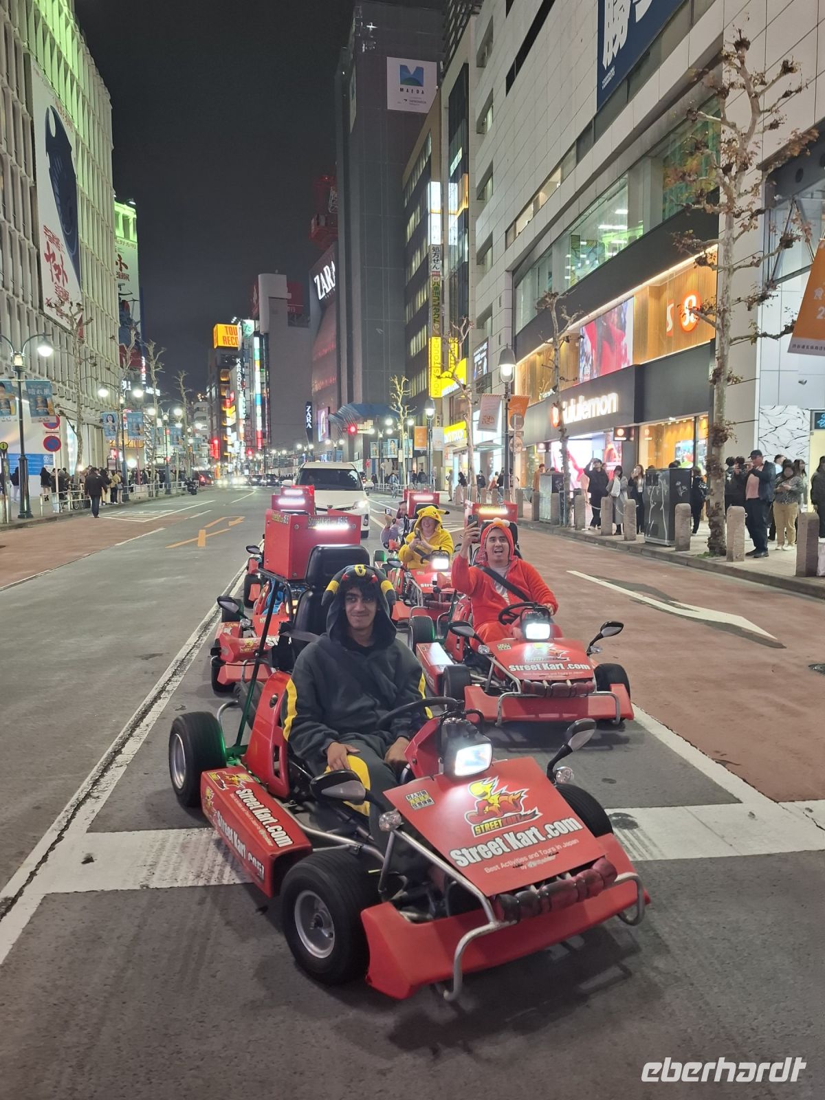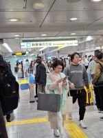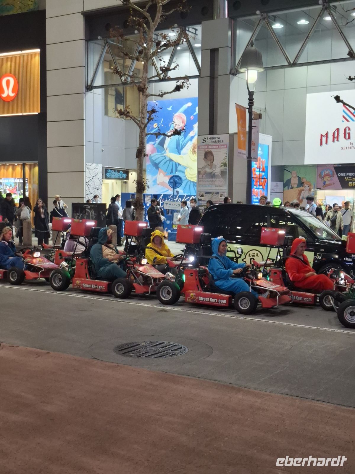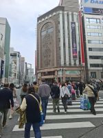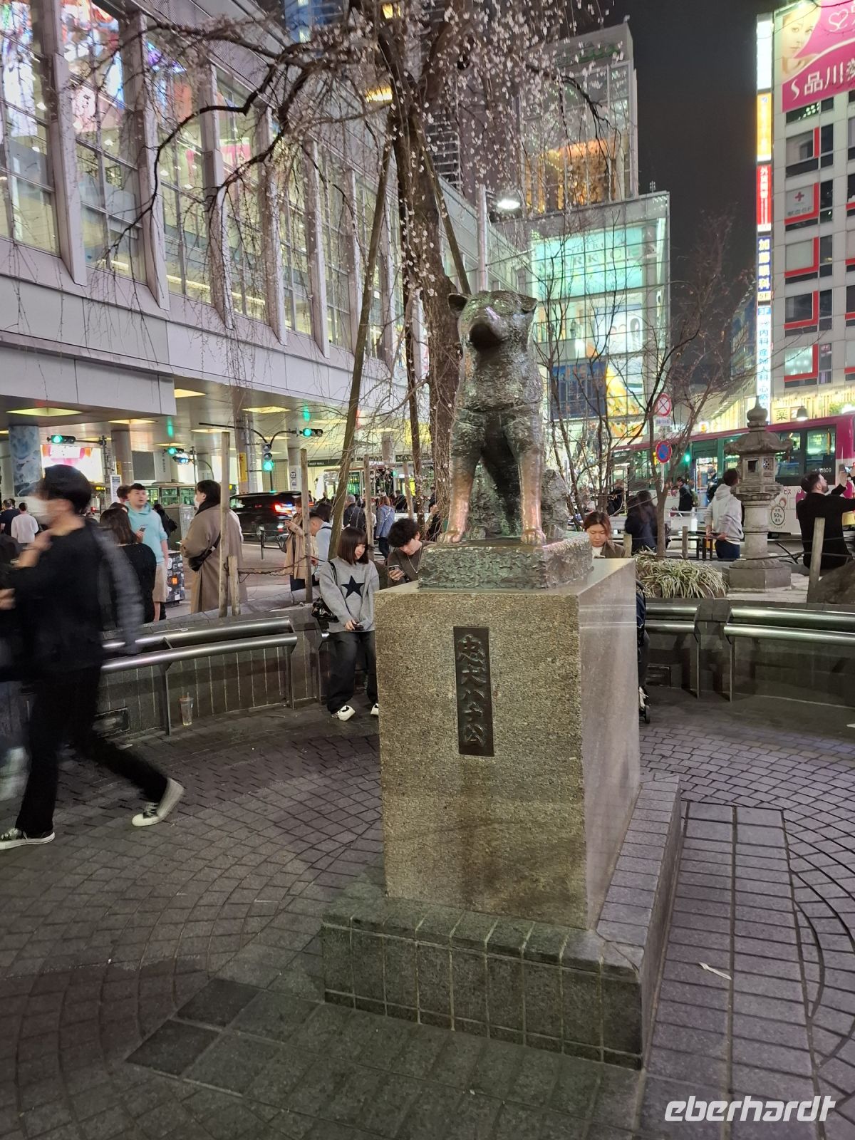 Damit soll der Tag aber noch nicht geendet sein. Wer mag, schließt sich mir für einen Ausflug in den Stadtteil Shibuya an. Mit einer privaten Zuglinie fahren wir zunächst zum Bahnhof Shimbashi, wo wir in die Ginza-Line in Richtung Bahnhof Shibuya umsteigen. Hier verlassen wir das Bahnhofsgebäude und schon beim Ausgang erblicken wir die wohl berühmteste Kreuzung der Stadt, die Shibuya Scramble Crossing. Die Kreuzung wird täglich von bis zu 250.000 Menschen genutzt. Wenn ALLE Fußgängerampeln gleichzeitig auf grün schalten, ist ein Meer aus Menschen von einer auf die andere Seite unterwegs und versucht, nicht ineinander zu laufen. Von oben ein schönes Bild zu filmen und mittendrin zu sein, macht mindestens genauso viel Spaß. Eingebettet ist die Kreuzung in zahlreiche Werbeschildern und bunten Videobildschirmen, so dass es sich auch erst am Abend wirklich lohnt, hierher zu kommen.