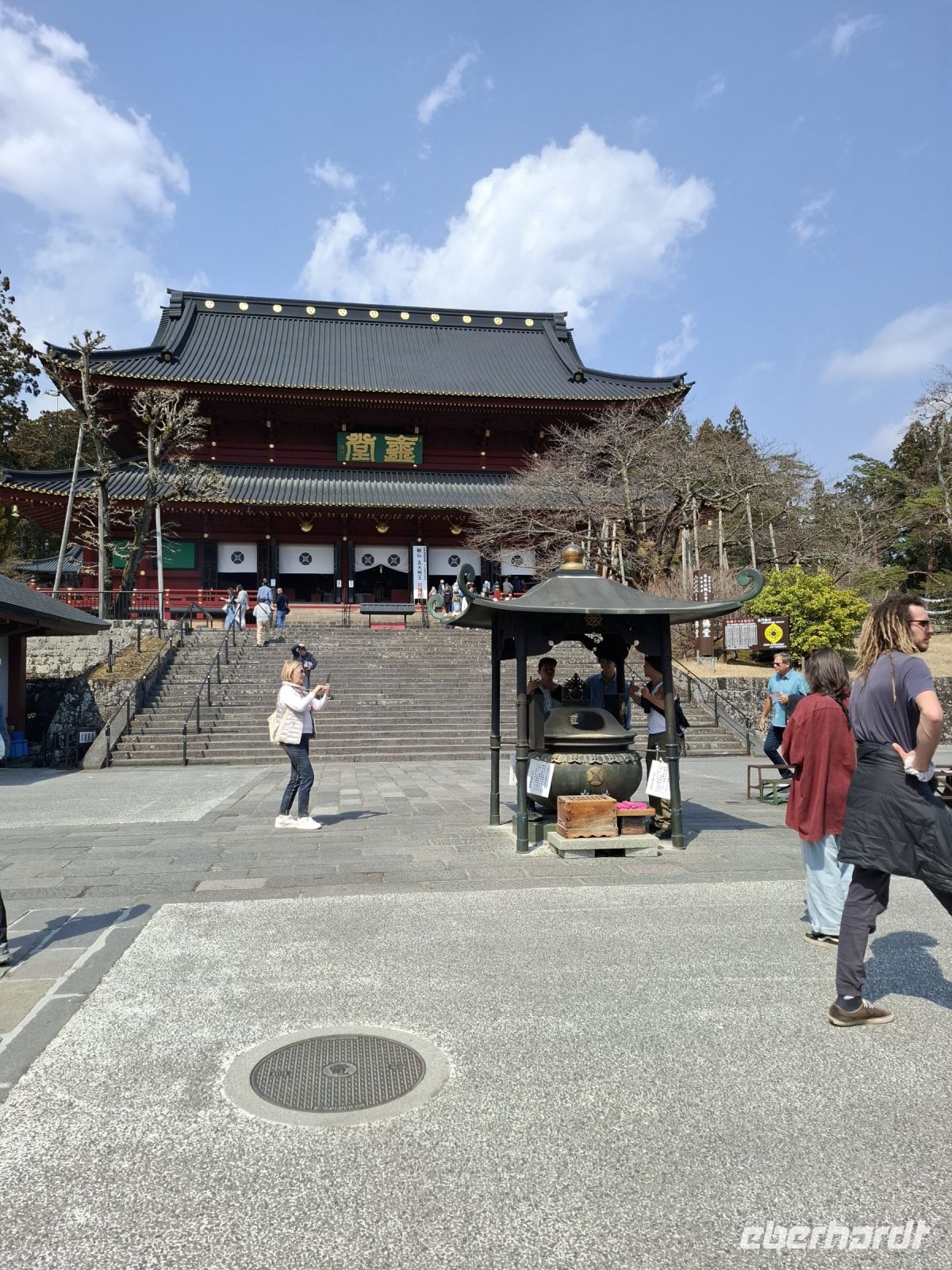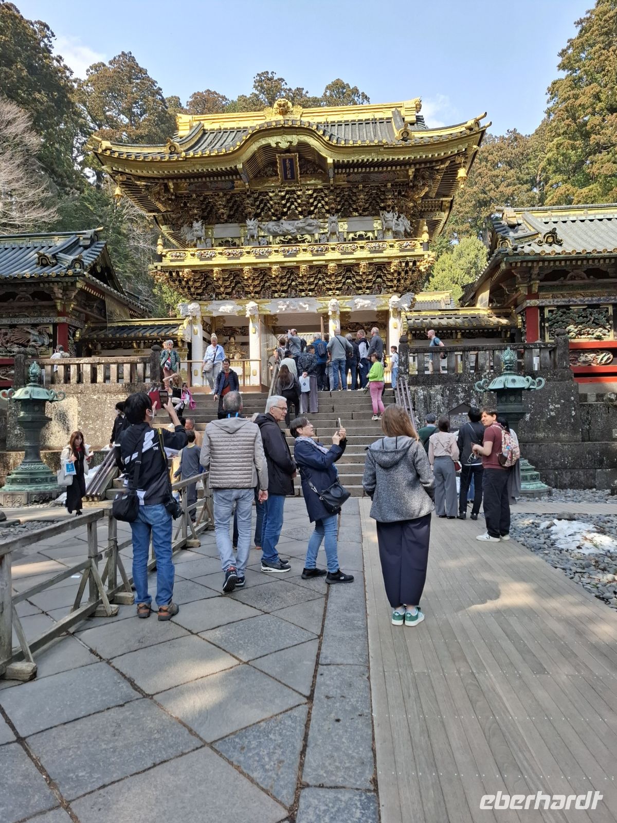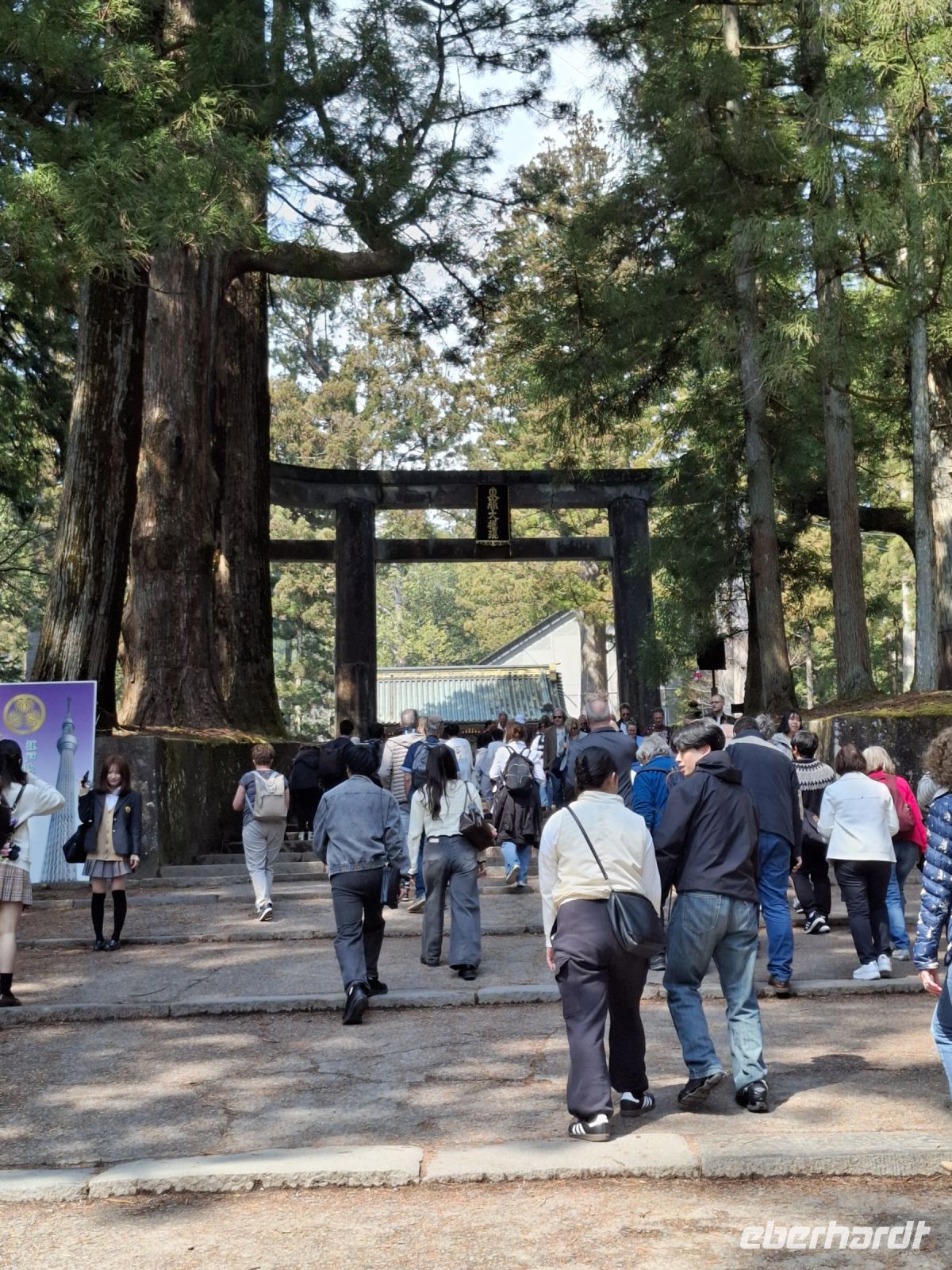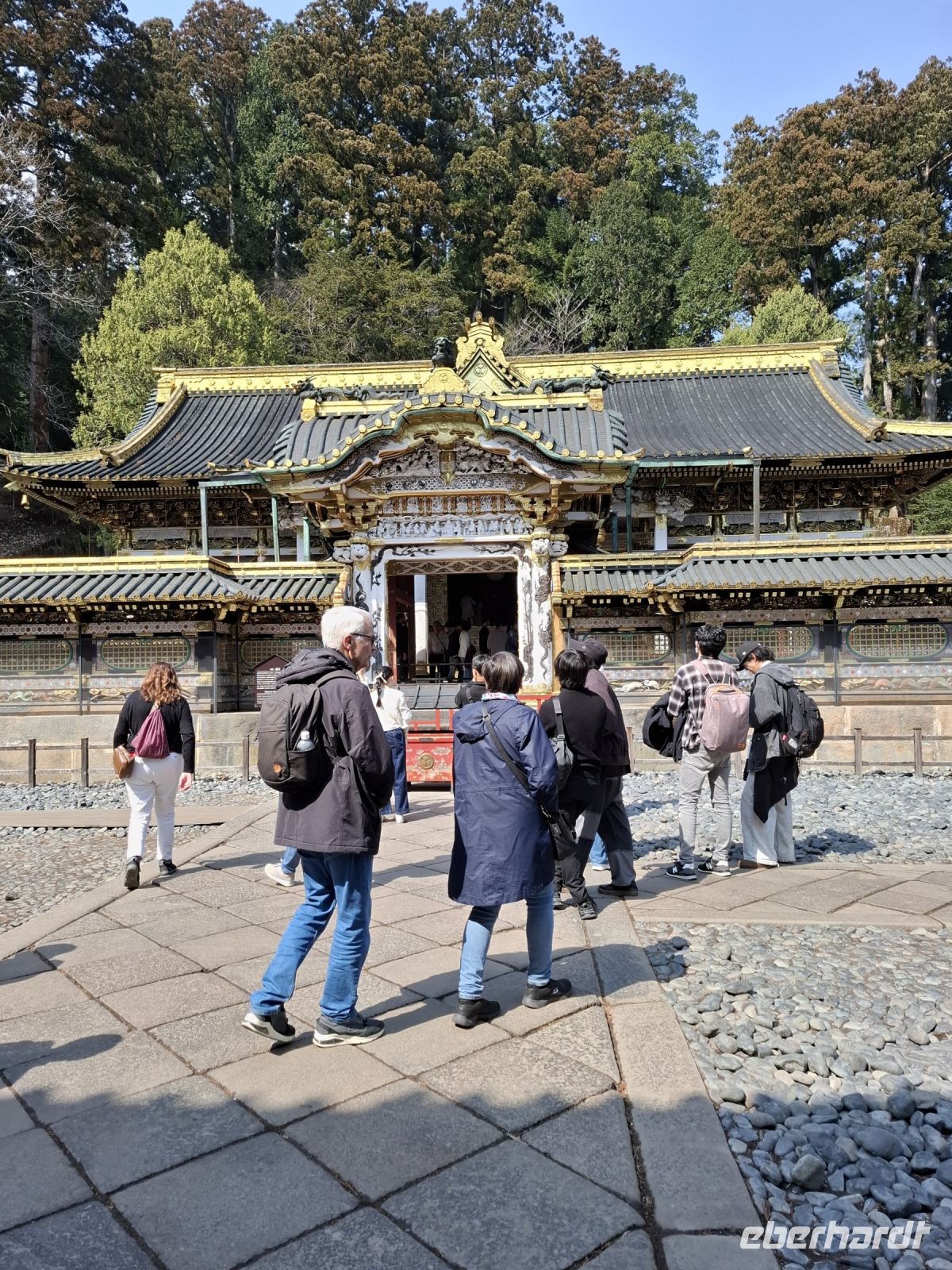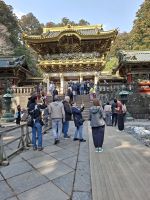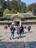 Für unseren heutigen Ausflug verlassen wir Tokyo und haben eine längere Fahrtstrecke vor uns. Da "Engel reisen" haben wir nicht nur schönstes Wetter sondern auch gutes Glück mit dem Verkehr. Es staut sich zwar kurz auf einer der Autobahnen in Tokyo aber nachdem wir die Hauptstadt hinter uns gelassen haben, genießen wir freie Fahrt. Auf dieser gibt uns Gudrun einen allgemeinen Überblick über das Land und so erfahren wir unter anderem, dass im Land vier verschiedene Klimazonen vorherrschend sind, das 2/3 des Landes bewaldet ist und das DIE Sportart der Japaner Baseball ist. Nach einer kurzen Absprache zwischen unserer örtlichen Reiseleiterin und unserem Chauffeur erhalten wir die frohe Nachricht, dass der Verkehr so gut läuft, dass wir sogar den eventuell geplanten Ausflug zum Kegon-Wasserfall unternehmen können. Hinauf entlang 24 Serpentinenkurven erreichen wir schließlich den Chuzenji-See, an dem wir für einen Fotostopp halten und einige meiner Reisegäste sogar eine kleinen Schnellballschlacht machen. Im Anschluss besuchen wir den 97 Meter hohen Kegon-Wasserfall, der höchste Wasserfall des Landes. Hier haben wir ein wenig Zeit für die Mittagspause oder wer mag, fährt mit dem Lift hinunter, um sich den Wasserfall von da aus anzuschauen. Unser nächstes Ziel ist die Kleinstadt Nikko, die wir nach dem erneuten passieren von 24 weiteren Kurven schließlich erreichen. Wir fahren vorbei an der roten Brücke und erreichen den unteren Parkplatz der Schrein-Anlage. Wir verlassen den Bus und spazieren mit Gudrun durch die Anlage, vorbei an einem Schrein sehen wir die Glocke und spazieren zu einem weiteren Gebäude, wo wir kurz einer traditionellen Zeremonie beiwohnen dürfen. Anschließend bewundern wir die fünfstöckige Pagode. Davon gibt es nur noch sehr wenige in Japan. Wir betreten die Haupthalle des Schreins und Gudrun nimmt uns mit auf eine geschichts- und informationsreiche Reise durch die Anlage. Wer mag, kann auch die 207 Treppen zum Mausoleum erklimmen. Mit ganz vielen, neuen Eindrücken kehren wir zum Bus zurück, der uns zurück nach Tokyo bringt. Nach einer technischen Pause lädt uns Gudrun zum Probieren von Taiyaki ein. Dabei handelt es sich Waffeln, wahlweise mit Vanillepudding oder Rote-Bohnen-Muss gefüllt, in Fischform. Es mundet uns und wir danken Gudrun dafür.