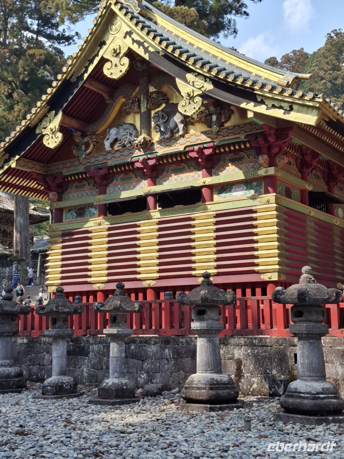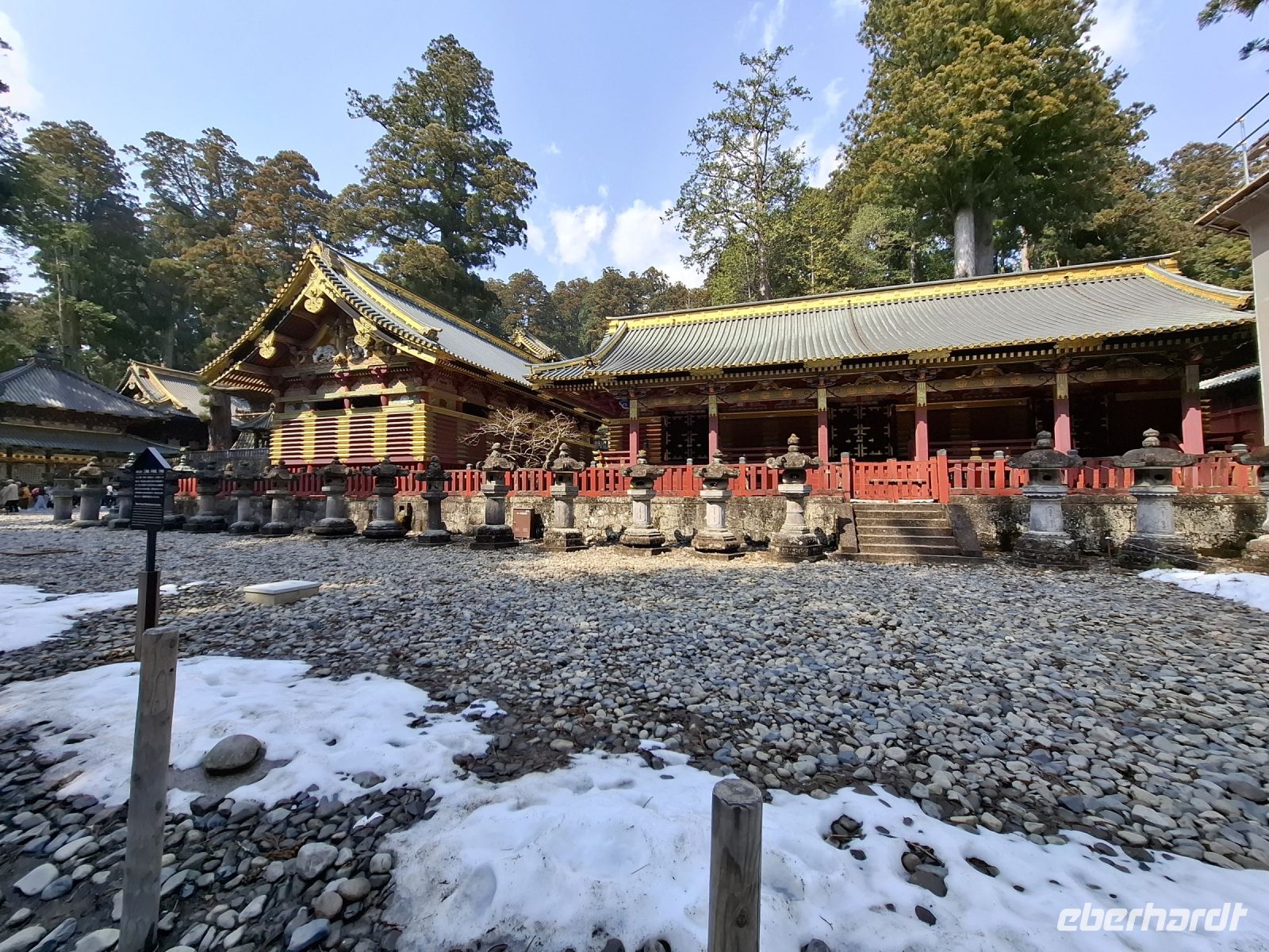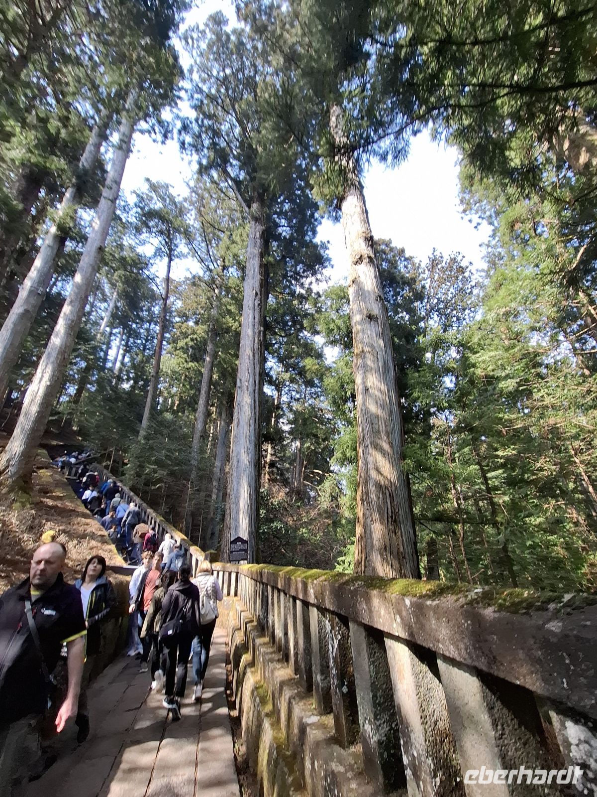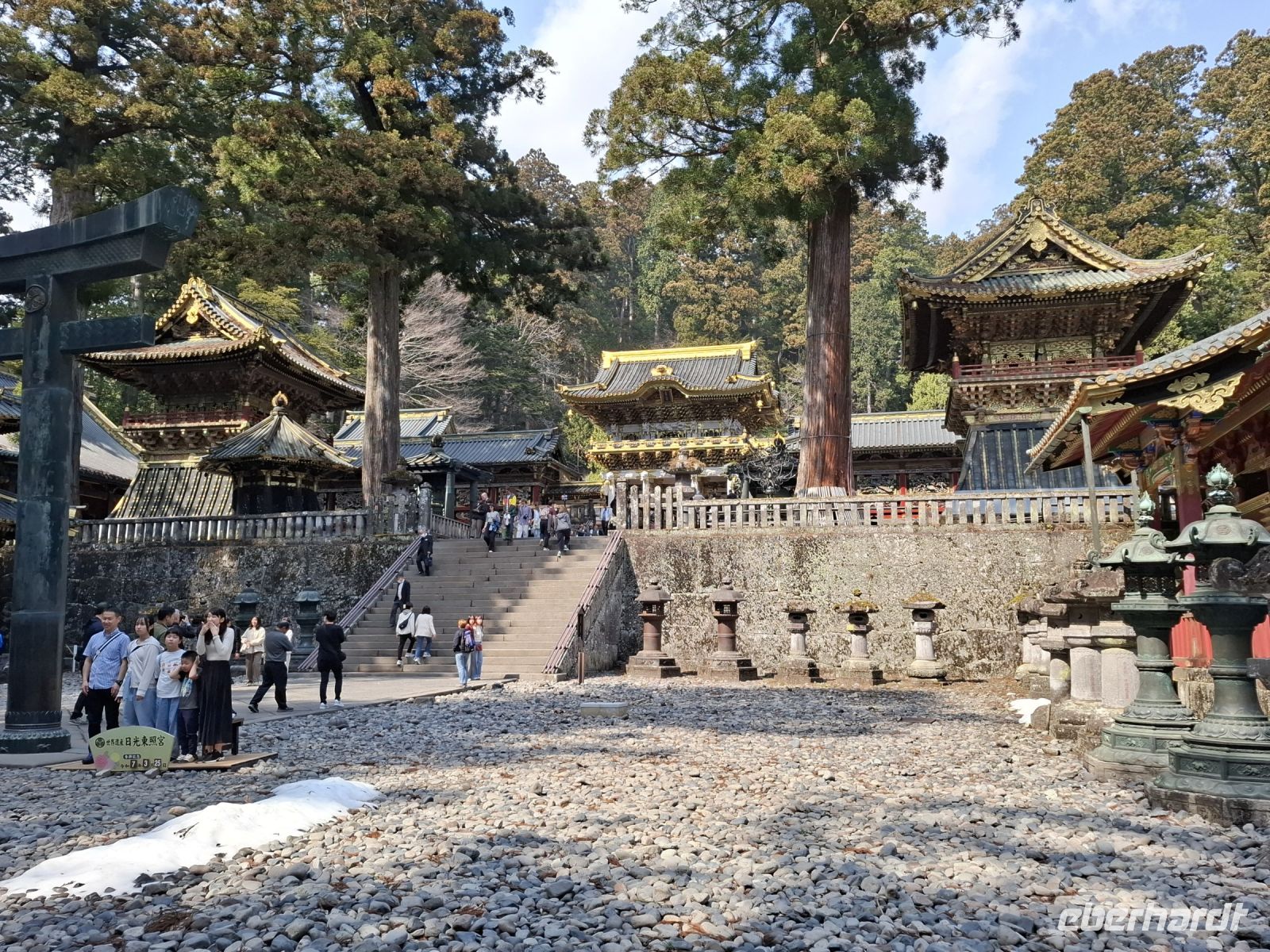 Für unseren heutigen Ausflug verlassen wir Tokyo und haben eine längere Fahrtstrecke vor uns. Da "Engel reisen" haben wir nicht nur schönstes Wetter sondern auch gutes Glück mit dem Verkehr. Es staut sich zwar kurz auf einer der Autobahnen in Tokyo aber nachdem wir die Hauptstadt hinter uns gelassen haben, genießen wir freie Fahrt. Auf dieser gibt uns Gudrun einen allgemeinen Überblick über das Land und so erfahren wir unter anderem, dass im Land vier verschiedene Klimazonen vorherrschend sind, das 2/3 des Landes bewaldet ist und das DIE Sportart der Japaner Baseball ist. Nach einer kurzen Absprache zwischen unserer örtlichen Reiseleiterin und unserem Chauffeur erhalten wir die frohe Nachricht, dass der Verkehr so gut läuft, dass wir sogar den eventuell geplanten Ausflug zum Kegon-Wasserfall unternehmen können. Hinauf entlang 24 Serpentinenkurven erreichen wir schließlich den Chuzenji-See, an dem wir für einen Fotostopp halten und einige meiner Reisegäste sogar eine kleinen Schnellballschlacht machen. Im Anschluss besuchen wir den 97 Meter hohen Kegon-Wasserfall, der höchste Wasserfall des Landes. Hier haben wir ein wenig Zeit für die Mittagspause oder wer mag, fährt mit dem Lift hinunter, um sich den Wasserfall von da aus anzuschauen. Unser nächstes Ziel ist die Kleinstadt Nikko, die wir nach dem erneuten passieren von 24 weiteren Kurven schließlich erreichen. Wir fahren vorbei an der roten Brücke und erreichen den unteren Parkplatz der Schrein-Anlage. Wir verlassen den Bus und spazieren mit Gudrun durch die Anlage, vorbei an einem Schrein sehen wir die Glocke und spazieren zu einem weiteren Gebäude, wo wir kurz einer traditionellen Zeremonie beiwohnen dürfen. Anschließend bewundern wir die fünfstöckige Pagode. Davon gibt es nur noch sehr wenige in Japan. Wir betreten die Haupthalle des Schreins und Gudrun nimmt uns mit auf eine geschichts- und informationsreiche Reise durch die Anlage. Wer mag, kann auch die 207 Treppen zum Mausoleum erklimmen. Mit ganz vielen, neuen Eindrücken kehren wir zum Bus zurück, der uns zurück nach Tokyo bringt. Nach einer technischen Pause lädt uns Gudrun zum Probieren von Taiyaki ein. Dabei handelt es sich Waffeln, wahlweise mit Vanillepudding oder Rote-Bohnen-Muss gefüllt, in Fischform. Es mundet uns und wir danken Gudrun dafür.