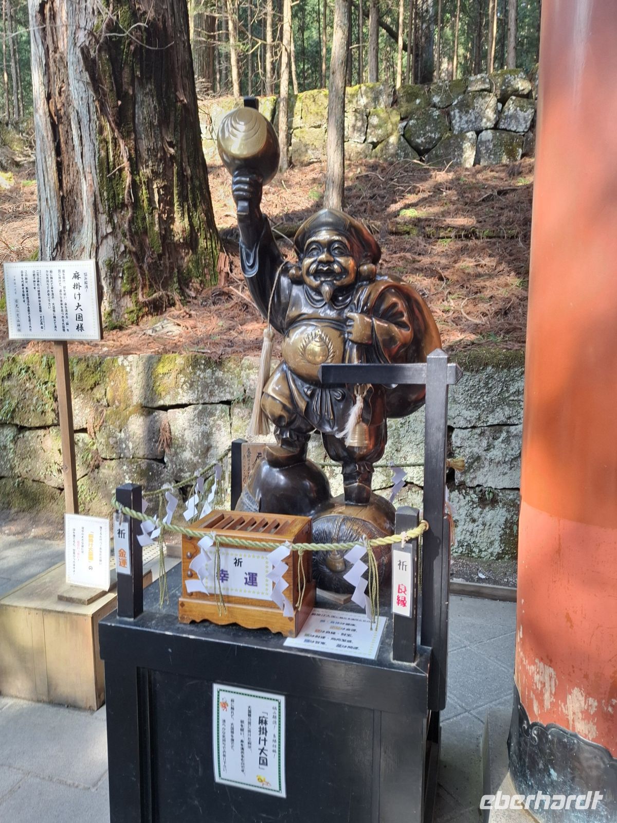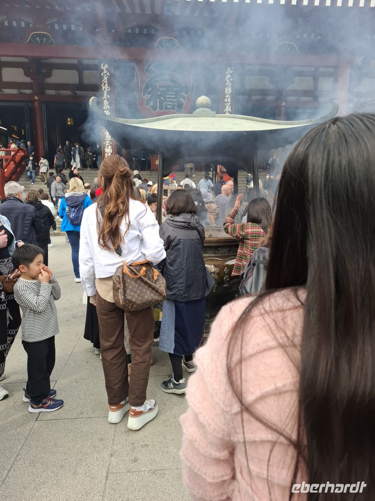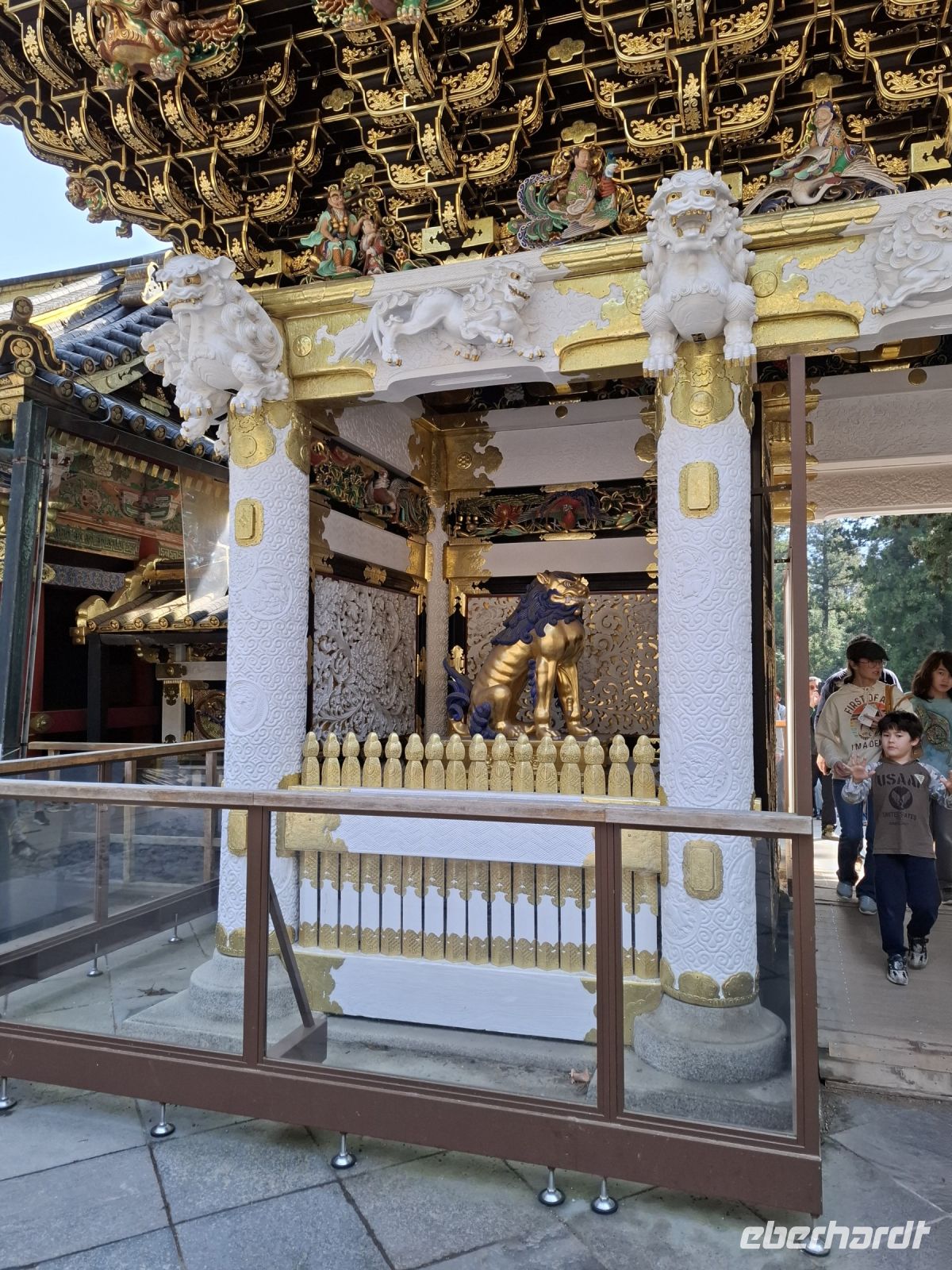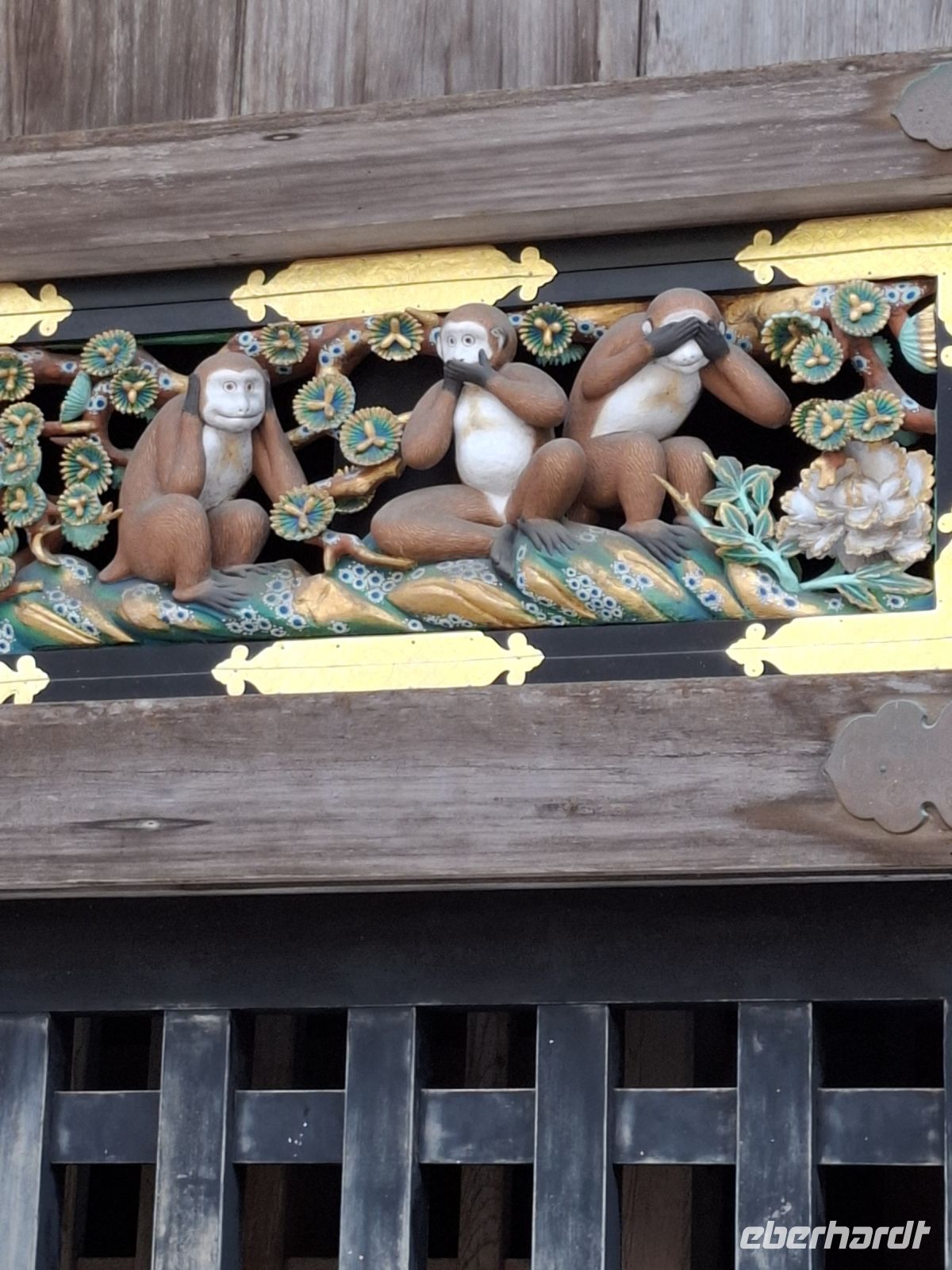 Für unseren heutigen Ausflug verlassen wir Tokyo und haben eine längere Fahrtstrecke vor uns. Da "Engel reisen" haben wir nicht nur schönstes Wetter sondern auch gutes Glück mit dem Verkehr. Es staut sich zwar kurz auf einer der Autobahnen in Tokyo aber nachdem wir die Hauptstadt hinter uns gelassen haben, genießen wir freie Fahrt. Auf dieser gibt uns Gudrun einen allgemeinen Überblick über das Land und so erfahren wir unter anderem, dass im Land vier verschiedene Klimazonen vorherrschend sind, das 2/3 des Landes bewaldet ist und das DIE Sportart der Japaner Baseball ist. Nach einer kurzen Absprache zwischen unserer örtlichen Reiseleiterin und unserem Chauffeur erhalten wir die frohe Nachricht, dass der Verkehr so gut läuft, dass wir sogar den eventuell geplanten Ausflug zum Kegon-Wasserfall unternehmen können. Hinauf entlang 24 Serpentinenkurven erreichen wir schließlich den Chuzenji-See, an dem wir für einen Fotostopp halten und einige meiner Reisegäste sogar eine kleinen Schnellballschlacht machen. Im Anschluss besuchen wir den 97 Meter hohen Kegon-Wasserfall, der höchste Wasserfall des Landes. Hier haben wir ein wenig Zeit für die Mittagspause oder wer mag, fährt mit dem Lift hinunter, um sich den Wasserfall von da aus anzuschauen. Unser nächstes Ziel ist die Kleinstadt Nikko, die wir nach dem erneuten passieren von 24 weiteren Kurven schließlich erreichen. Wir fahren vorbei an der roten Brücke und erreichen den unteren Parkplatz der Schrein-Anlage. Wir verlassen den Bus und spazieren mit Gudrun durch die Anlage, vorbei an einem Schrein sehen wir die Glocke und spazieren zu einem weiteren Gebäude, wo wir kurz einer traditionellen Zeremonie beiwohnen dürfen. Anschließend bewundern wir die fünfstöckige Pagode. Davon gibt es nur noch sehr wenige in Japan. Wir betreten die Haupthalle des Schreins und Gudrun nimmt uns mit auf eine geschichts- und informationsreiche Reise durch die Anlage. Wer mag, kann auch die 207 Treppen zum Mausoleum erklimmen. Mit ganz vielen, neuen Eindrücken kehren wir zum Bus zurück, der uns zurück nach Tokyo bringt. Nach einer technischen Pause lädt uns Gudrun zum Probieren von Taiyaki ein. Dabei handelt es sich Waffeln, wahlweise mit Vanillepudding oder Rote-Bohnen-Muss gefüllt, in Fischform. Es mundet uns und wir danken Gudrun dafür.