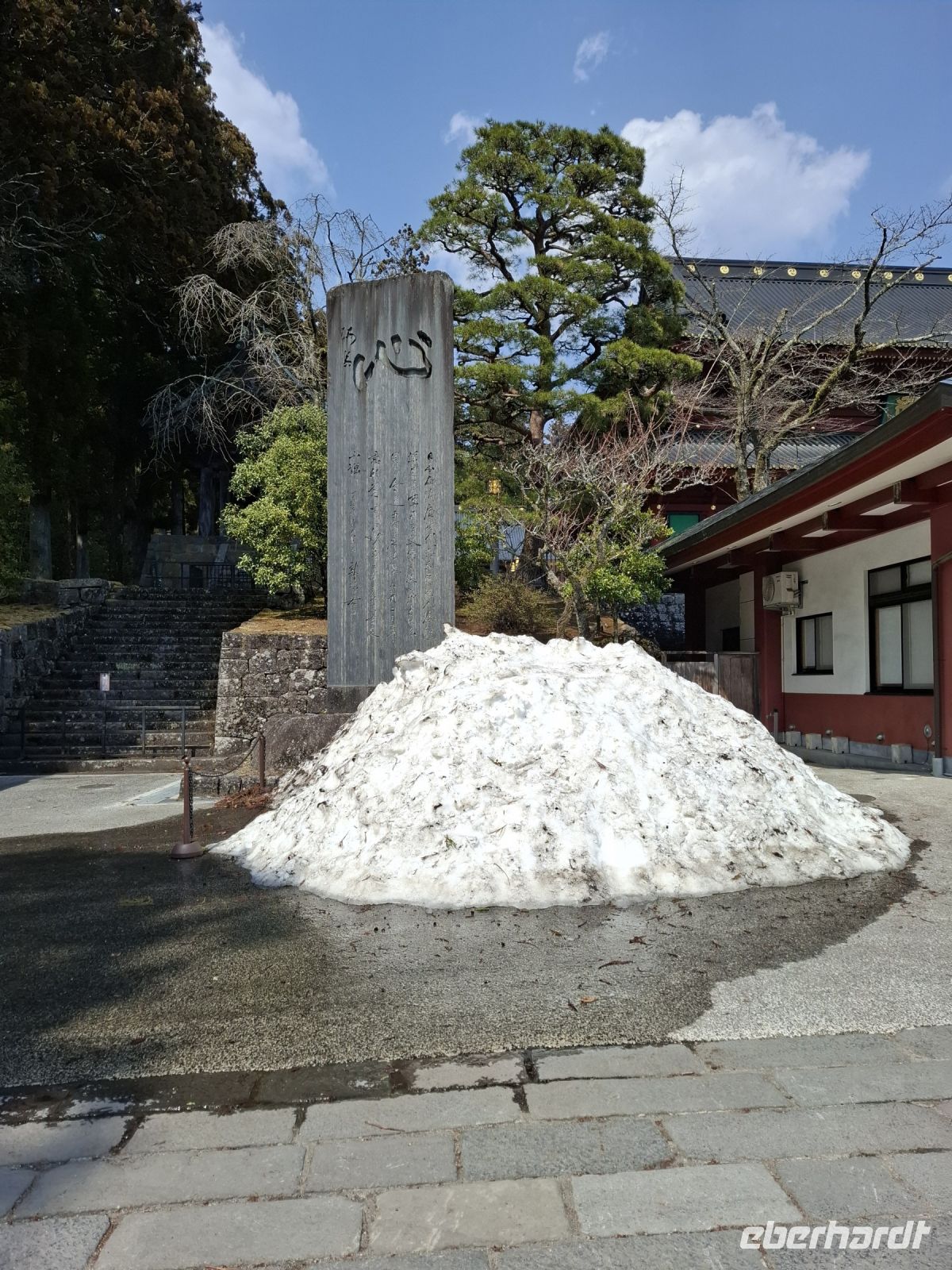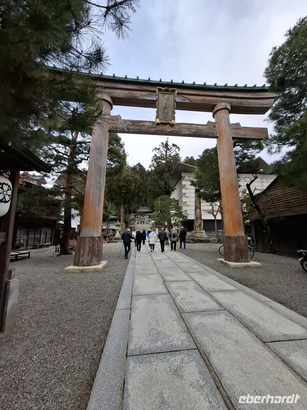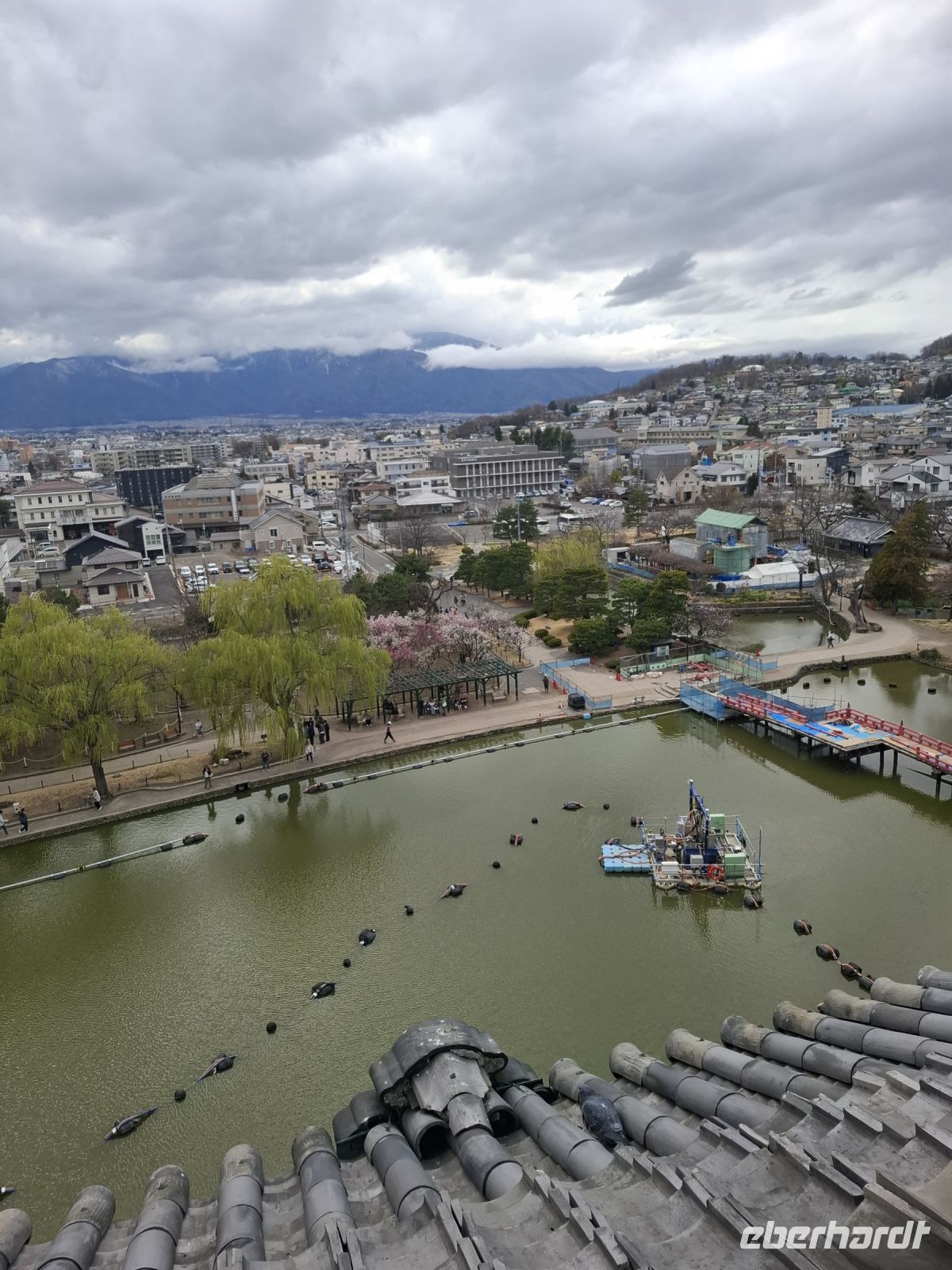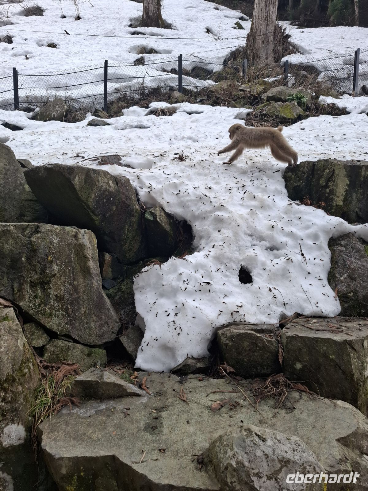 Heute ist der ersten Morgen, der uns einmal nicht mit Sonnenstrahlen begrüßt. Es ist wolkig aber dennoch hellen Lichtes, als wir die Stadt Nagano am Morgen verlassen. Beim Herausfahren aus der Stadt erzählt uns Gudrun, auf vorheriger Nachfrage einiger Gäste, etwas von einem Theaterbesuch in Kyoto und macht meiner Reisegruppe den Besuch sehr schmackhaft. Zack, werden die Handys gezückt und aus dem Bus heraus die noch wenigen vorhandenen Tickets gekauft. Die Technik heutzutage ist schon sehr nützlich. Wir lassen das Einzugsgebiet der Stadt Nagano hinter uns und langsam ändert sich die Umgebung in landwirtschaftliches Gebiet. Nach rund einer Stunde Fahrt erreichen wir den Parkplatz des Wildzoos und wandern zu dessen Eingang. Dafür spazieren wir rund 30 Minuten entlang eines doch sehr schlammigen Weges, da aufgrund der Schneeschmelze der Weg noch nicht wieder fest geworden ist. Hin und wieder laufen wir auch über Reste des gefrorenen Schnees. Zum Schluss hin überwinden wir noch einige Treppen und dann sehen wir Sie endlich, die freilebenden Affen. Wir haben wirklich großes Glück, dass diese da sind und sogar in einer beachtlichen Zahl. Wir werden von ihnen aber kaum beachtet. Die ganze Zeit sind sie am essen, hocken an der heißen Quelle oder jagen sich durch das Gebiet. Aber Obacht: auf einmal geben die Affen starke Laute von sich und kurz darauf sehen wir auf der gegenüberliegenden Seite, wie sich ein großer Stein lockert und den Hang herunter poltert. Für einen kurzen Moment sind wir vom Schrecken erfasst aber Gott sei Dank verflüchtigt sich dies schnell, da der Steinschlag doch etwas weiter von uns entfernt ist. Der Rückweg ist der gleiche, den wir auf der Hinroute genommen haben und in der Nähe des Busses haben wir die Möglichkeit, unsere verunreinigten Schuhe etwas zu säubern. Zurück im Bus ist unser nächstes Ziel Matsumoto. Aber bevor wir das beschauliche Städtchen erreichen, stoppen wir noch für eine Mittagspause, damit wir gut gestärt am zeitigen Nachmittag gemeinsam mit Gudrun die Burganlage von Matsumoto erkunden können. Wir spazieren zunächst durch das mächtige Tor und Gudrun erklärt uns die Rüstung eines Samurais. Danach sehen wir die schwarze Burg, die auch den Beinamen Krähenburg trägt, in ihrer vollständigen Pracht. Mit ihren ausgebreiteten Armen ist sie besonders schön anzusehen. Der noch gut erhaltene Burgturm möchte jetzt durch uns erklommen werden. Auf vielen schmalen und steilen Treppen (teilweise 61 Grad Steigung) erreichen wir den sechsten Stock der Burg und genießen von hier aus den Ausblick auf die Stadt Matsumoto. Wir haben auch hier wieder Glück: die Sonne zieht auf und taucht den Anblick in ein leuchtendes Bild. Und es sind nicht so viele Menschen in der Burganlage, so dass wir auch die Möglichkeit am heutigen Tag hatten, auf den Turm zu gelangen. Dem ist nicht immer so, wie uns Gudrun berichtet. Nach diesem Programmpunkt gelangen wir erneut zum Bus und Makino San bringt uns weiter nach Takayama. Langsam ändert sich einmal wieder die Landschaft aber auch das Wetter. Durch kleine Städtchen und durch einige Tunnel geht es hinauf in das Gebirge. Die Wolken hängen tief und es wird recht schnell dunkel. Je höher wir kommen, desto mehr Schnee sehen wir auch noch. Der Kontrast zu den letzten Tagen ist da. Auf dem Weg nach Takayama telefoniert Gudrun mit dem Chef eines kleinen Lokals und reserviert für uns alle Plätze. Damit ist der Laden ausgebucht und als wir nach unserem Hotel-Checkin-In am Restaurant ankommen, steht dran "sorry, we are closed". Durch uns ist tatsächlich jeder Platz besetzt. Der Chef kocht hier noch persönlich und so bestellt jeder das von der Speisekarte, was ihm am besten anspricht. Guten Appetit.