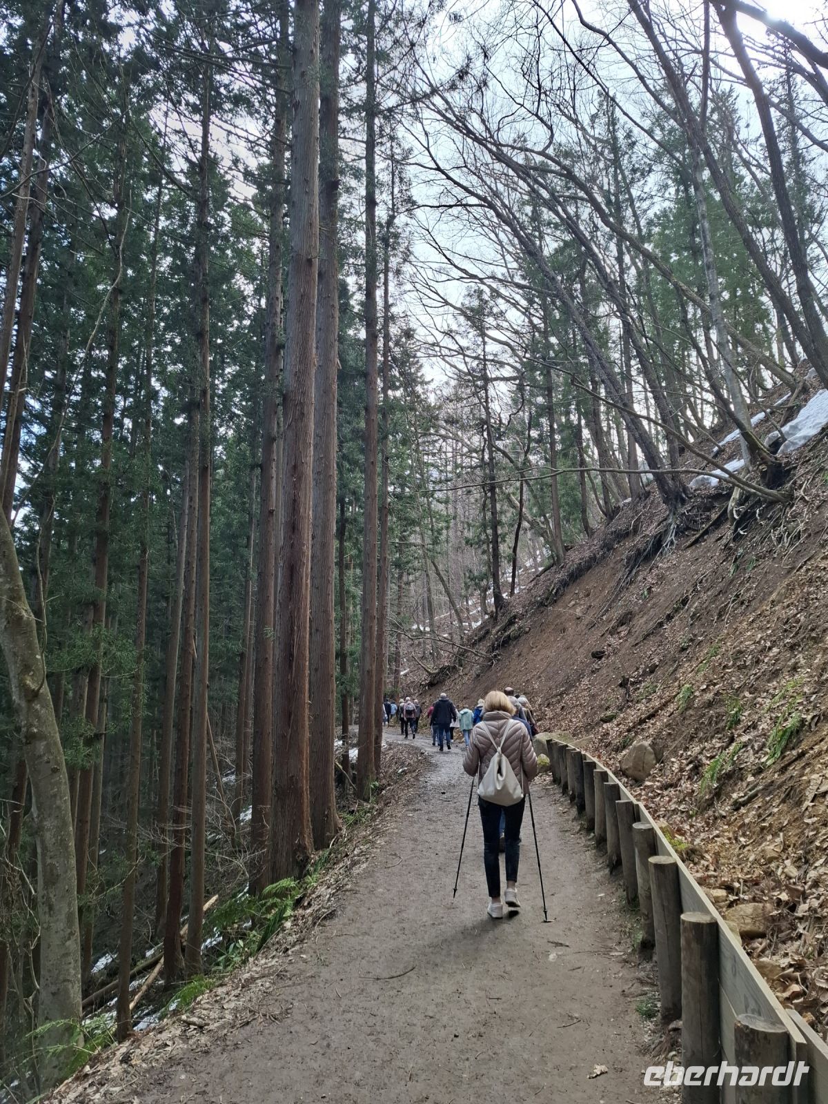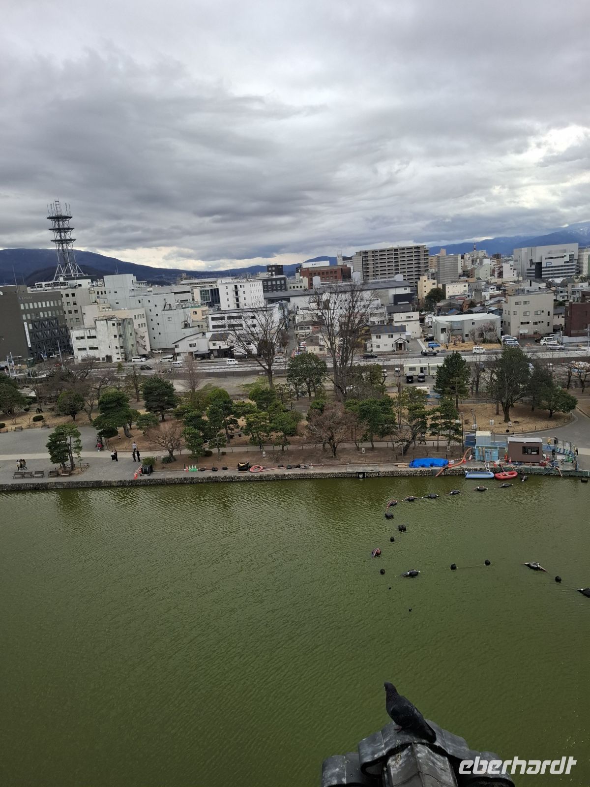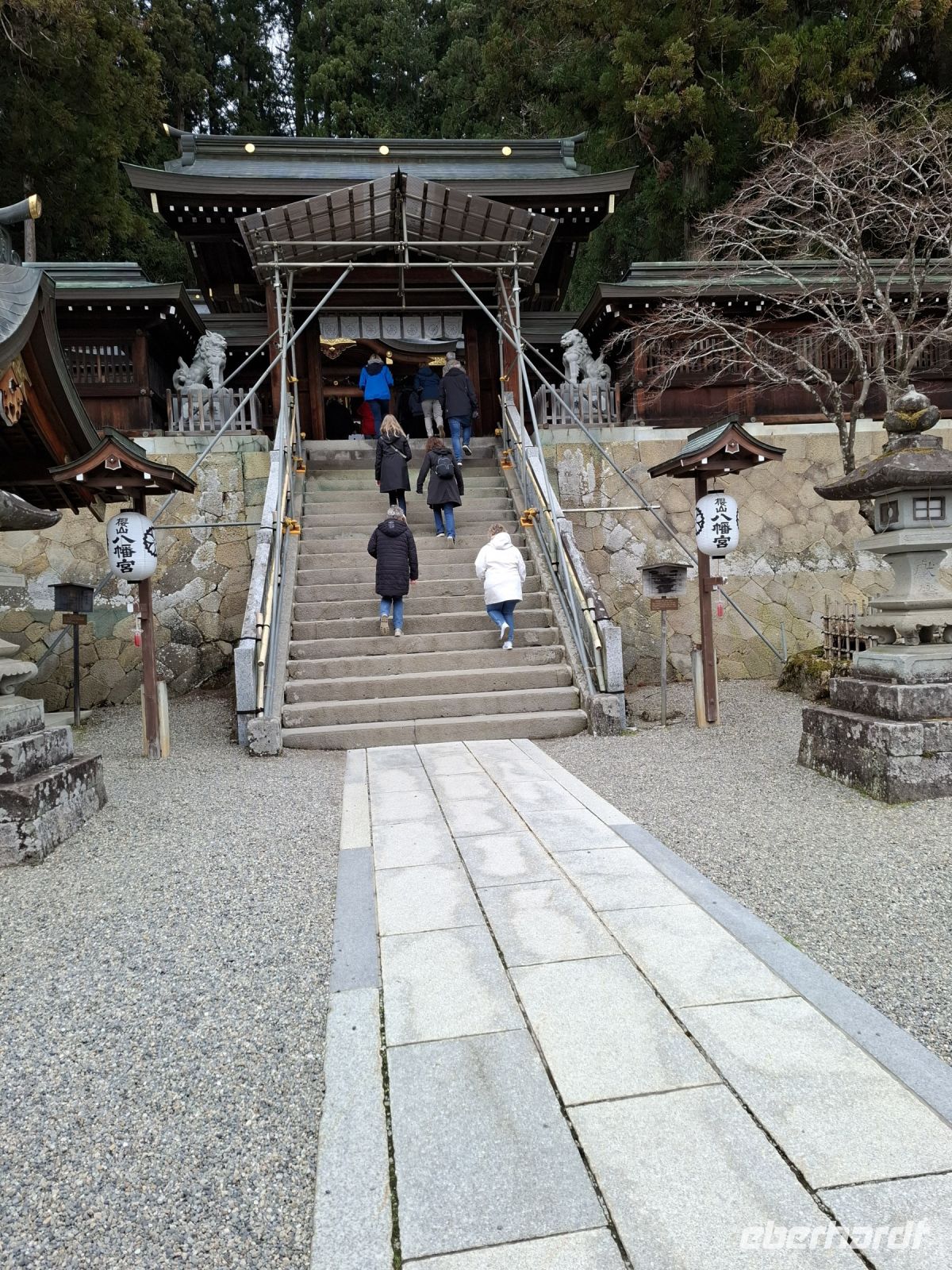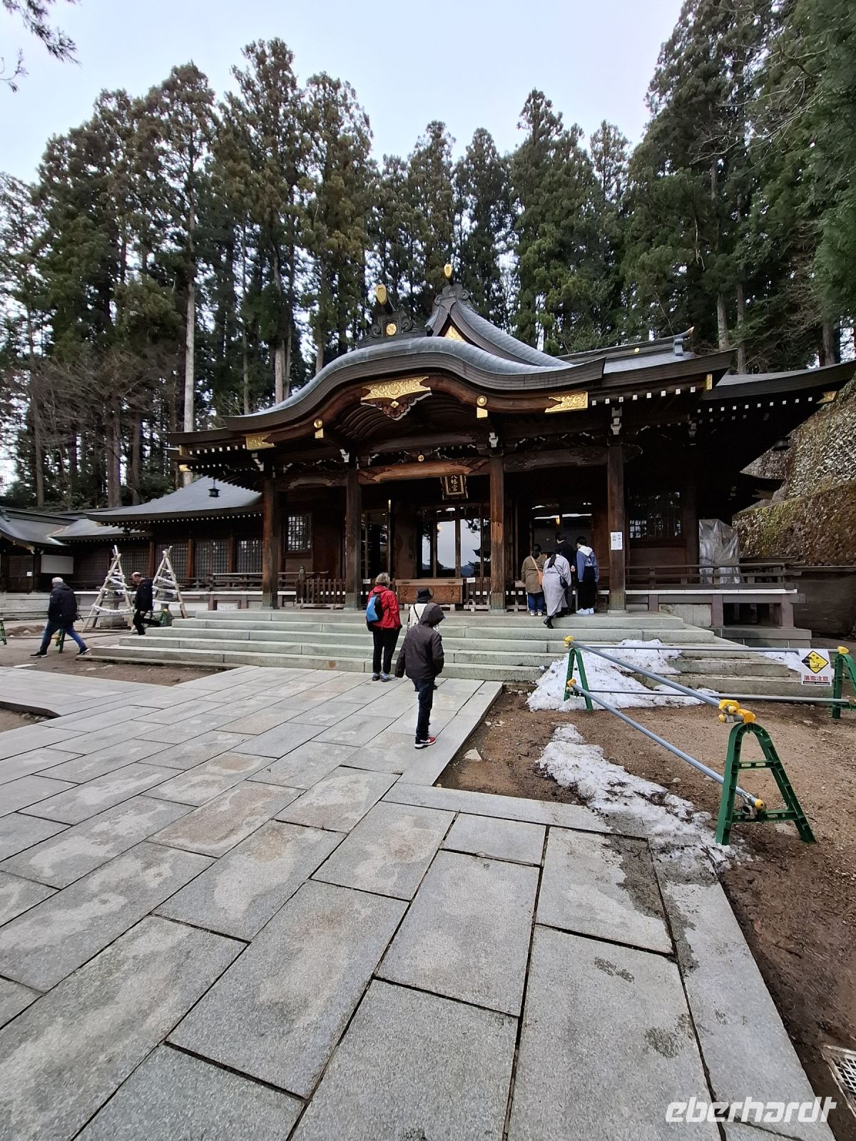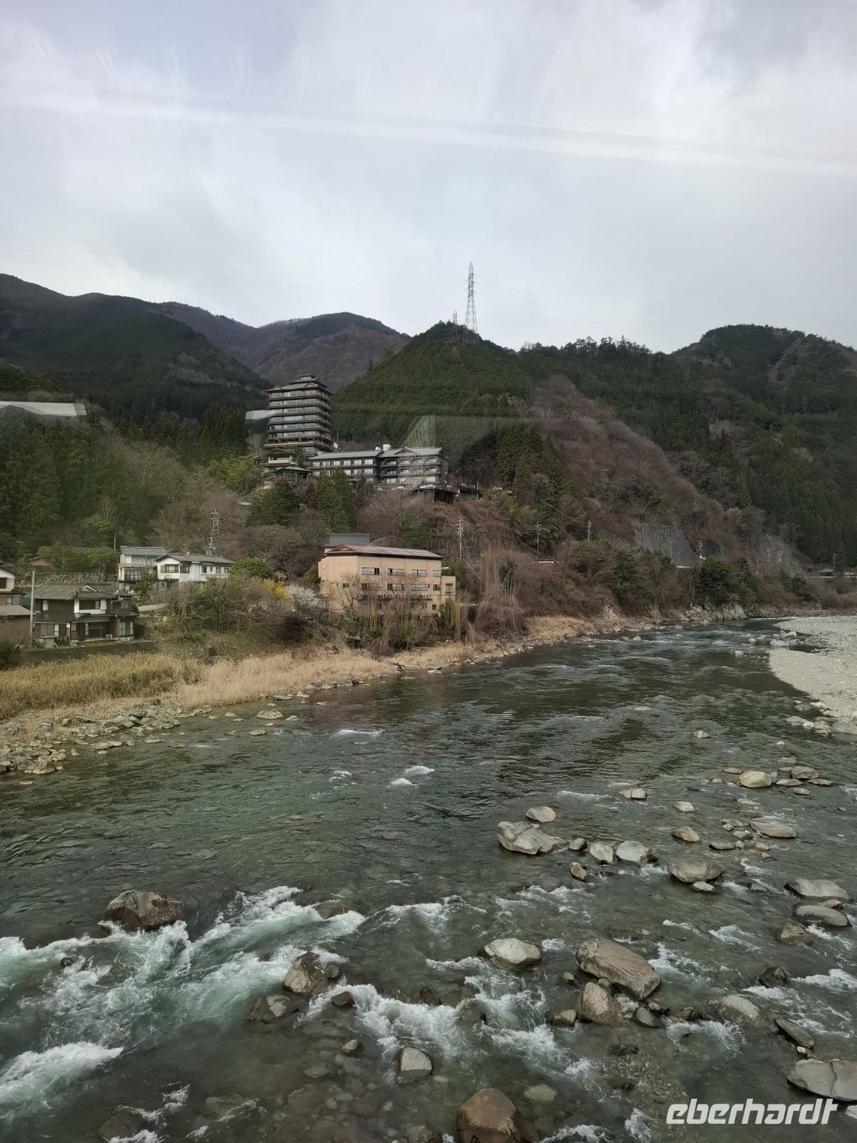 Heute ist der ersten Morgen, der uns einmal nicht mit Sonnenstrahlen begrüßt. Es ist wolkig aber dennoch hellen Lichtes, als wir die Stadt Nagano am Morgen verlassen. Beim Herausfahren aus der Stadt erzählt uns Gudrun, auf vorheriger Nachfrage einiger Gäste, etwas von einem Theaterbesuch in Kyoto und macht meiner Reisegruppe den Besuch sehr schmackhaft. Zack, werden die Handys gezückt und aus dem Bus heraus die noch wenigen vorhandenen Tickets gekauft. Die Technik heutzutage ist schon sehr nützlich. Wir lassen das Einzugsgebiet der Stadt Nagano hinter uns und langsam ändert sich die Umgebung in landwirtschaftliches Gebiet. Nach rund einer Stunde Fahrt erreichen wir den Parkplatz des Wildzoos und wandern zu dessen Eingang. Dafür spazieren wir rund 30 Minuten entlang eines doch sehr schlammigen Weges, da aufgrund der Schneeschmelze der Weg noch nicht wieder fest geworden ist. Hin und wieder laufen wir auch über Reste des gefrorenen Schnees. Zum Schluss hin überwinden wir noch einige Treppen und dann sehen wir Sie endlich, die freilebenden Affen. Wir haben wirklich großes Glück, dass diese da sind und sogar in einer beachtlichen Zahl. Wir werden von ihnen aber kaum beachtet. Die ganze Zeit sind sie am essen, hocken an der heißen Quelle oder jagen sich durch das Gebiet. Aber Obacht: auf einmal geben die Affen starke Laute von sich und kurz darauf sehen wir auf der gegenüberliegenden Seite, wie sich ein großer Stein lockert und den Hang herunter poltert. Für einen kurzen Moment sind wir vom Schrecken erfasst aber Gott sei Dank verflüchtigt sich dies schnell, da der Steinschlag doch etwas weiter von uns entfernt ist. Der Rückweg ist der gleiche, den wir auf der Hinroute genommen haben und in der Nähe des Busses haben wir die Möglichkeit, unsere verunreinigten Schuhe etwas zu säubern. Zurück im Bus ist unser nächstes Ziel Matsumoto. Aber bevor wir das beschauliche Städtchen erreichen, stoppen wir noch für eine Mittagspause, damit wir gut gestärt am zeitigen Nachmittag gemeinsam mit Gudrun die Burganlage von Matsumoto erkunden können. Wir spazieren zunächst durch das mächtige Tor und Gudrun erklärt uns die Rüstung eines Samurais. Danach sehen wir die schwarze Burg, die auch den Beinamen Krähenburg trägt, in ihrer vollständigen Pracht. Mit ihren ausgebreiteten Armen ist sie besonders schön anzusehen. Der noch gut erhaltene Burgturm möchte jetzt durch uns erklommen werden. Auf vielen schmalen und steilen Treppen (teilweise 61 Grad Steigung) erreichen wir den sechsten Stock der Burg und genießen von hier aus den Ausblick auf die Stadt Matsumoto. Wir haben auch hier wieder Glück: die Sonne zieht auf und taucht den Anblick in ein leuchtendes Bild. Und es sind nicht so viele Menschen in der Burganlage, so dass wir auch die Möglichkeit am heutigen Tag hatten, auf den Turm zu gelangen. Dem ist nicht immer so, wie uns Gudrun berichtet. Nach diesem Programmpunkt gelangen wir erneut zum Bus und Makino San bringt uns weiter nach Takayama. Langsam ändert sich einmal wieder die Landschaft aber auch das Wetter. Durch kleine Städtchen und durch einige Tunnel geht es hinauf in das Gebirge. Die Wolken hängen tief und es wird recht schnell dunkel. Je höher wir kommen, desto mehr Schnee sehen wir auch noch. Der Kontrast zu den letzten Tagen ist da. Auf dem Weg nach Takayama telefoniert Gudrun mit dem Chef eines kleinen Lokals und reserviert für uns alle Plätze. Damit ist der Laden ausgebucht und als wir nach unserem Hotel-Checkin-In am Restaurant ankommen, steht dran "sorry, we are closed". Durch uns ist tatsächlich jeder Platz besetzt. Der Chef kocht hier noch persönlich und so bestellt jeder das von der Speisekarte, was ihm am besten anspricht. Guten Appetit.
