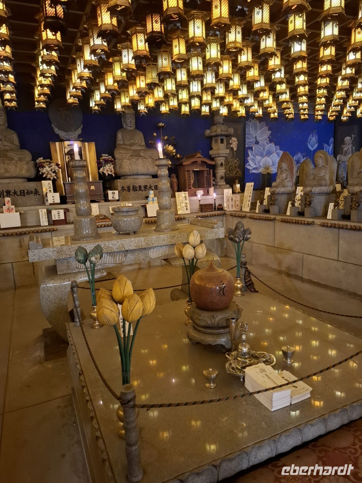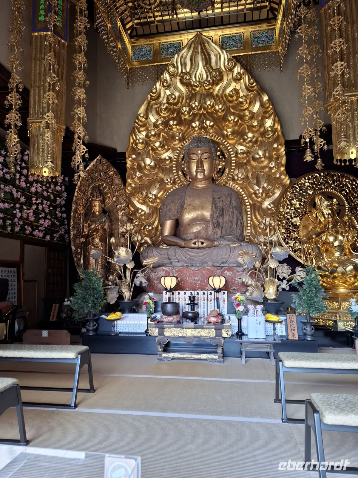 In einem Ryokan, einem traditionellen japanischen Hotel, herrschen doch so andere Regeln als in einem gewöhnlichen Hotel und so sollen wir geschlossen als Gruppe 07:30 Uhr beim Frühstück erscheinen. Das japanische Frühstücksbuffet ist groß und vielfältig, und es findet sich sogar eine kleine westliche Frühstücksecke. Aber das ist nicht in jedem Ryokan so. Gestärkt checken wir aus und verladen erneut unsere Koffer. Auf unserer Nachfrage im Bus, wie die Nacht auf einem Futon gewesen sei, haben wir überwiegend positive Resonanz erhalten. Wir machen uns auf den Weg zurück in Richtung Fuji-Nationalpark und lassen den Ashi-See hinter uns. Unser Ziel ist die Bergstation, wo wir uns als Gruppe auf zwei Gondeln aufteilen. Langsam erheben sich diese und wir gleiten über die Bäume. Noch erblicken wir nur den Ashi-See, aber bald auch auf der rechten Seite den Fuji san, der sich heute von seiner besten Seite präsentiert. Wir können uns nicht satt sehen und knipsen Unmengen an Fotos. An der zweiten Bergstation verlassen wir die Gondel und steigen um in eine weitere Gondel. Nun schweben wir über aktive Schwefelschlote, deren Geruch wir auch in der Gondel wahrnehmen. Es ist wahnsinnig beeindruckend. An der oberen Station wartet Makino San bereits auf uns und er fährt uns ein Stück durch das Owakudani-Tal. Wir sehen viele abgestorbene Bäume, die auf die Schwefelgase zurückzuführen sind. Nun liegen rund 300 Kilometer Fahrstrecke bis nach Nagano vor uns. Nach einer kürzeren Fahrt halten wir am Shizuoka-Stopp und von hier aus haben wir einen wirklich fantastischen Ausblick auf den Fuji-san. Alle Gäste kommen auf ihre Foto-Kosten und genießen den majestätischen Anblick. Danach geht es weiter und auf dem Weg bis zu unserer Mittagspause erhalten wir von Gudrun einen Einblick in das japanische Schulsystem. Auf dem weiteren Weg in Richtung Nagano lauschen wir zudem ihren Vorträgen zum Gesundheits- und Sozialsystem, was sehr interessant ist. Da unser Chauffeur einen flotten Fuß auf dem Gaspedal hat, erreichen wir Nagano sogar bereits am Nachmittag. So hat man nach dem Checkin im Hotel noch die Möglichkeit, die Anlage des Zenko-ji individuell zu besichtigen.